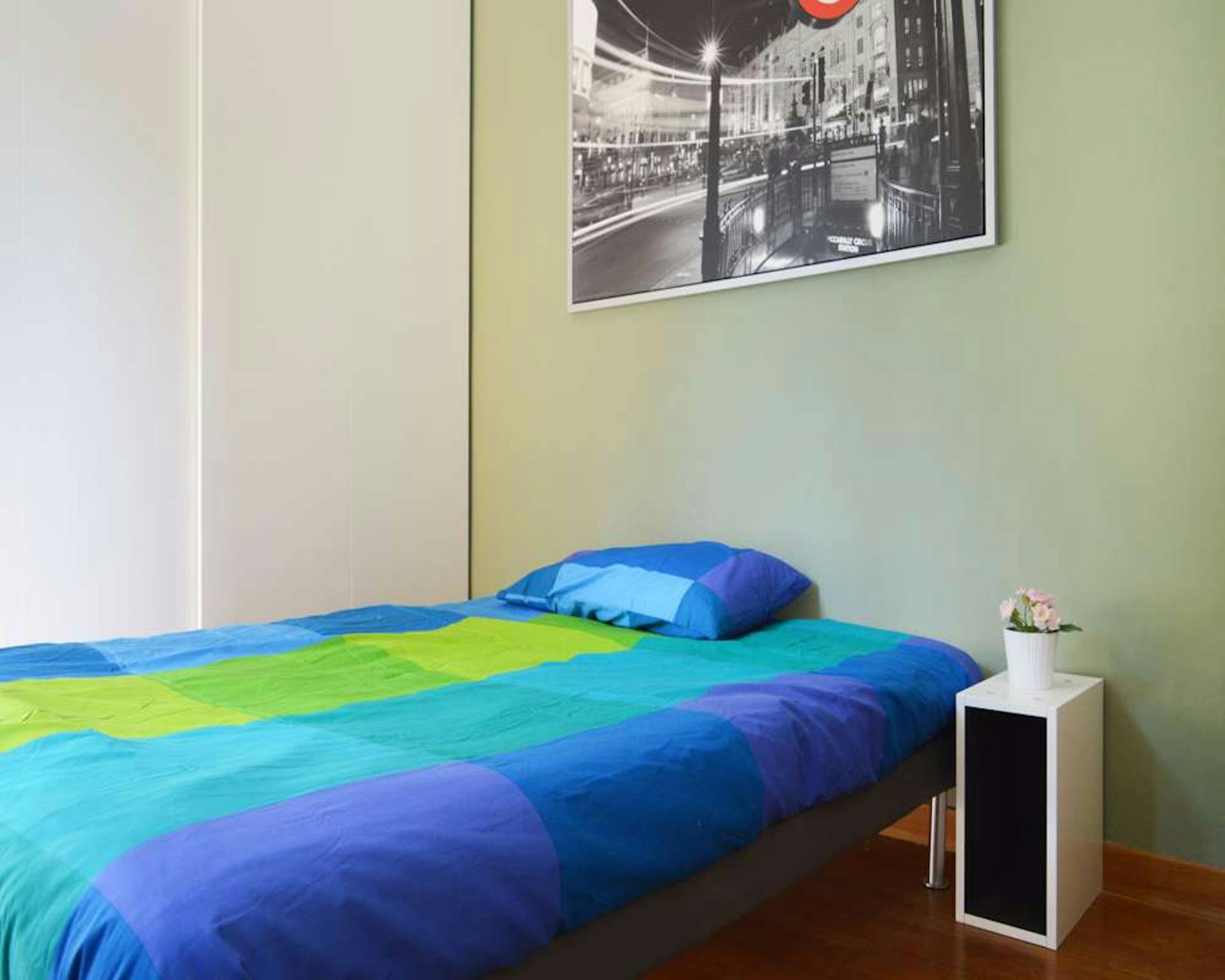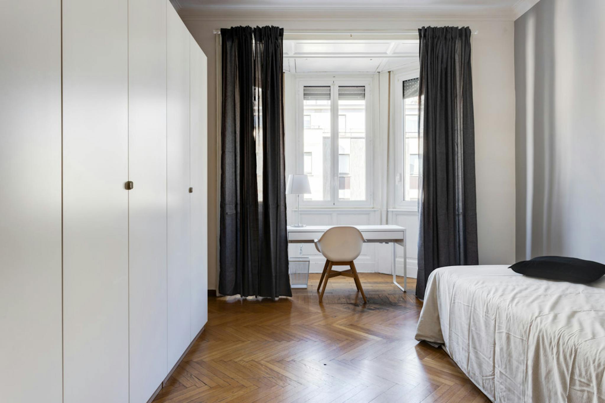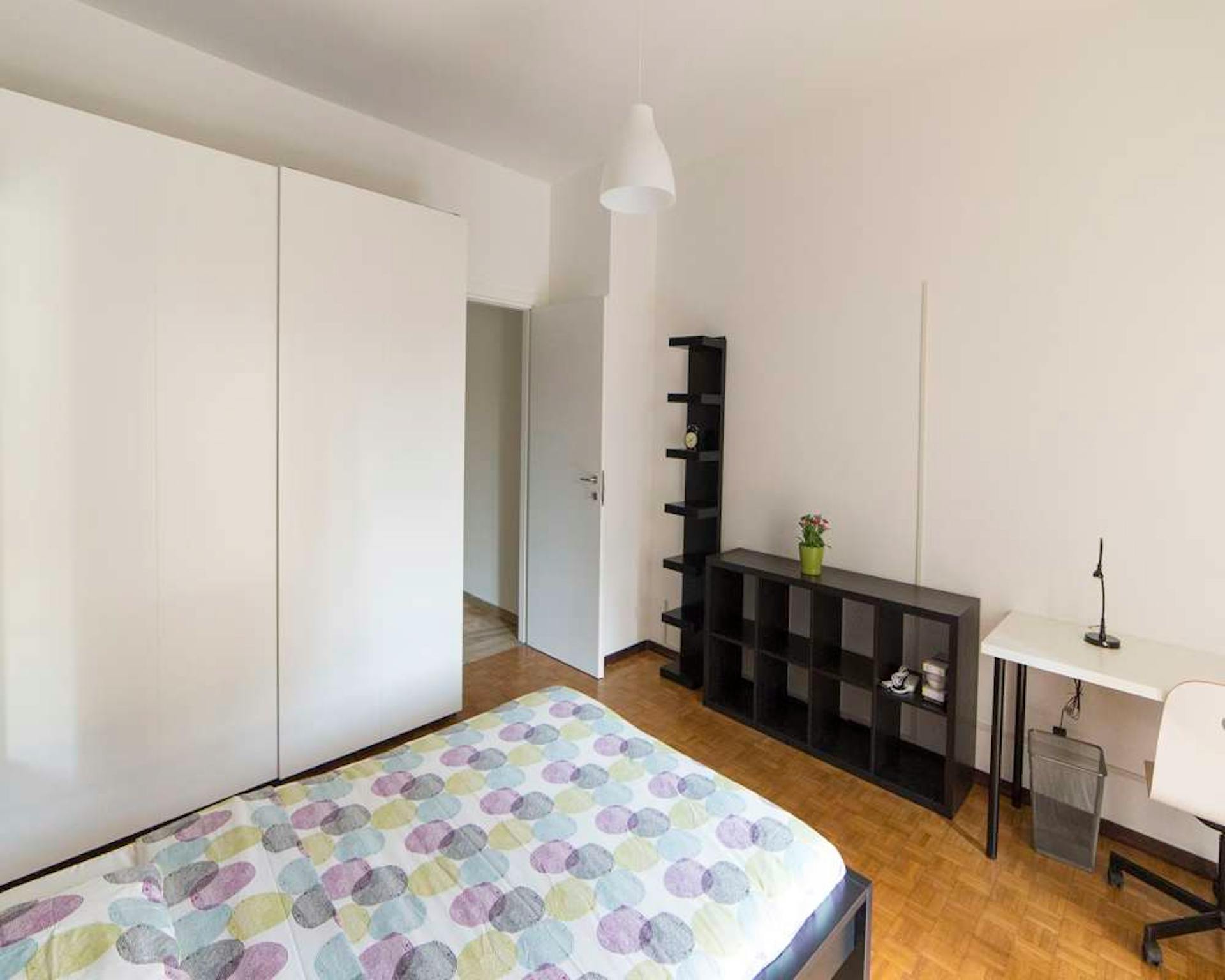 ROOM Cozy and modern, this private bedroom has everything you need for a comfortable life in Milan. This includes a comfy bed, a desk facing three large windows, and plenty of storage space for all your belongings. APARTMENT This spacious apartme...