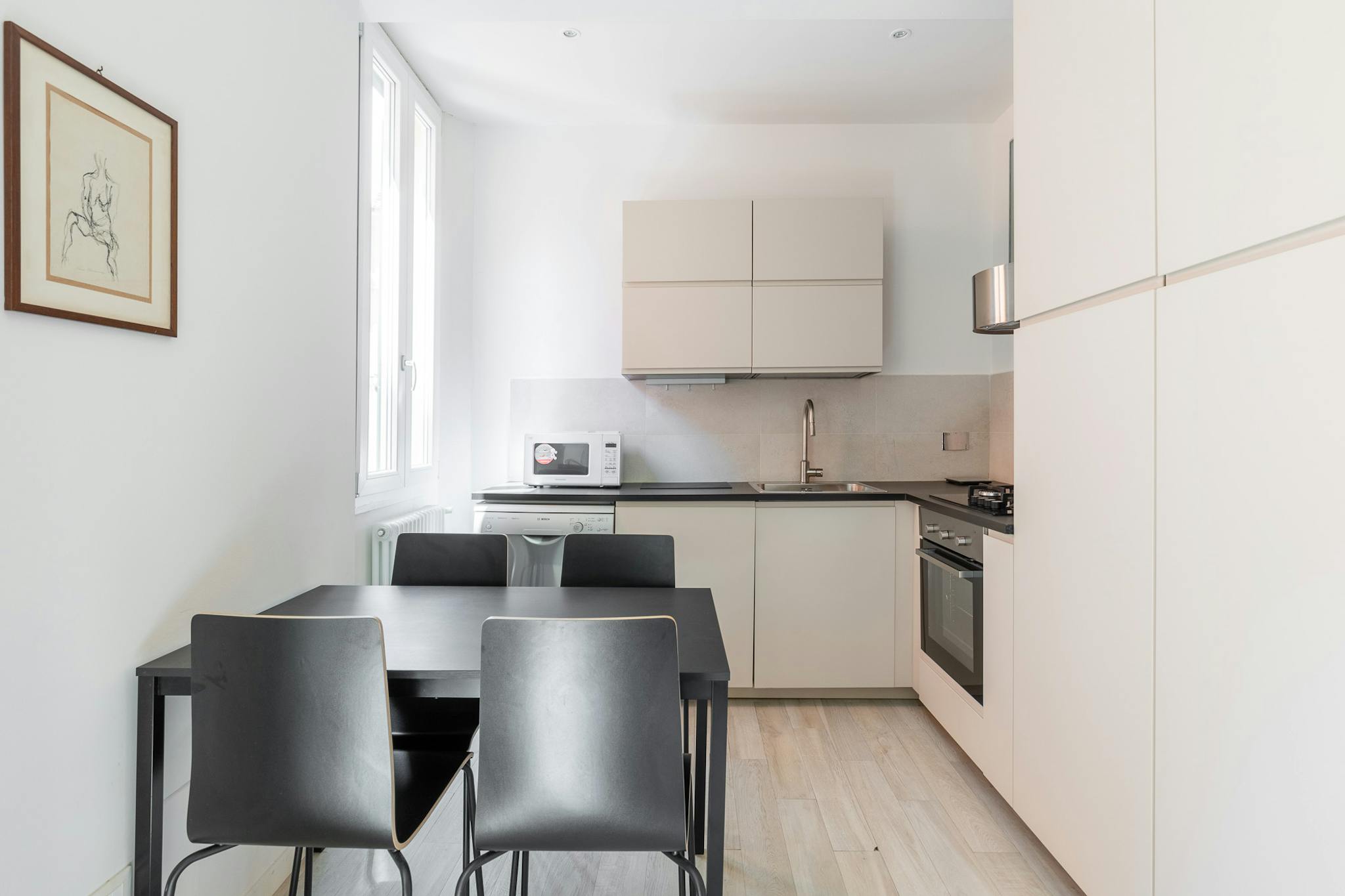 Elegante appartamento situato in zona residenziale comoda alle principali facoltà universitarie. Entrata da palazzina indipendente con cancello automatico, parcheggio gratuito sotto casa e parcheggio per bici nel palazzo. Situato al 1° piano di u...