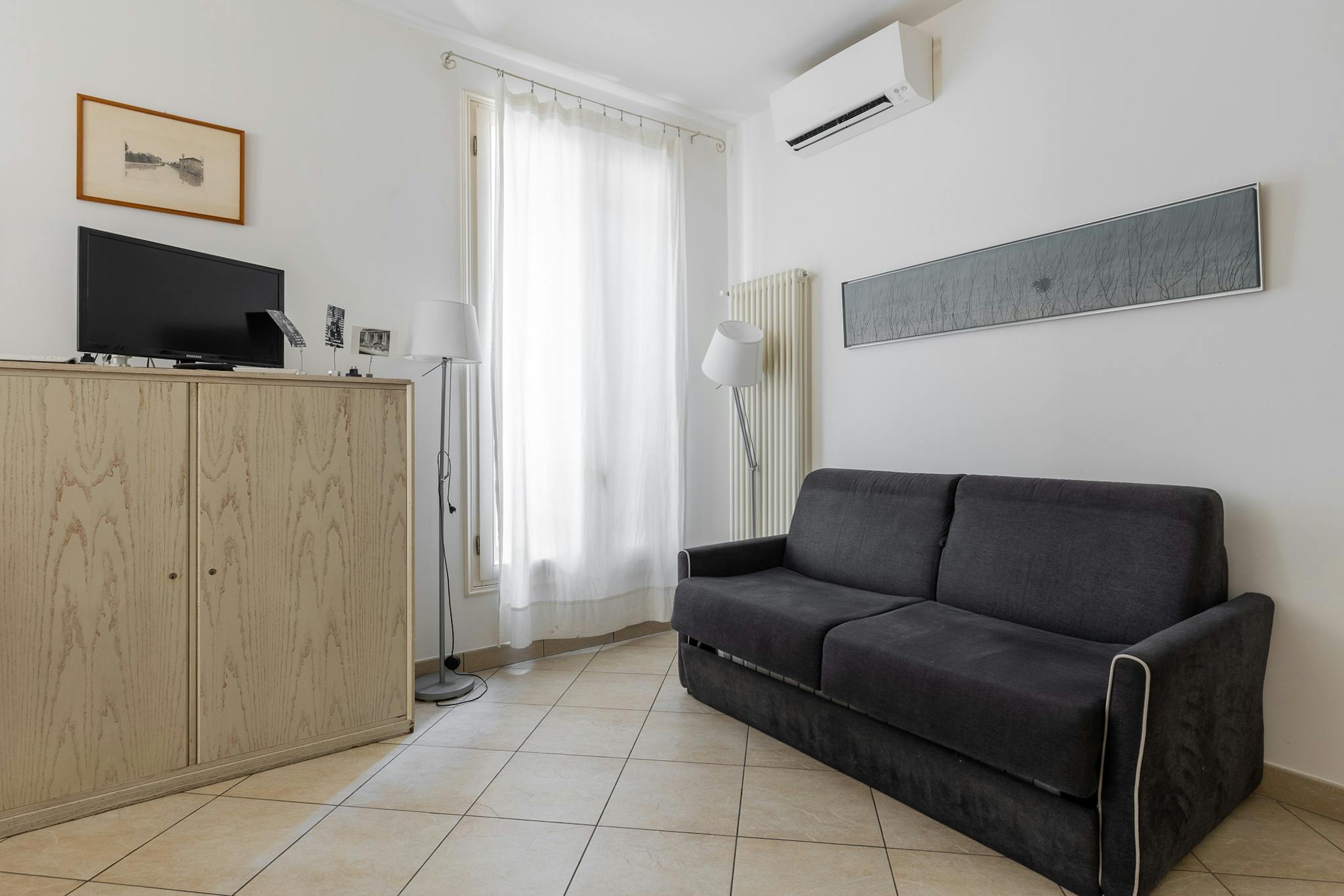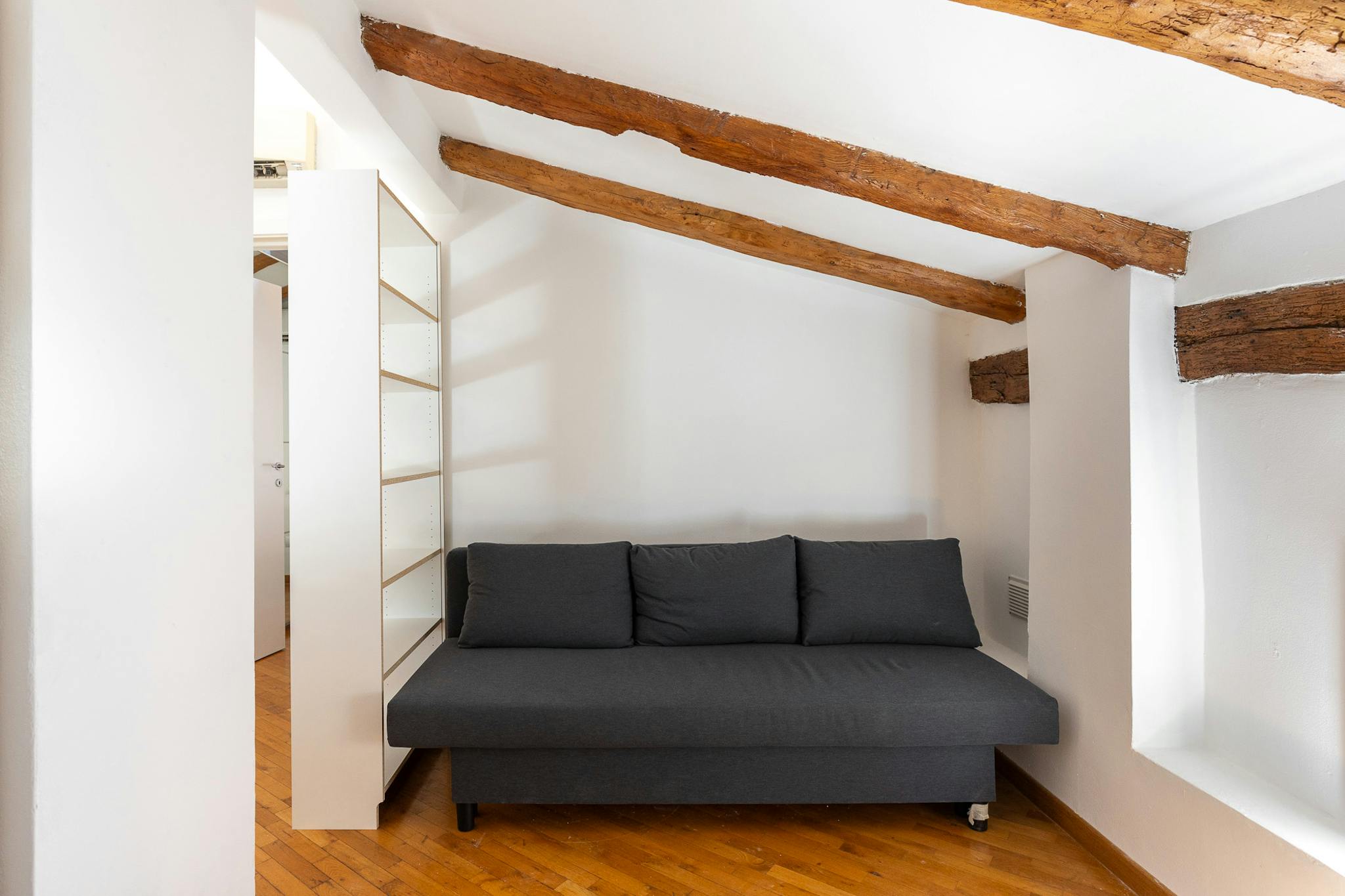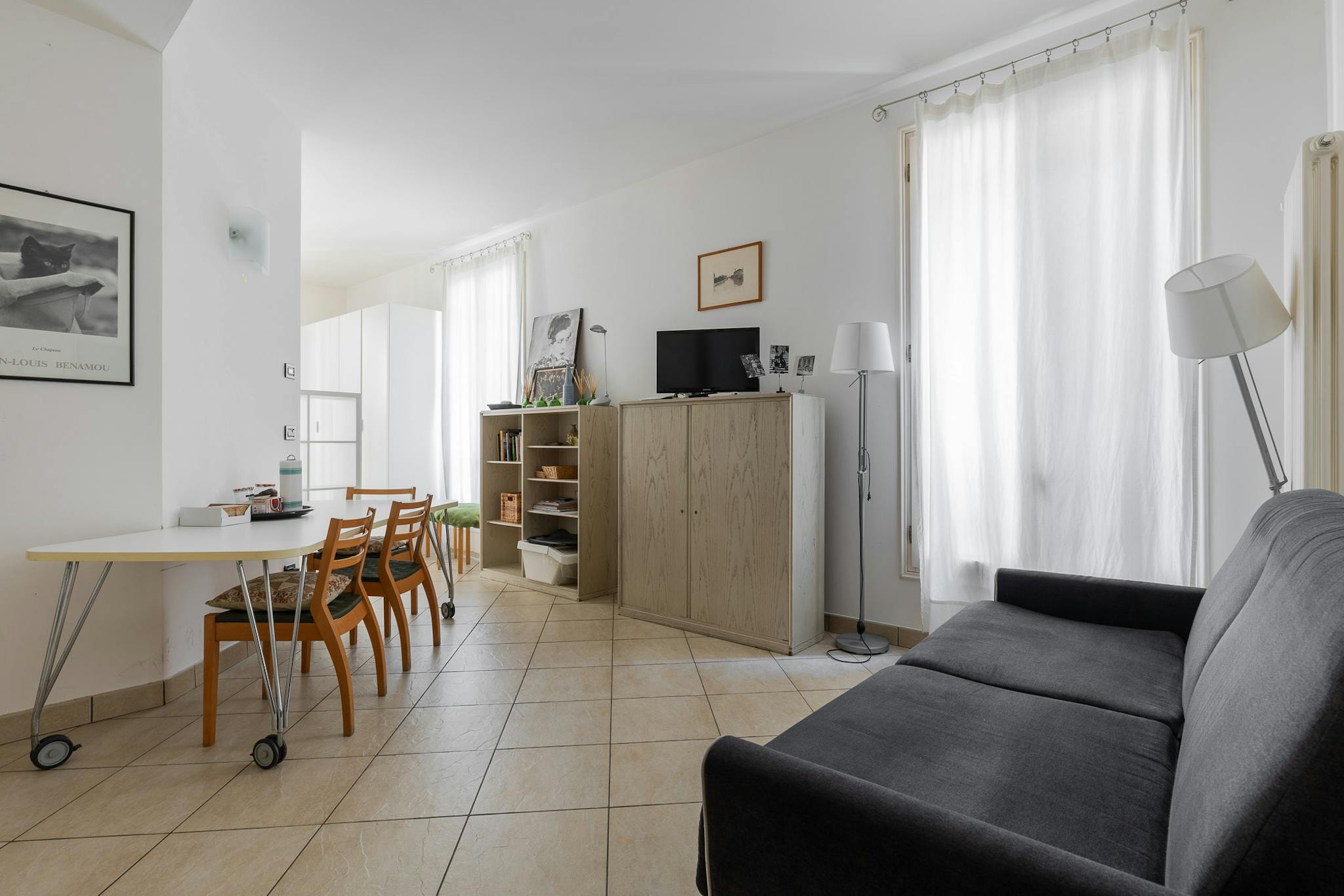 Nice studio of about 43 sqm, located on the first floor without an elevator, featuring: a living area with a kitchen and a sofa bed, a sleeping area with two single beds, and a bathroom with a walk-in shower. Overlooking a historic street in the h...
