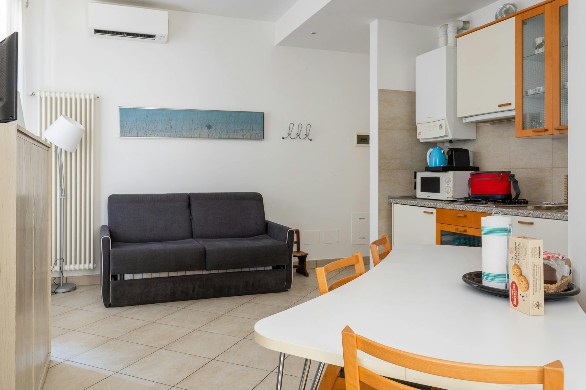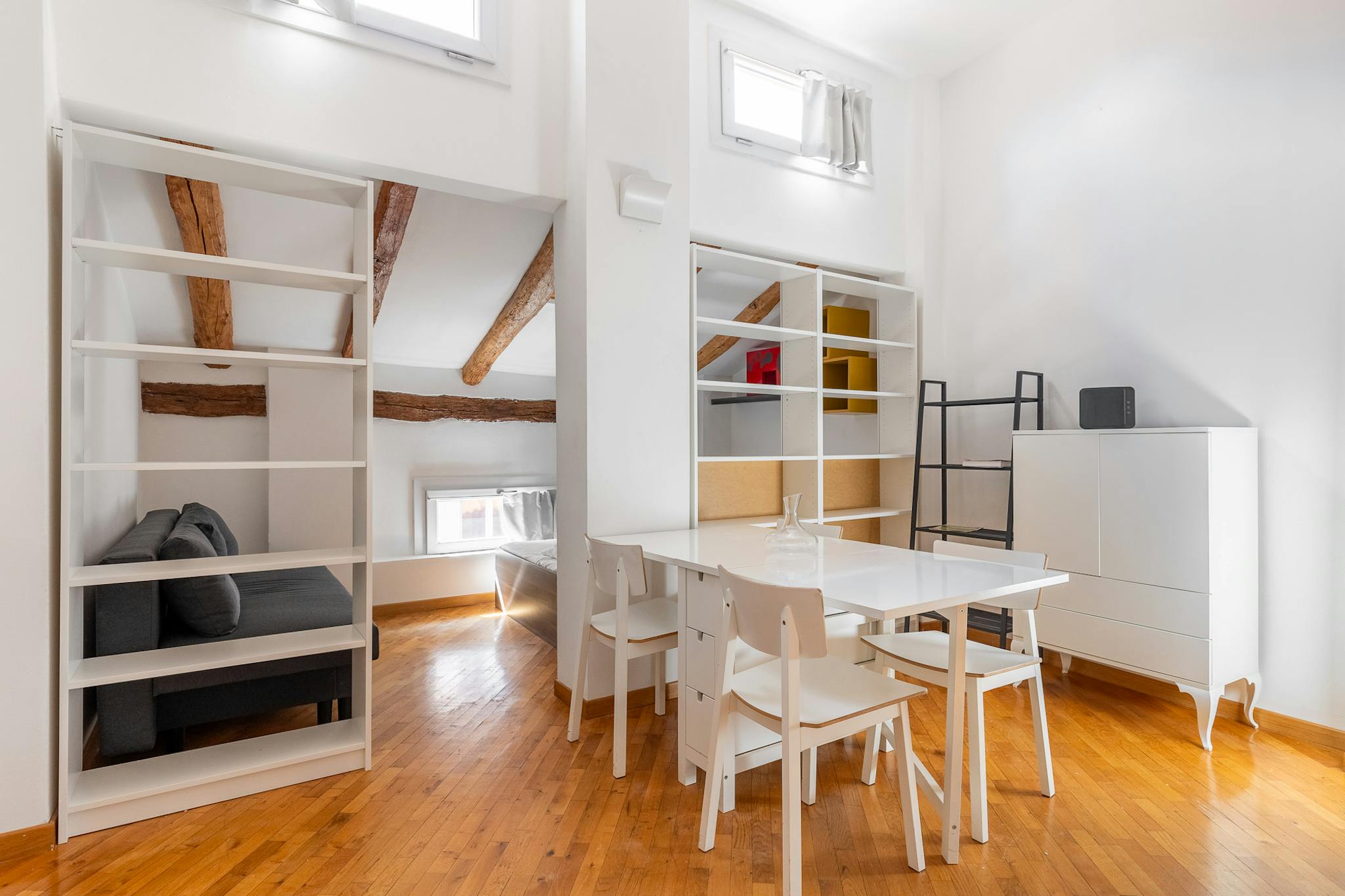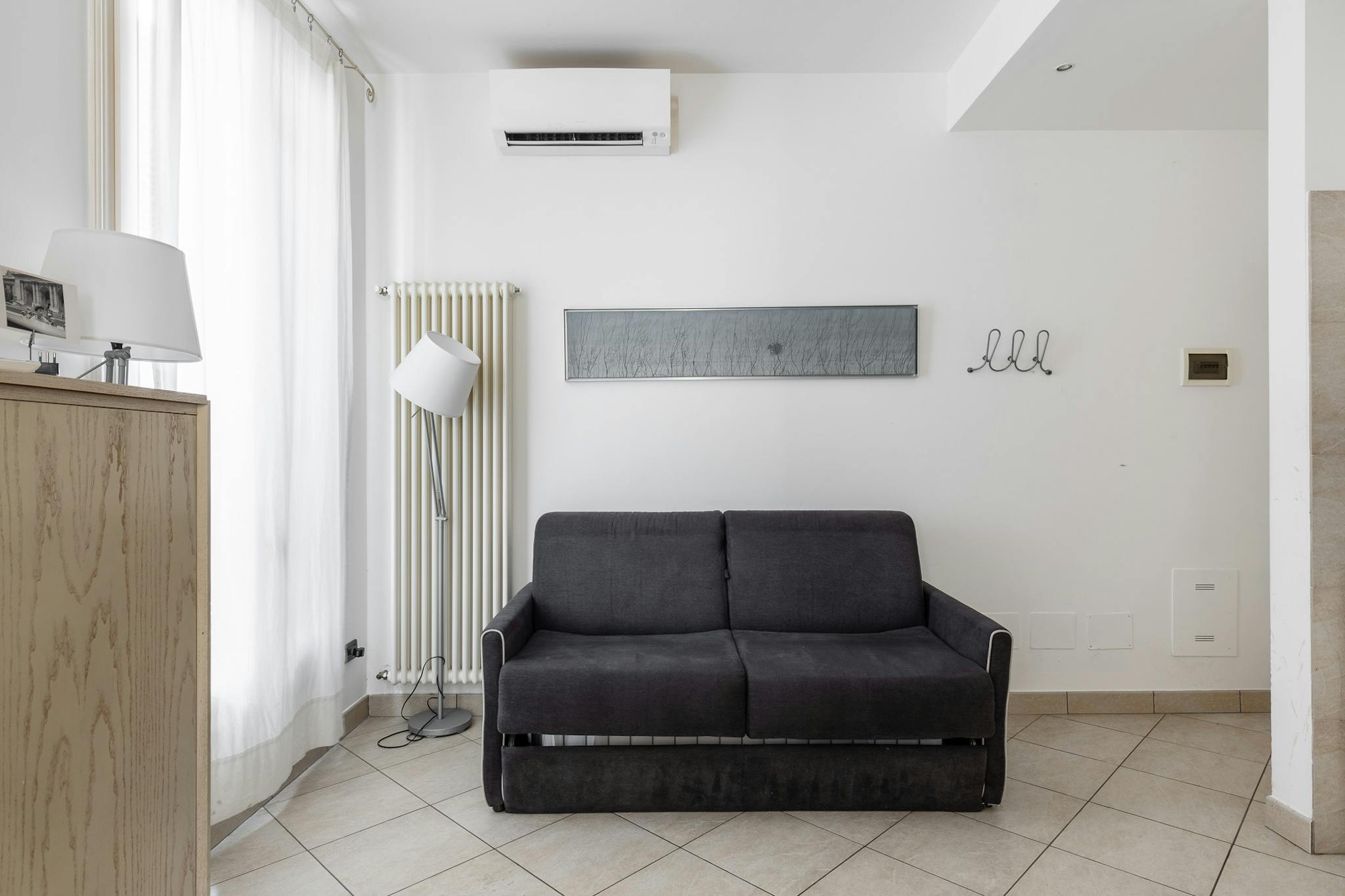 Nice studio of about 43 sqm, located on the first floor without an elevator, featuring: a living area with a kitchen and a sofa bed, a sleeping area with two single beds, and a bathroom with a walk-in shower. Overlooking a historic street in the h...