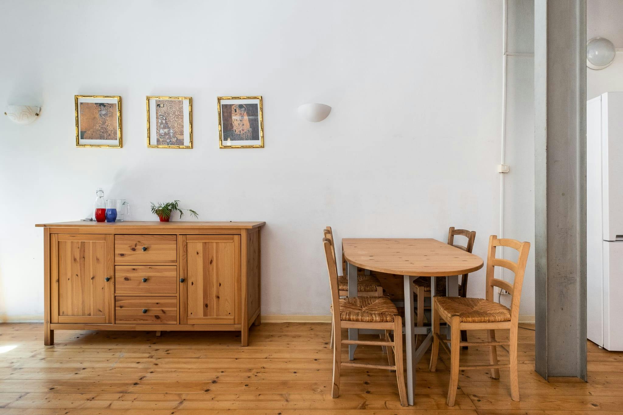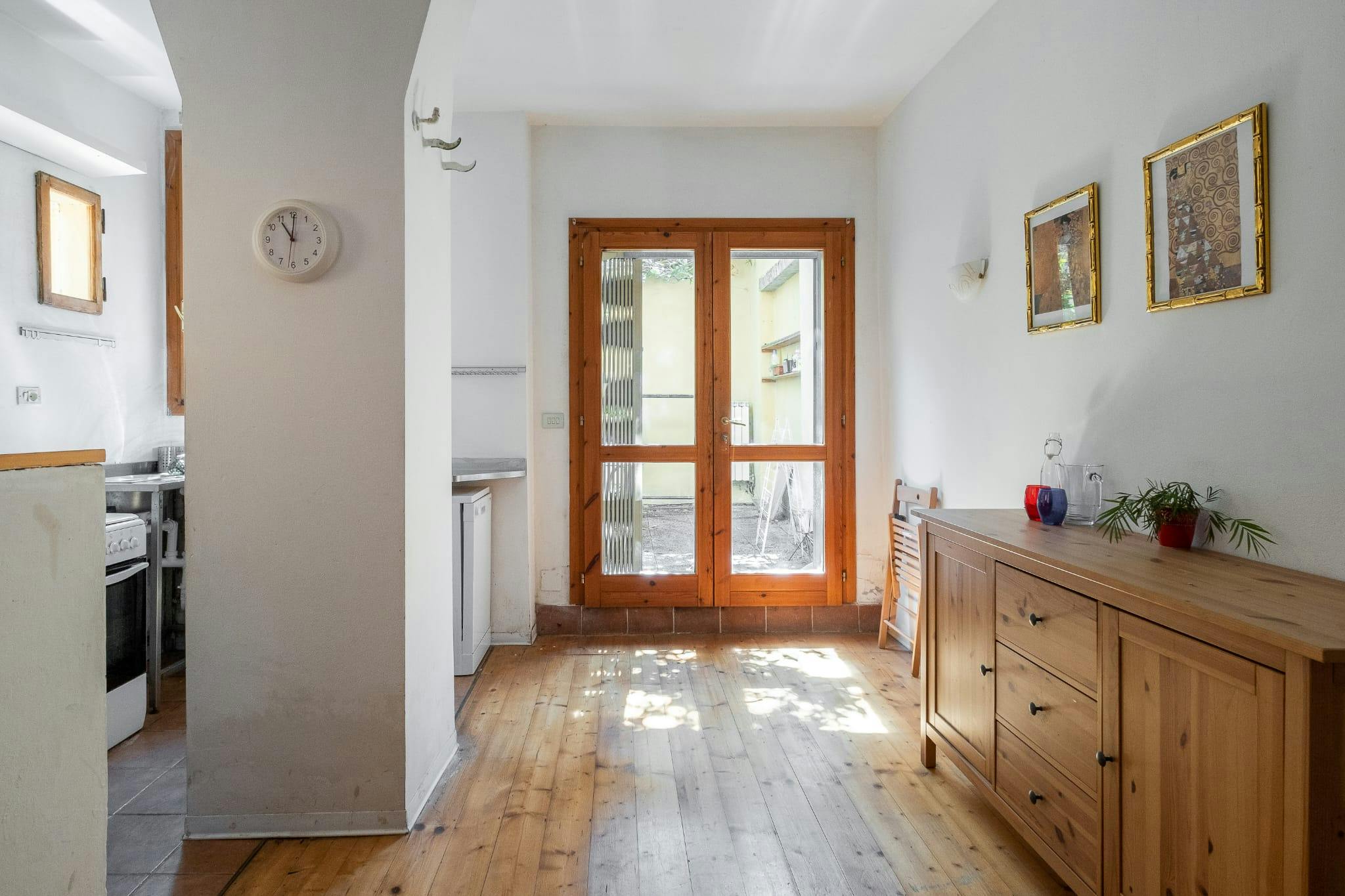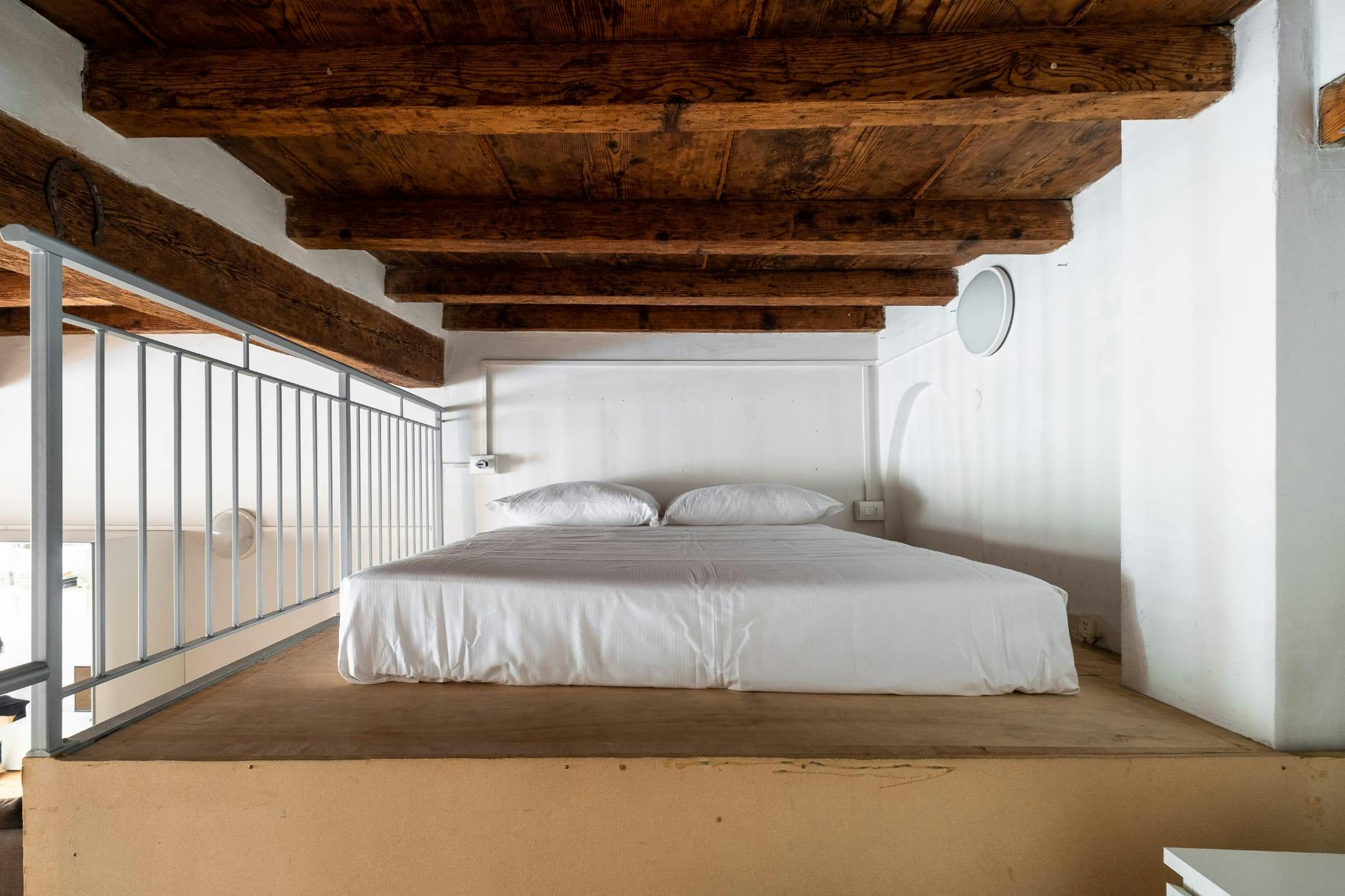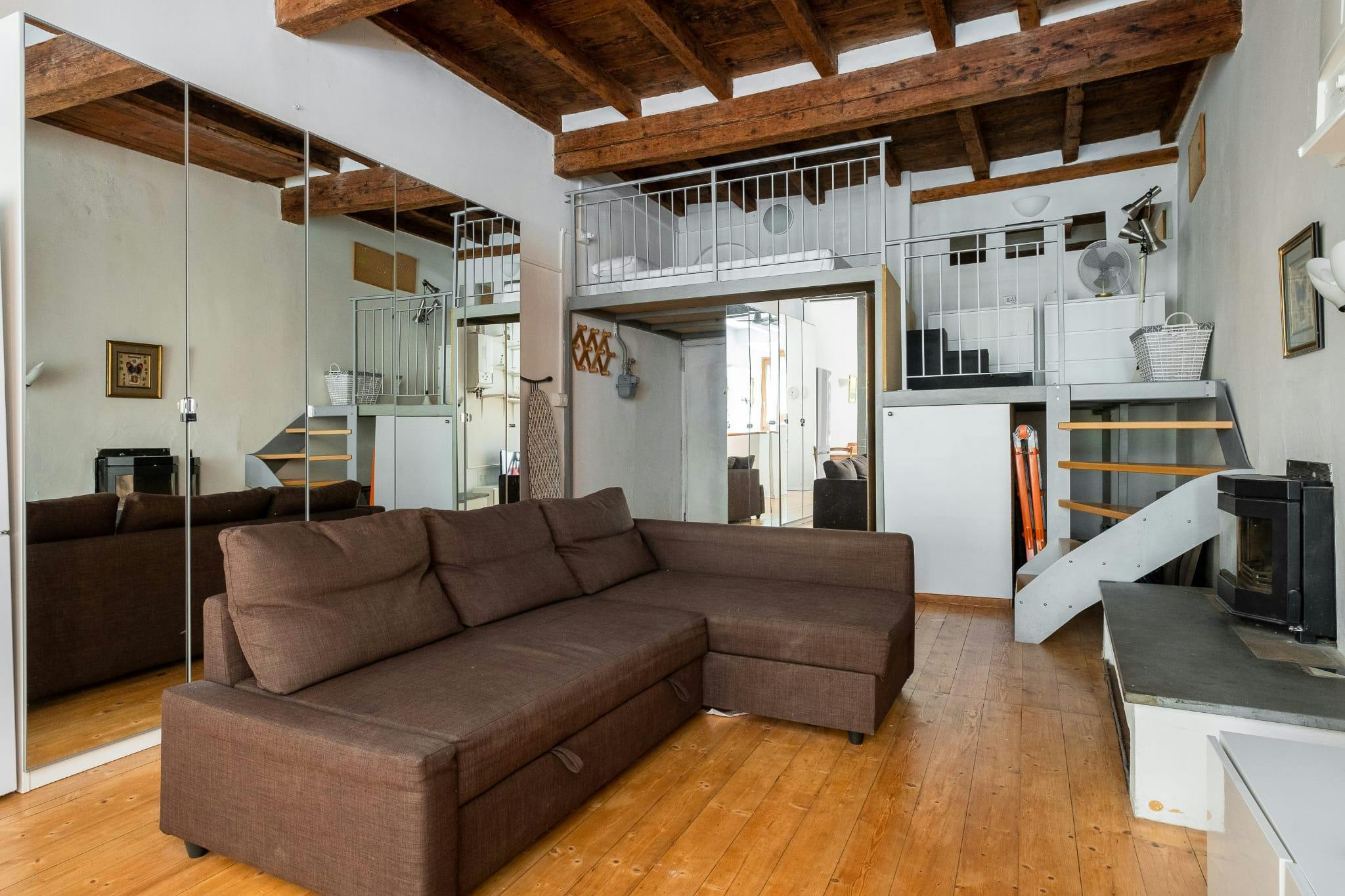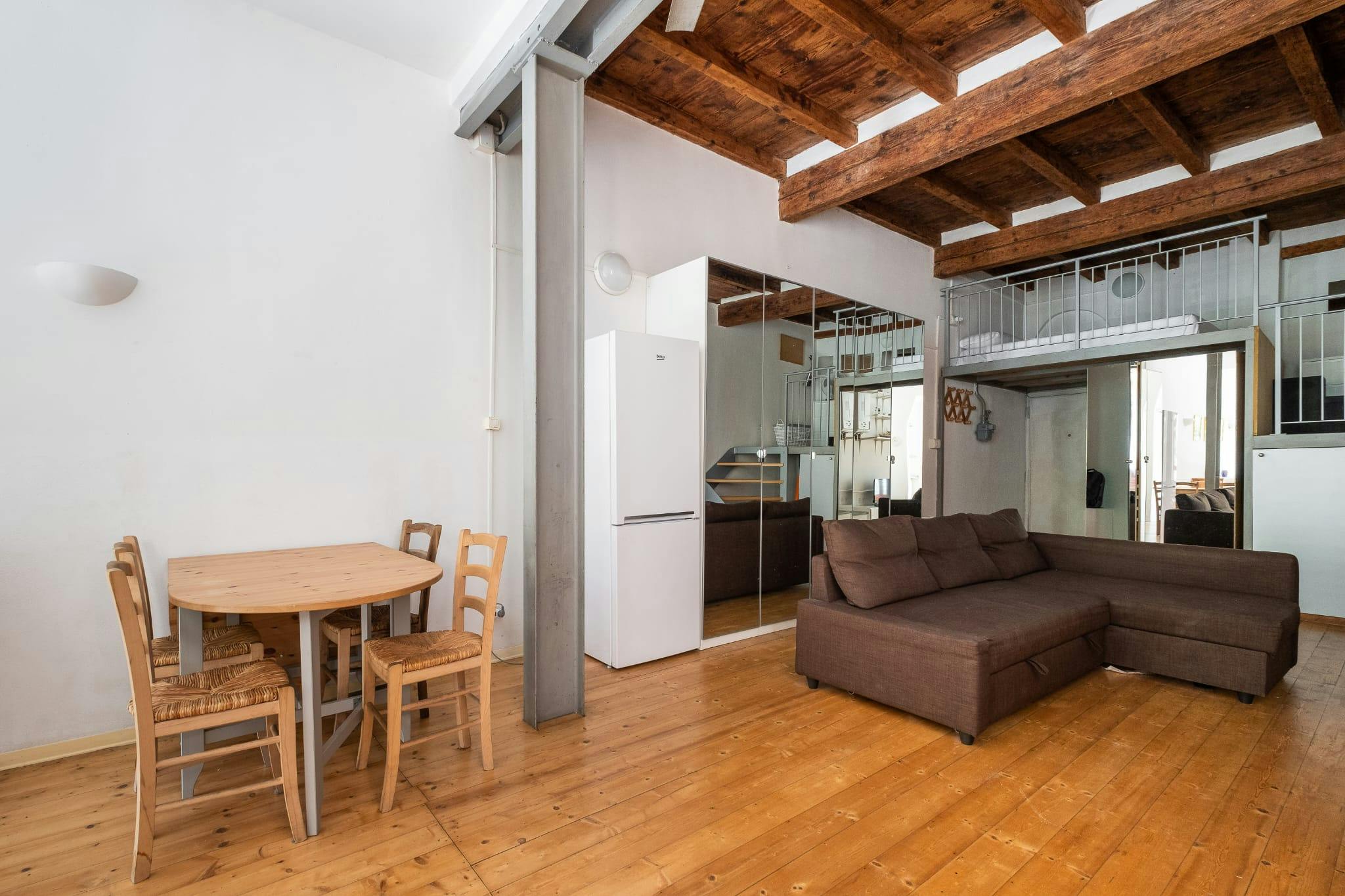 Nice apartment in bohemian style of about 60 sqm made from a barn of the 1400, located on the ground floor with bathroom in (hidden)ment and featuring: open space with sleeping area loft (loft height 80 cm) and sofa bed. Blind bathroom with bath t...