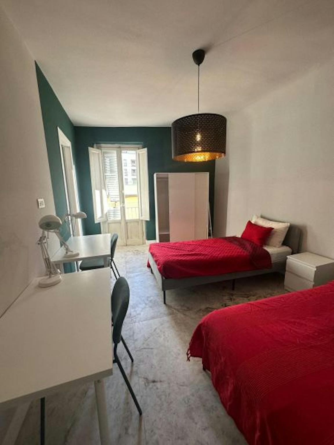 Great single room with double bed. The windows overlooks a quiet internal garden. The apartment has: 3 single bedrooms a large shared kitchen / living room (with dishwasher) 1 bathroom (all renovated and with shower) laundry room with washing mach...