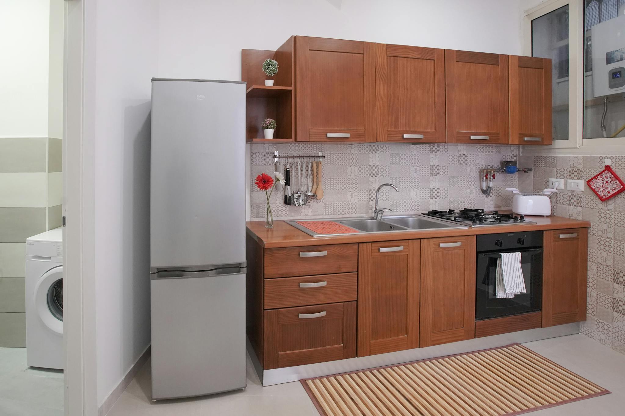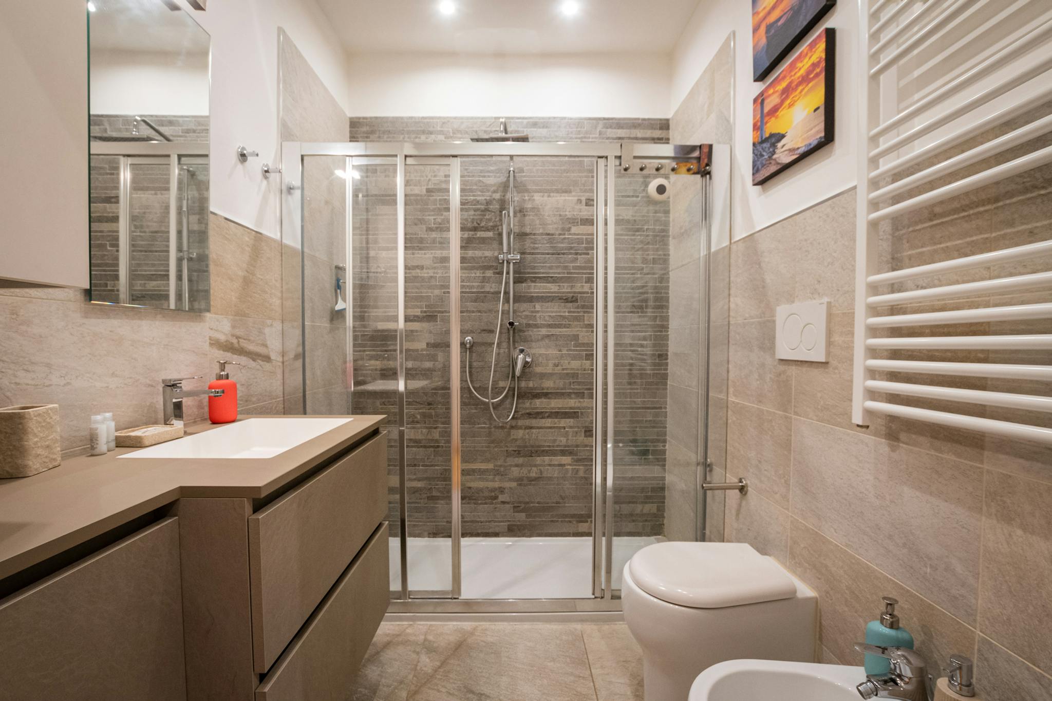Splendido appartamento posto al primo piano. Arredato elegantemente con doppi vetri molto silenzioso. Due camere e due bagni. Salotto spazioso e luminoso e cucina con abitabilità. Adatto a due persone. Aria condizionata e wifi Un gioiello in oltra...