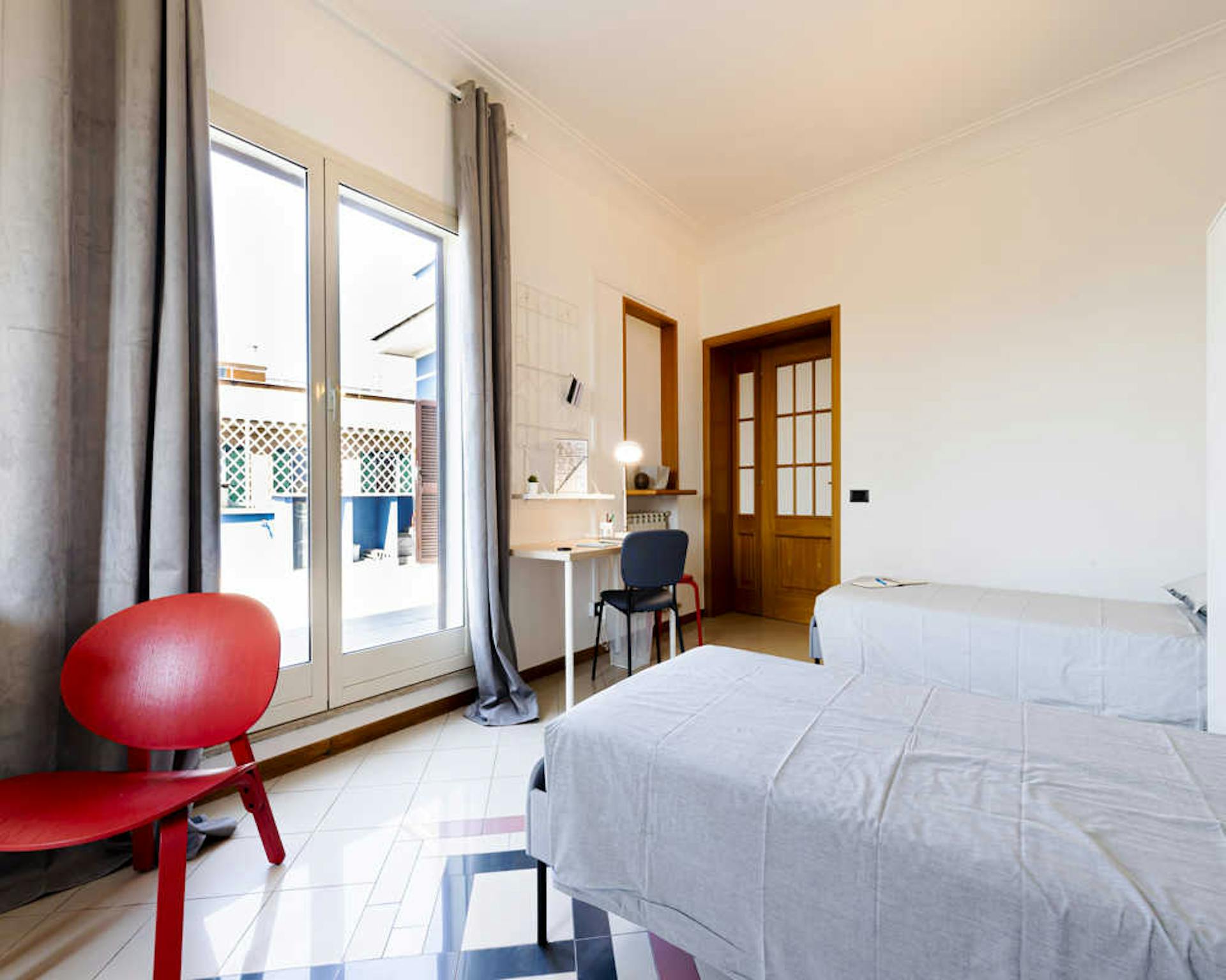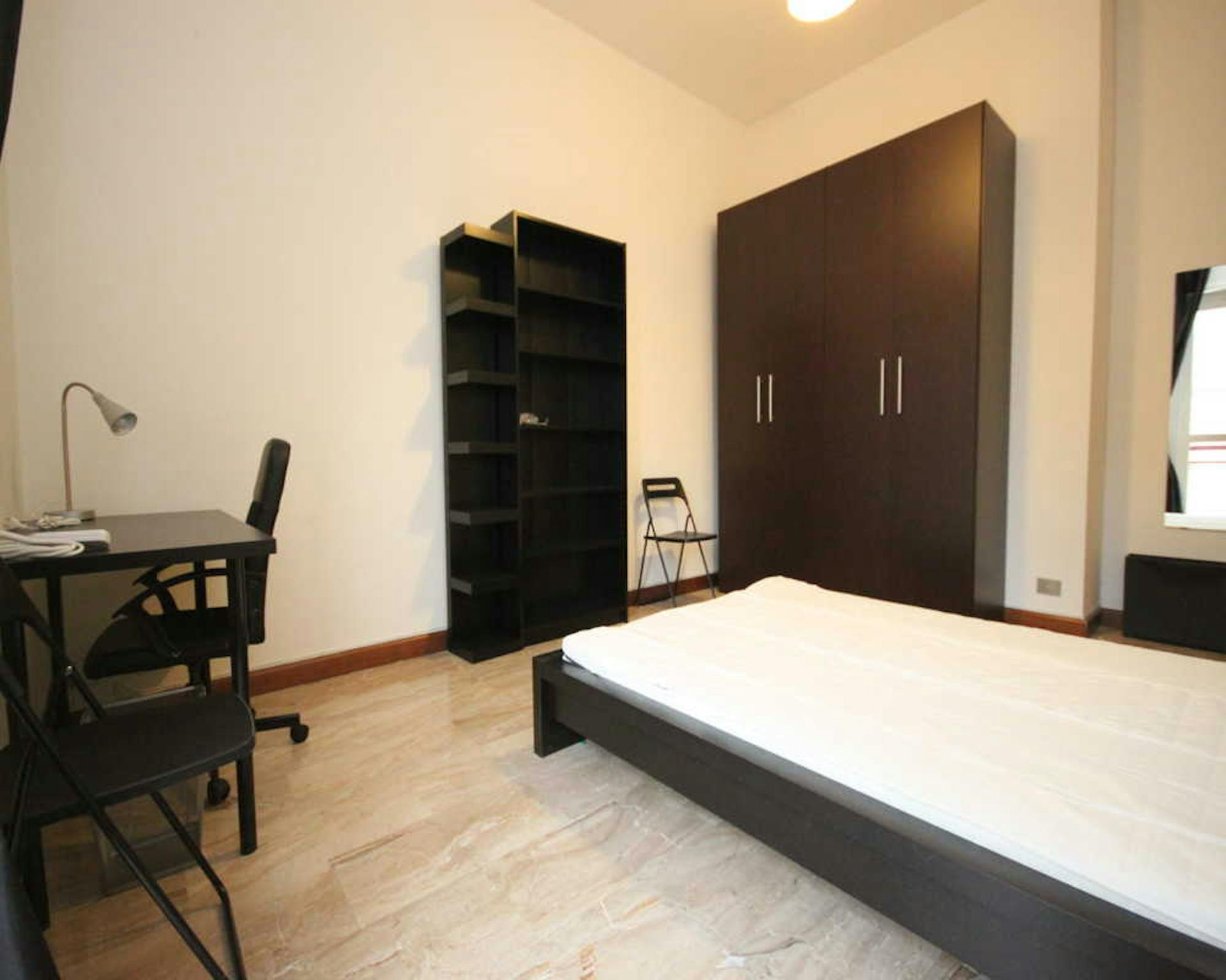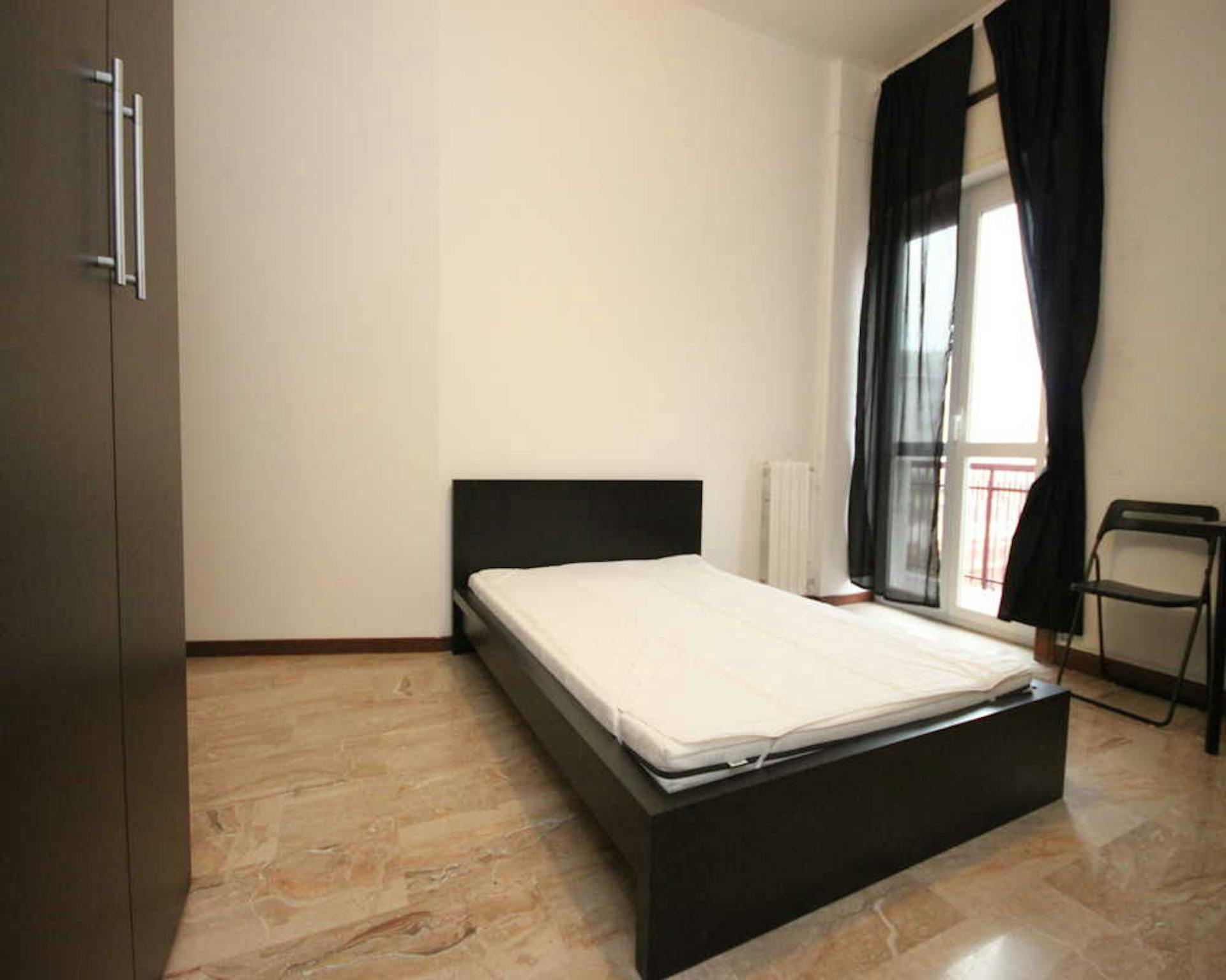Located in the vibrant *Pagano / De Angeli / Fiera* area, this bright room offers easy access to local shops and transport. A comfortable option on a high floor, ideal for city living. Private queen-size bed in a well-proportioned room of 10.01 m2...