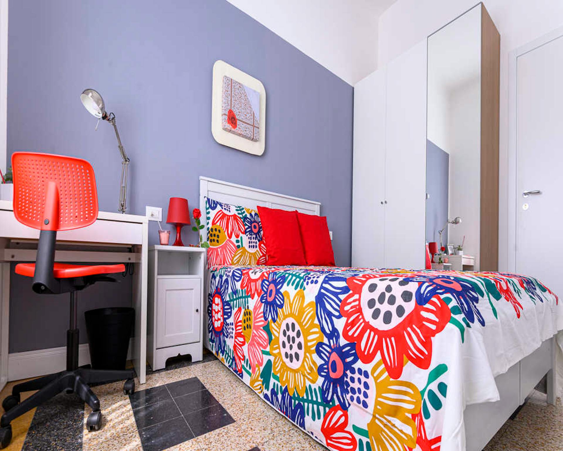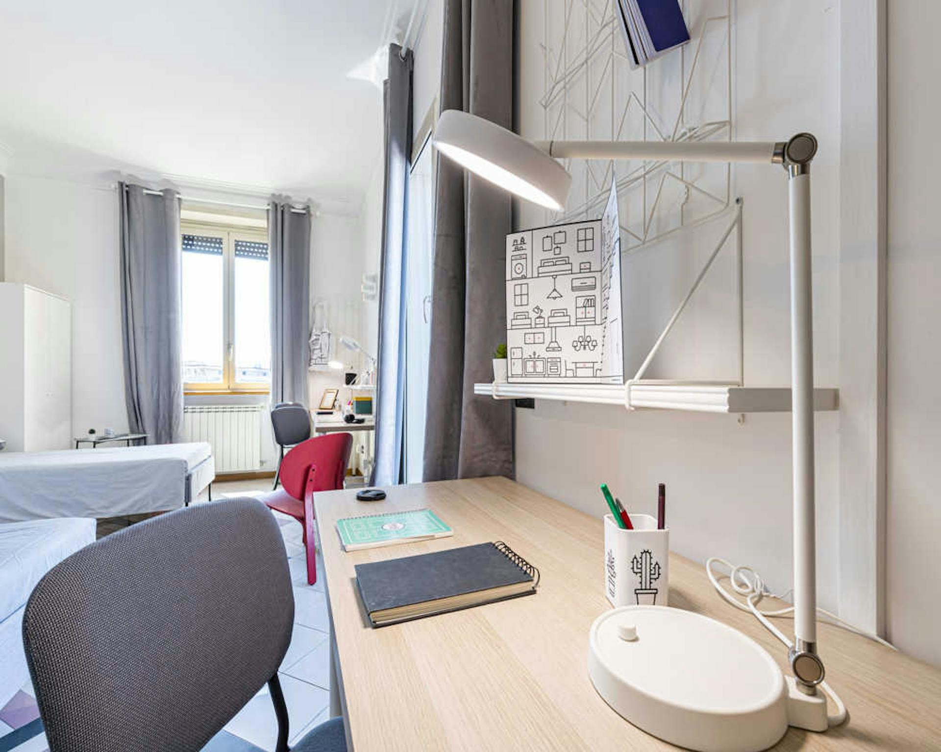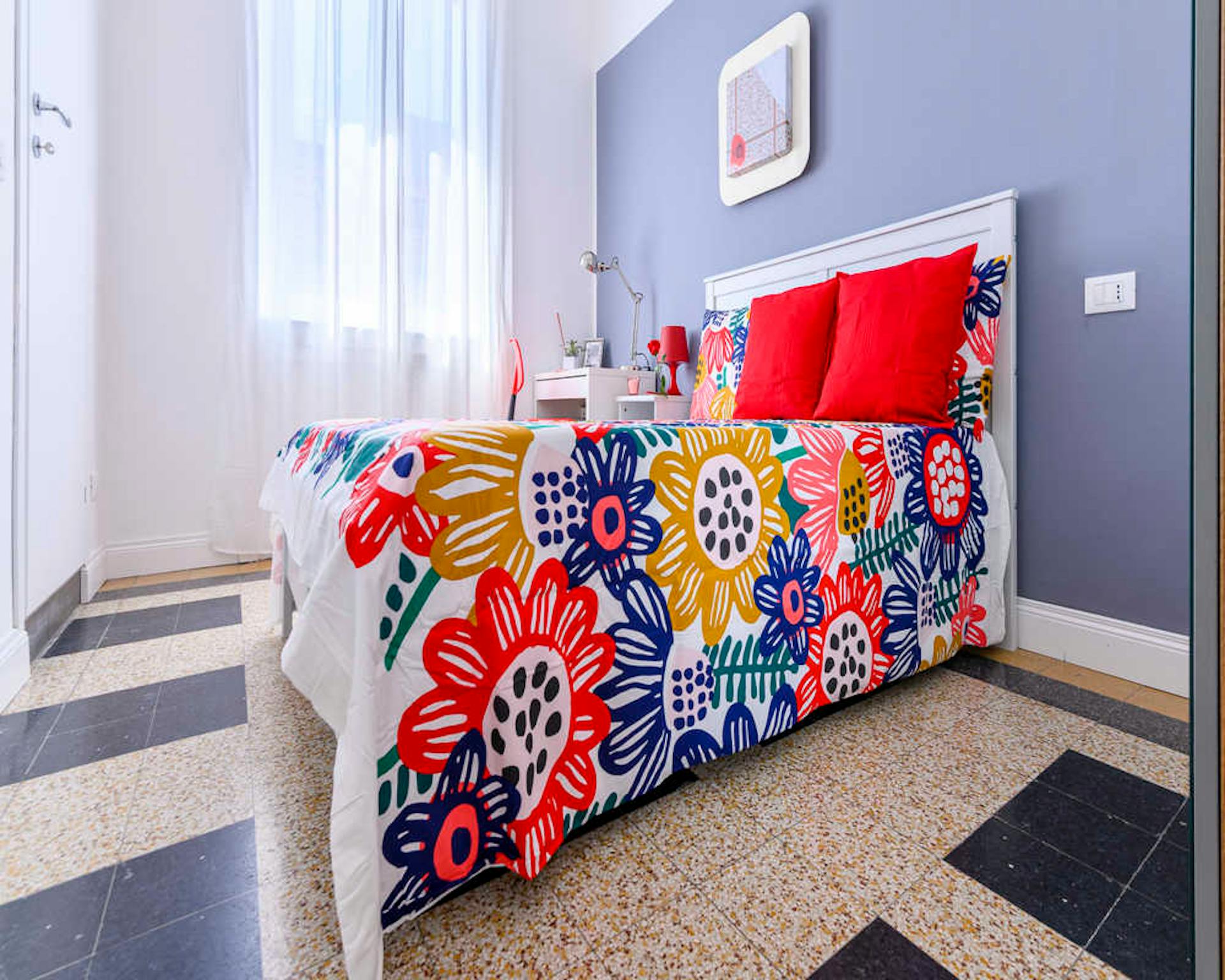 Located in the vibrant *Pagano / De Angeli / Fiera* area, this bright room offers easy access to local shops and transport. A comfortable option on a high floor, ideal for city living. Private queen-size bed in a well-proportioned room of 10.01 m2...