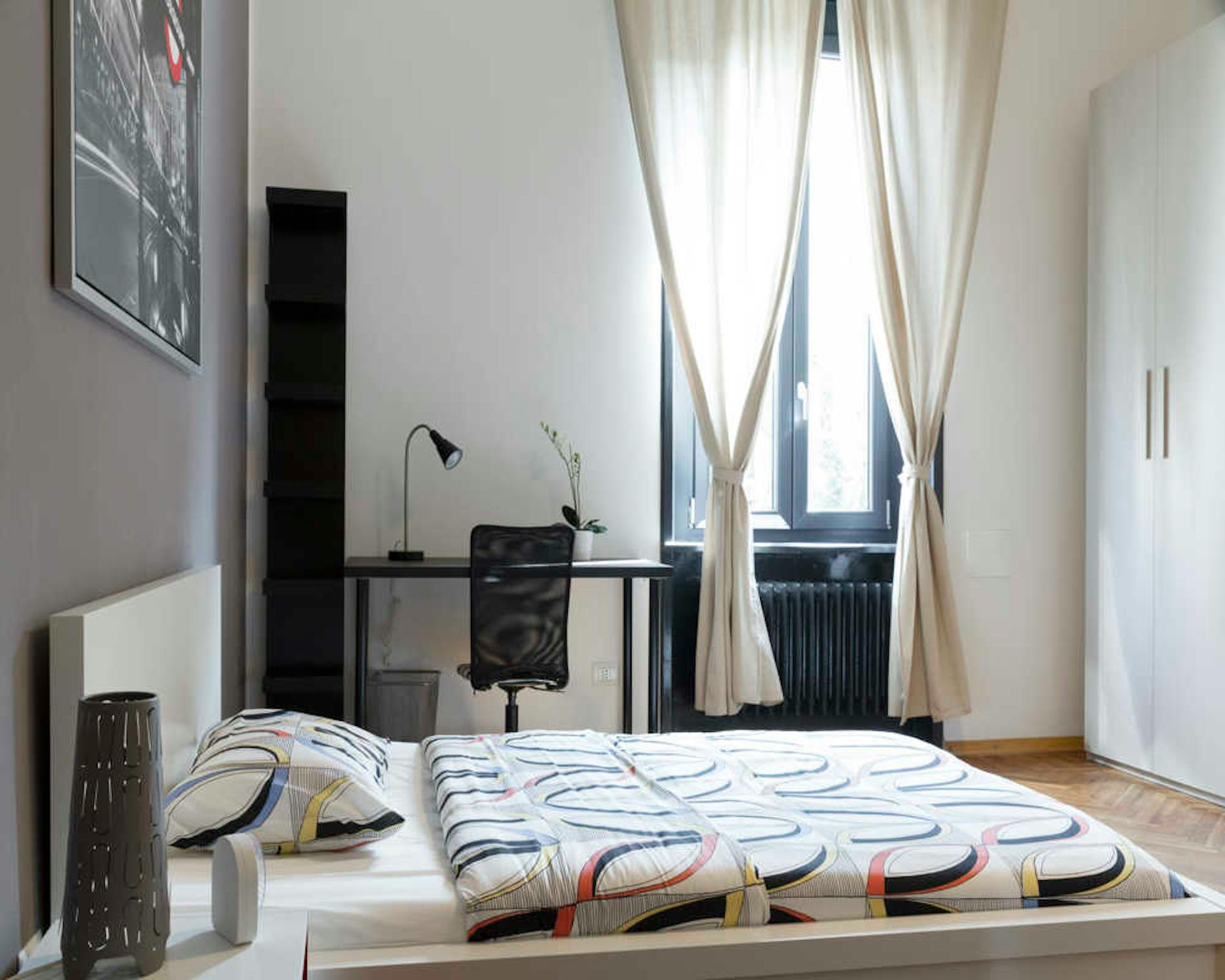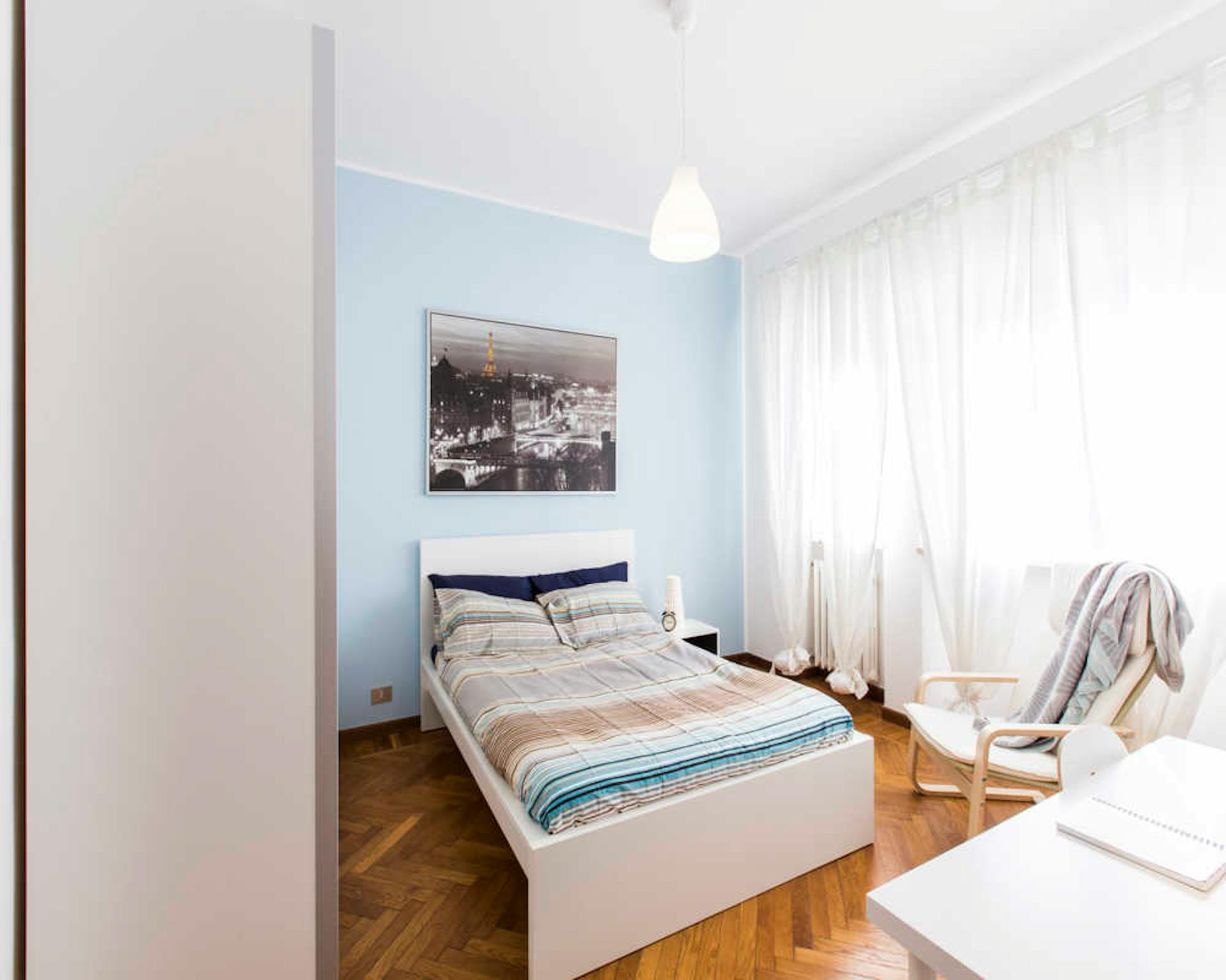 Located in the lively *Lorenteggio / Bande Nere / Primaticcio / Bisceglie* area, this bright room offers a convenient base in Milan for students and young professionals. The room features a comfortable queen-size bed and about 18 m2 of private spa...
