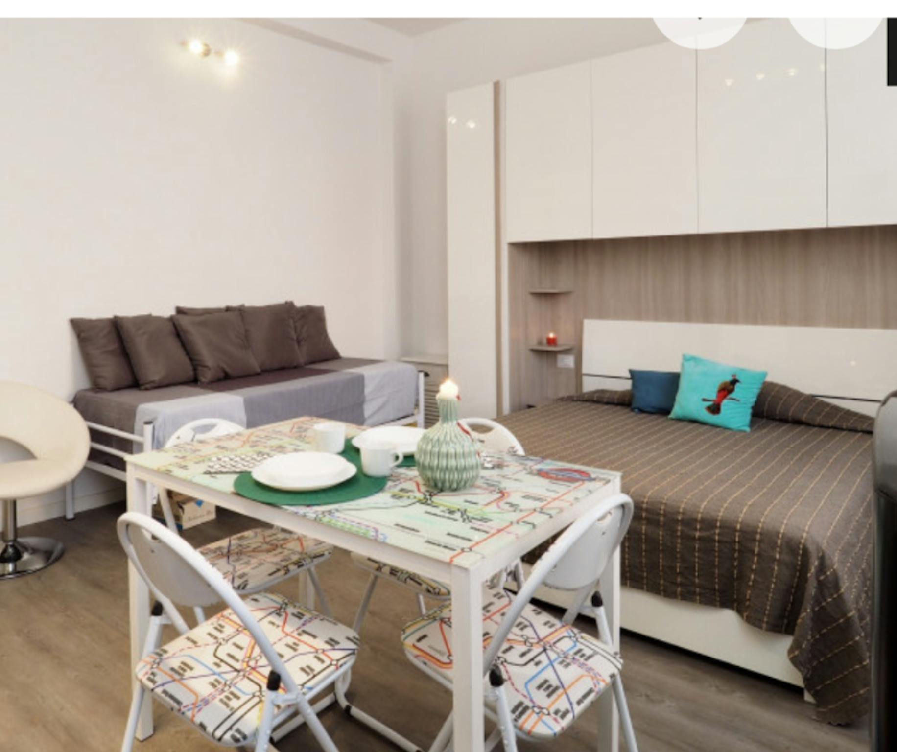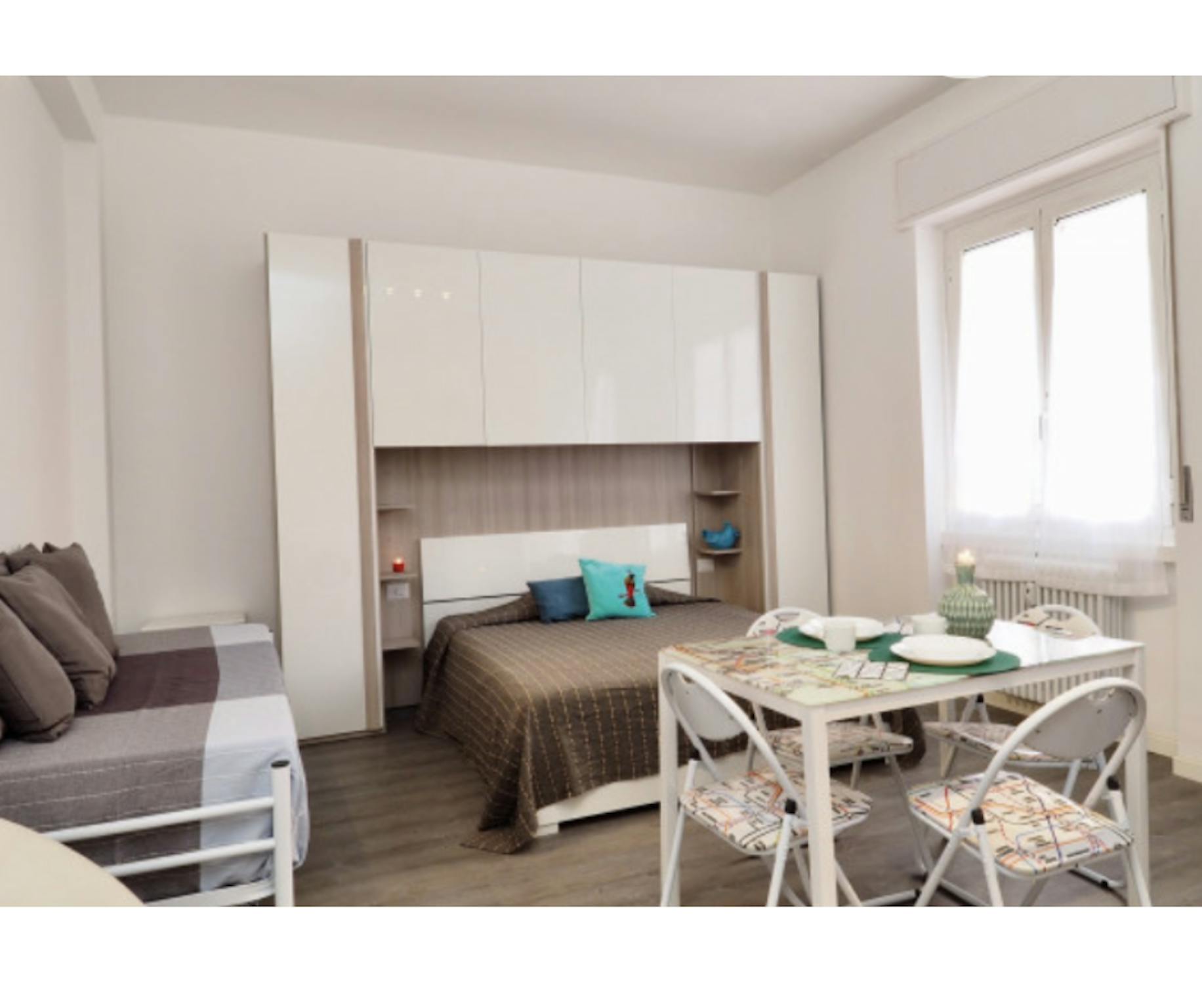 Delizioso monolocale, arredato, corredato, molto luminoso, al piano rialzato, con affaccio su cortile interno, silenzioso e riservato. Grande bagno finestrato, letto matrimoniale con contenitore, ampi armadi. A 200 metri dalla fermata metropolita...