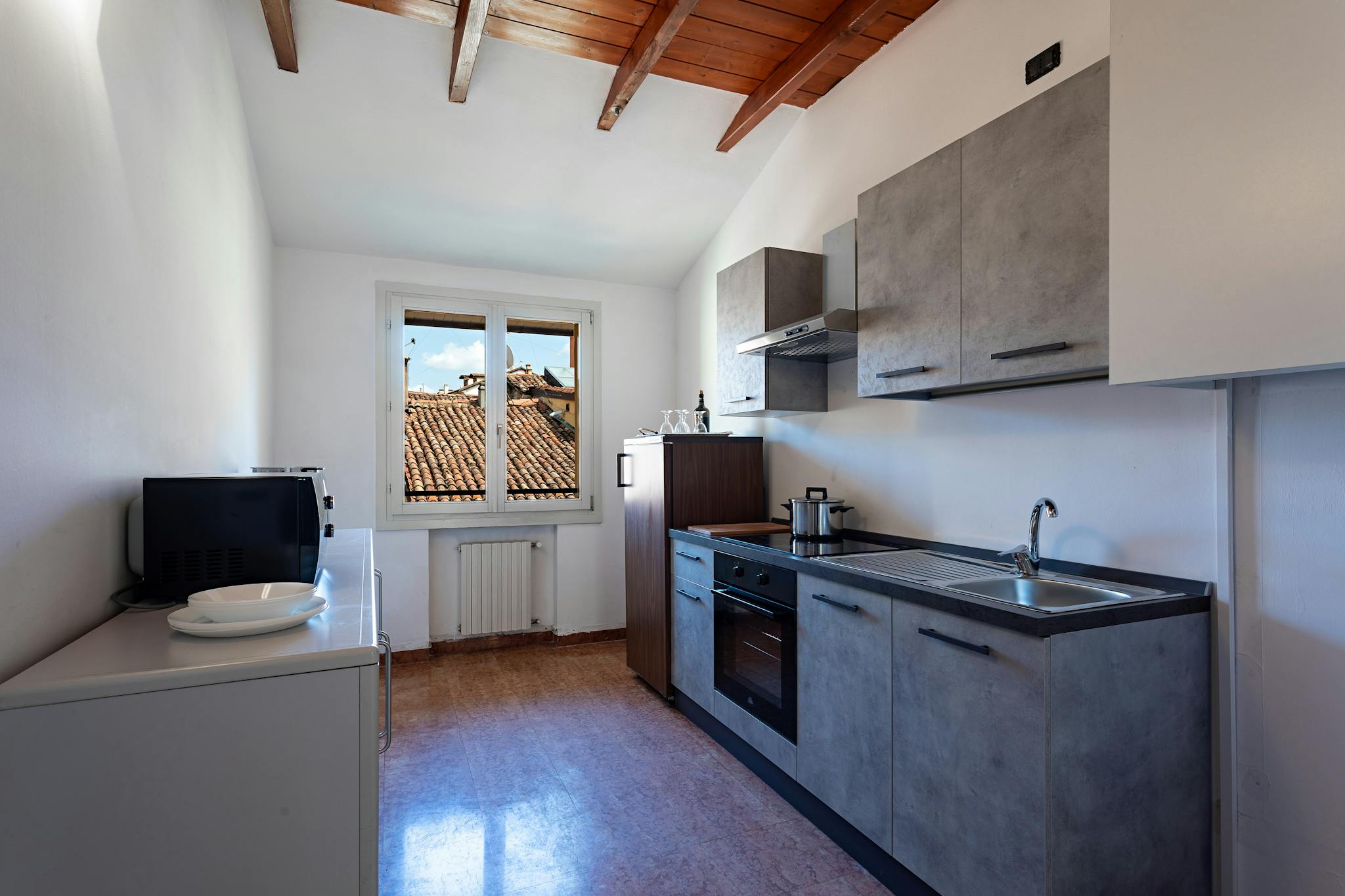 Monolocale silenzioso in pieno centro storico , con posto bicicletta/ moto in corte privata . Completamente arredato e ristrutturato, primo piano senza ascensore con affaccio in cortile privato silenziosissimo .