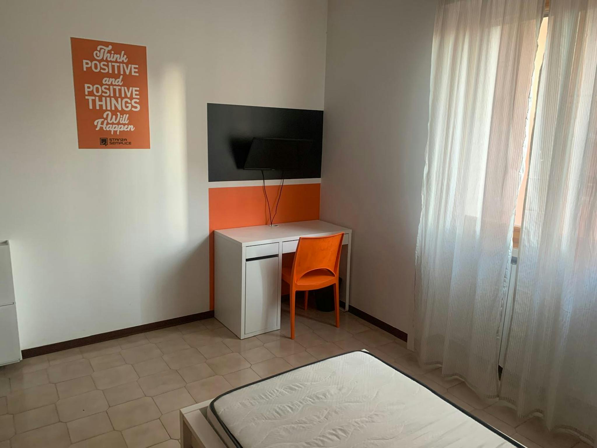 Bella ed ampia stanza singola con terrazzo privato in appartamento condiviso e composto da, 4 stanze ad uso singola, due ampi bagni finestrati, cucina abitabile ed attrezzata, salottino e garage per bici e moto Appartamento condiviso e composto da...