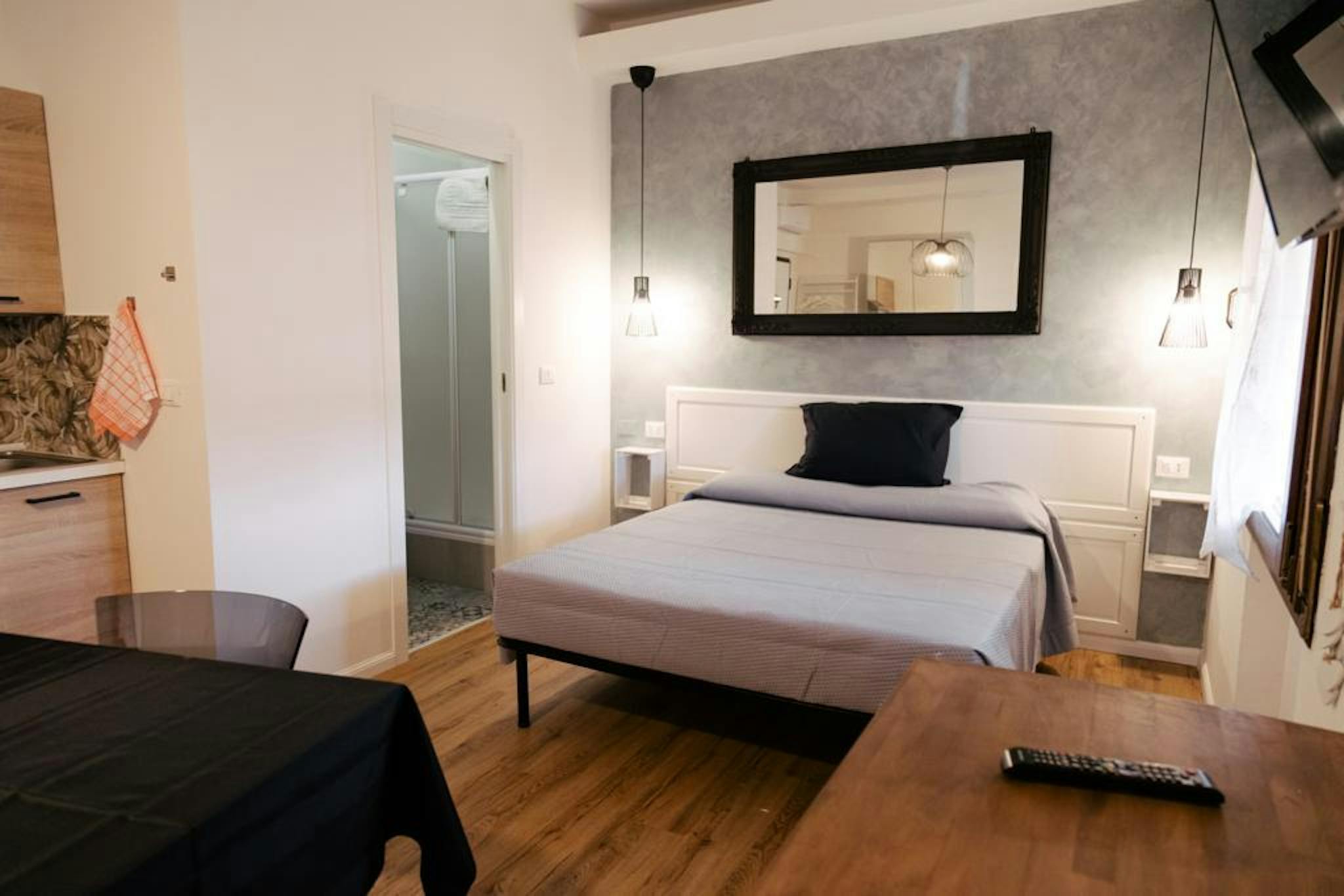 Ampio Monolocale con letto matrimoniale, divano , tavola , bagno, zona ben servita da bus a soli 5 minuti dal centro storico con possibilità di parcheggio sotto casa a pagamento