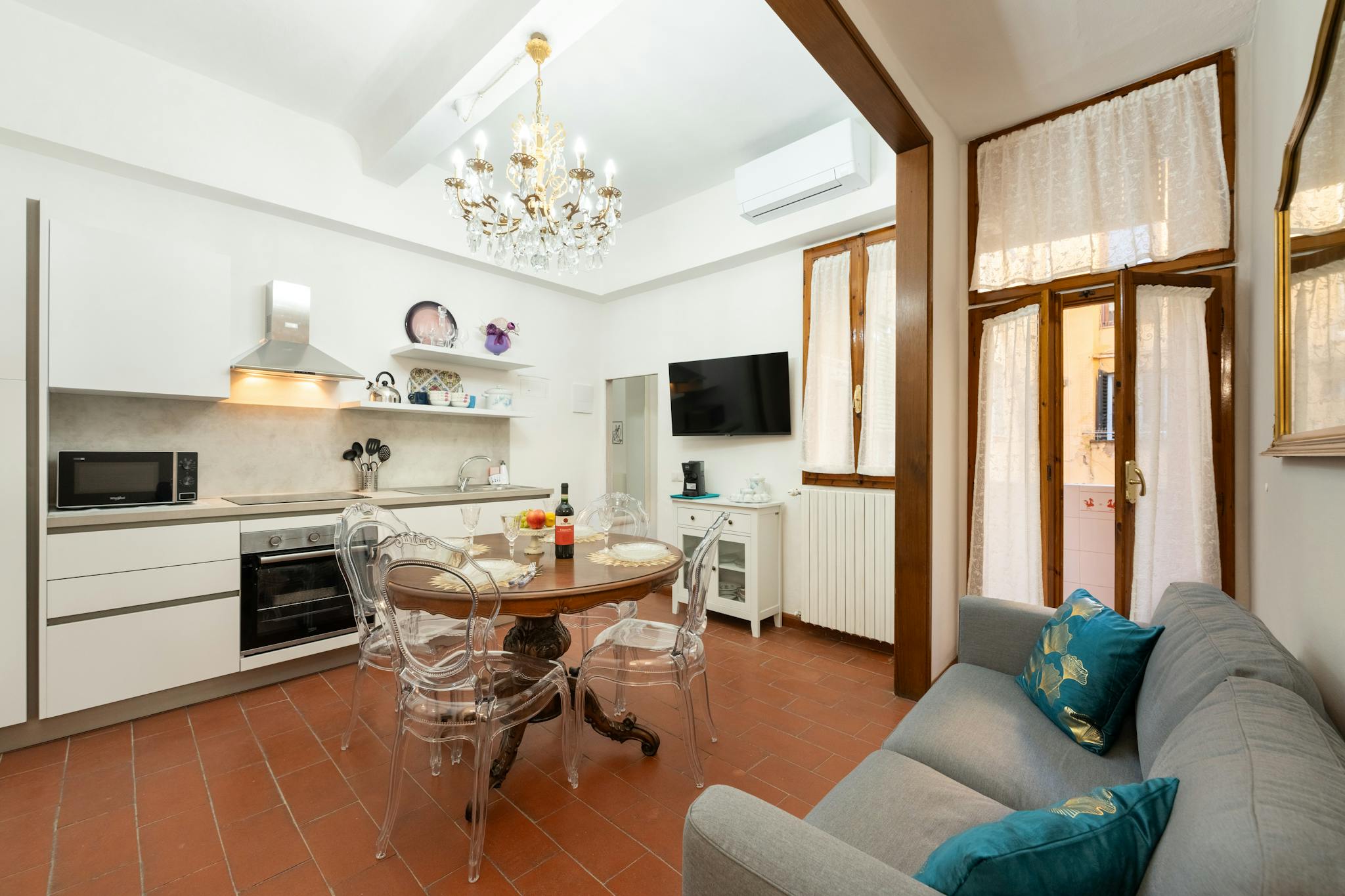 In the heart of Old Florence in Oltrarno Cantinetta apartament has one bedroom, 2 beds, one kitchen and one bathroom. The two-storey apartment is not suitable for people who have difficulty to go up and down the stairs. Cantinetta is in a buildin...