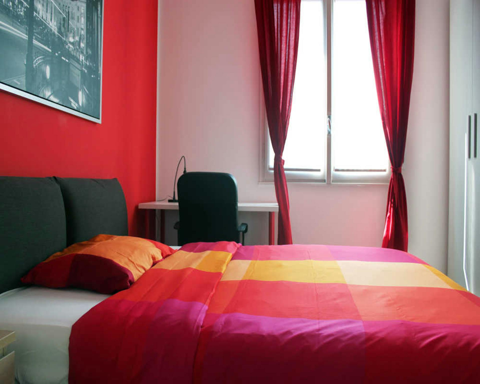 20 square meter spacious and sunny room, cosy and freshly painted, with a 120 x 200 cm large bed (24cm thick mattress). Part of a 4-bedroom apartment, recently renovated, with two shared bathrooms (with shower and window), a shared kitchen and din...