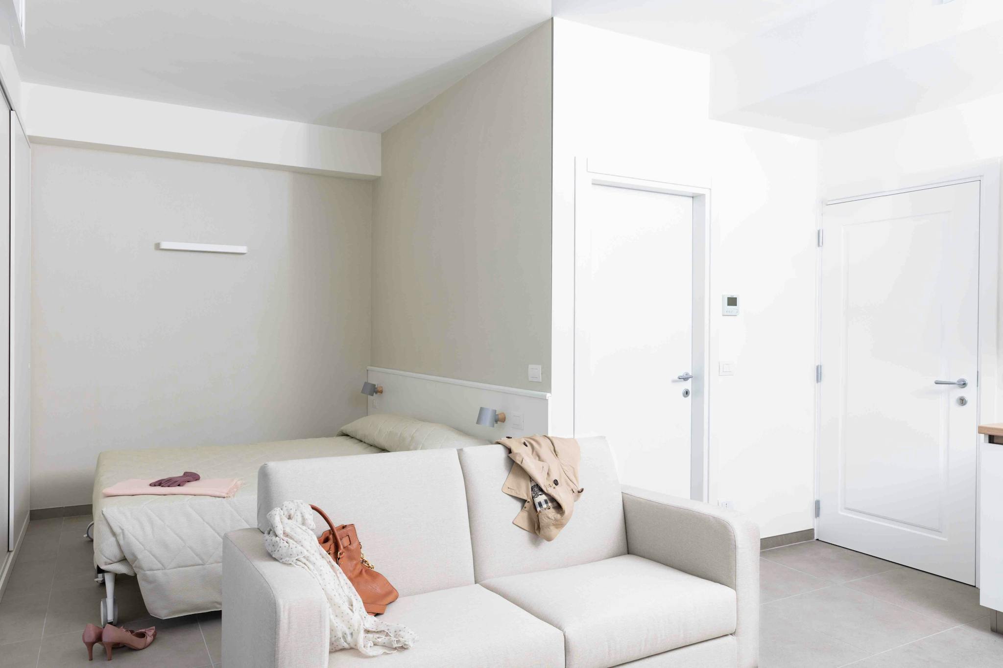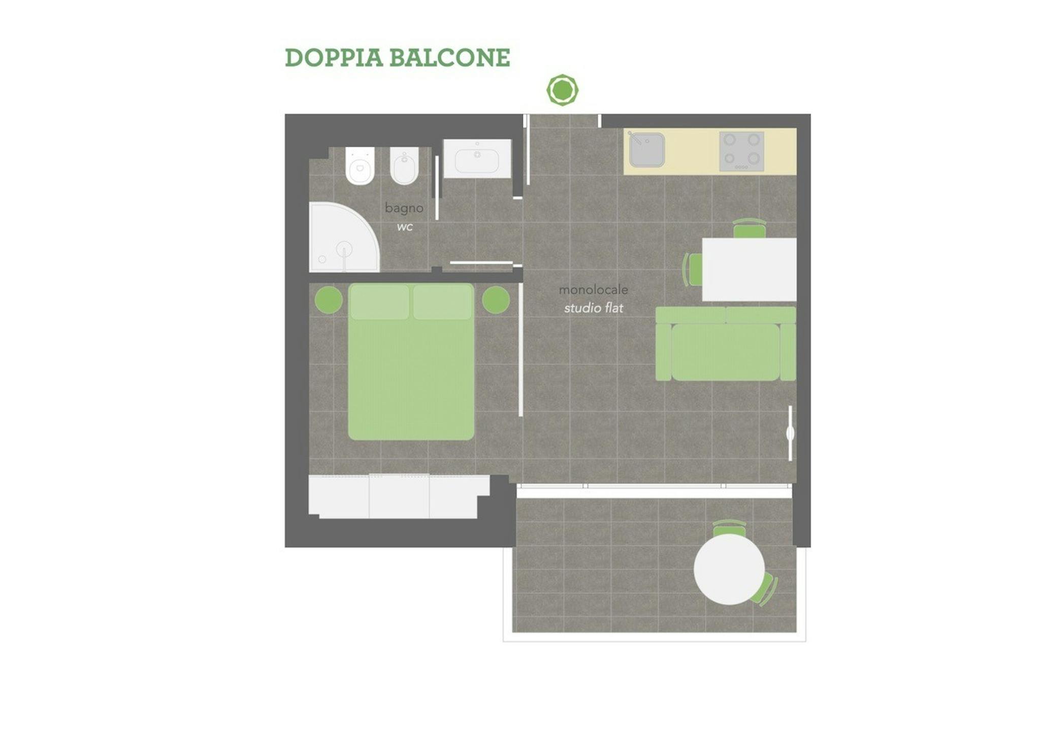 Spazioso bilocale colorato e arioso. L’appartamento dall’atmosfera moderna e vitaminica, dispone di soggiorno con cucina, una camera doppia spaziosa, entrambe con grandi terrazzi e il frizzante bagno con doccia. La camera può essere disposta con ...