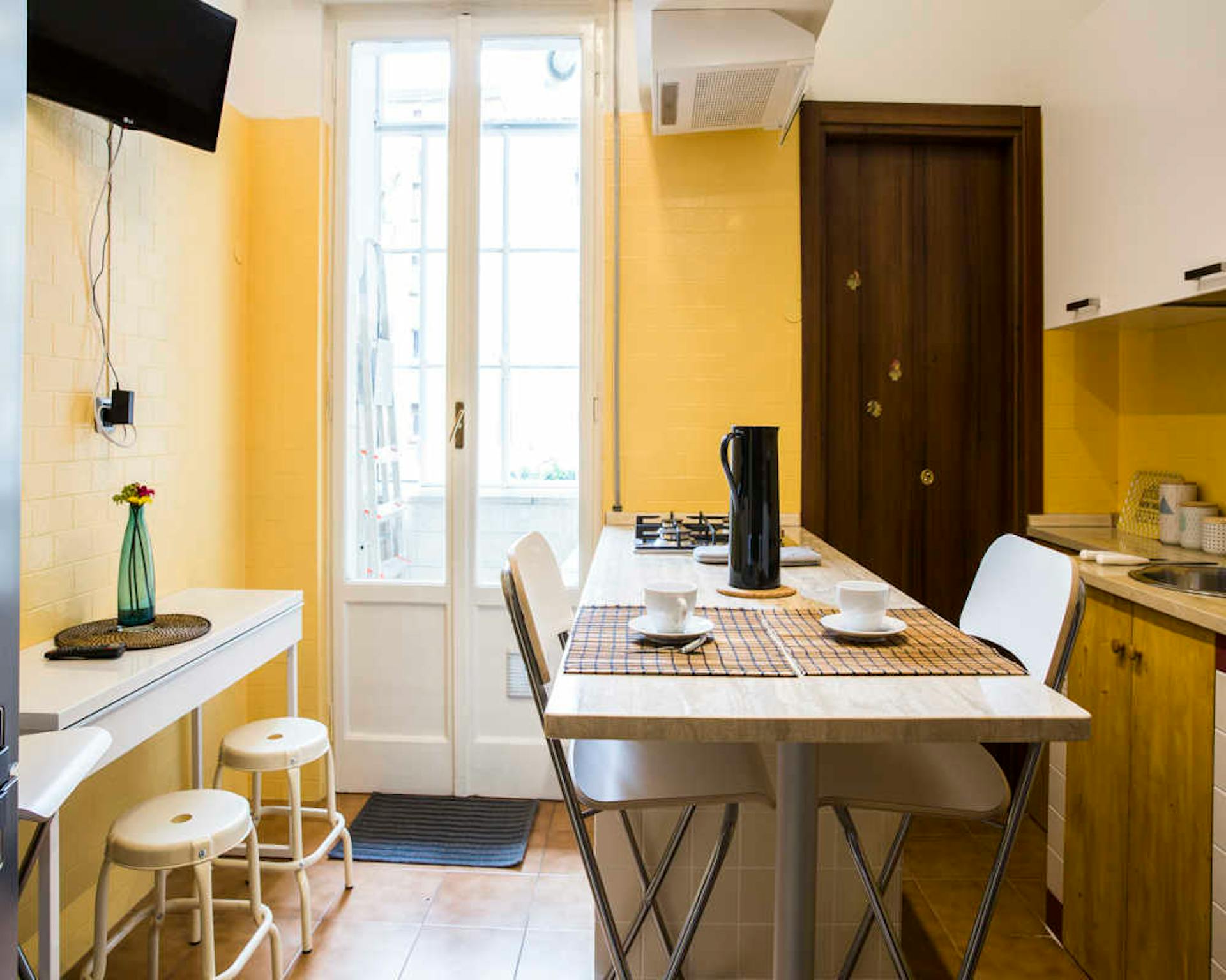 Bright studio apartment with equipped kitchen with microwave, bathroom, and living area **IMPORTANT SPECIAL CONDITIONS ** For this apartment, the following rental conditions apply: 1) electricity is not included but paid upon consumption (0,60€ k...