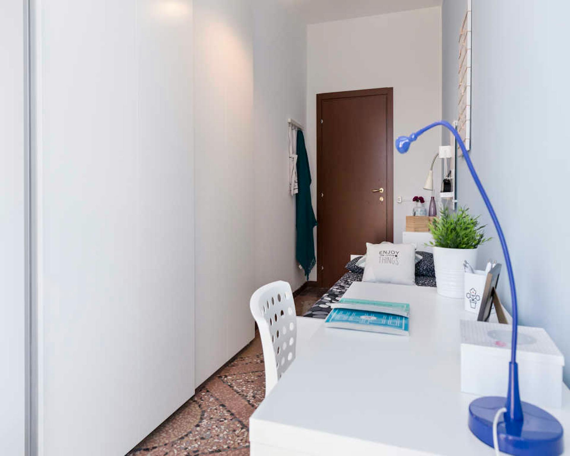 ROOM Our rooms come fully furnished with a premium mattress, a wardrobe, a warm carpet, a desk and chair. Of course, pillows, bedsheets and small items such as a bed-side table and a small lamp are always included. Depending on your needs, you can...