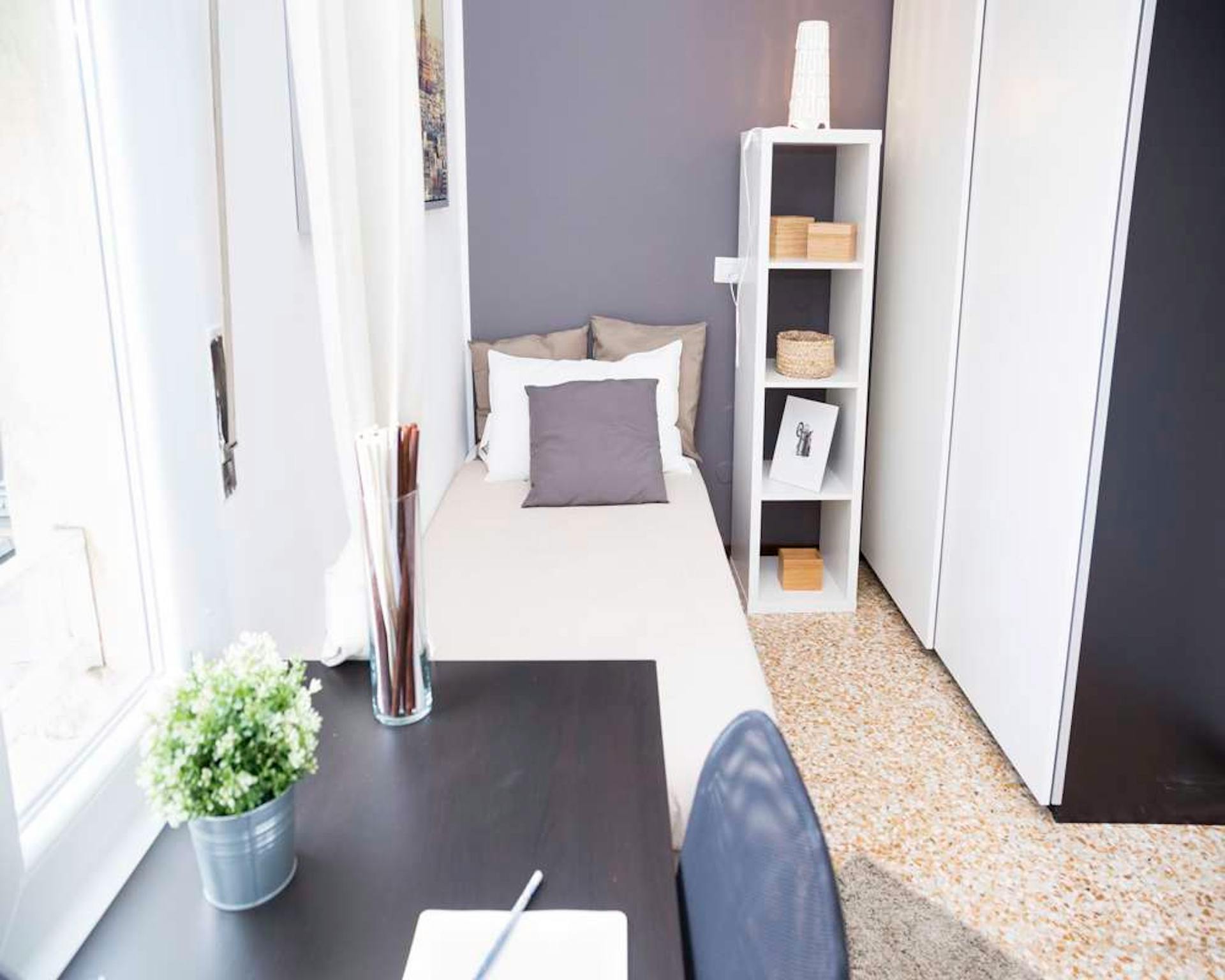 Single room in a shared apartment, composed by 6 bedrooms and 2 bathrooms. Of about 10 sqm with a single bed and a work station. With wifi, dishwasher, washing machine. Energy class: D, IPE 126.55 Kwh/Sqm year. Current tenants: 1: 25, Male, Stud...