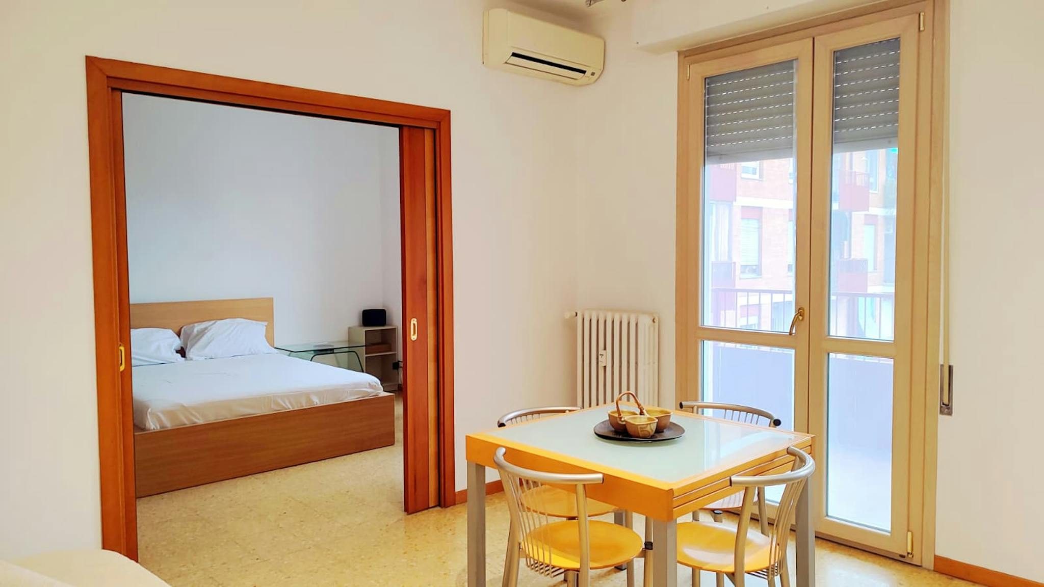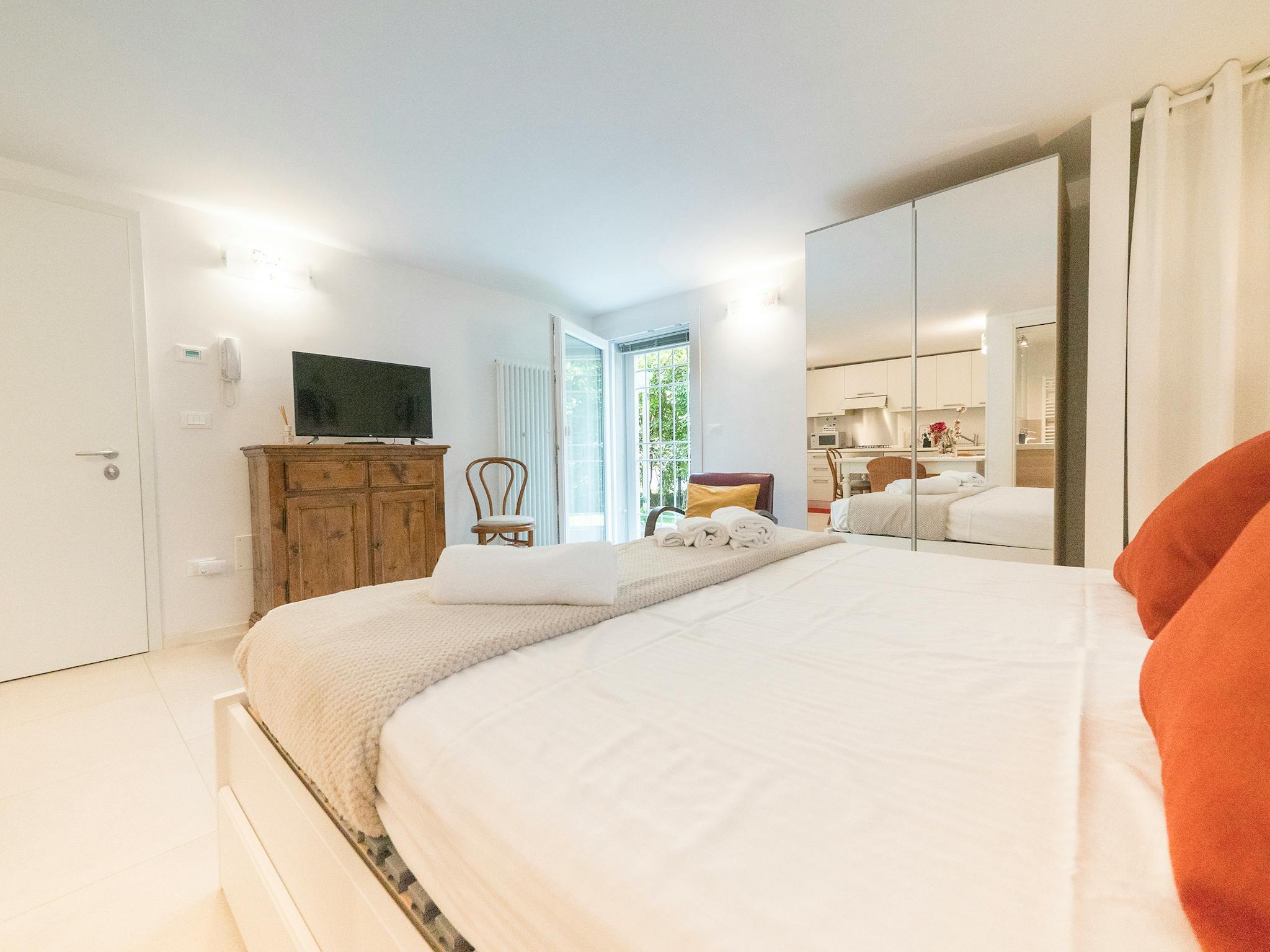 Appartamento bilocale nuovo comodissimo ai servizi, situato accanto all’Ospedale S. Orsola. Wifi, smart tv, affaccio su silenzioso giardino, ampia camera matrimoniale doppia, cucina attrezzata e bagno finestrato.