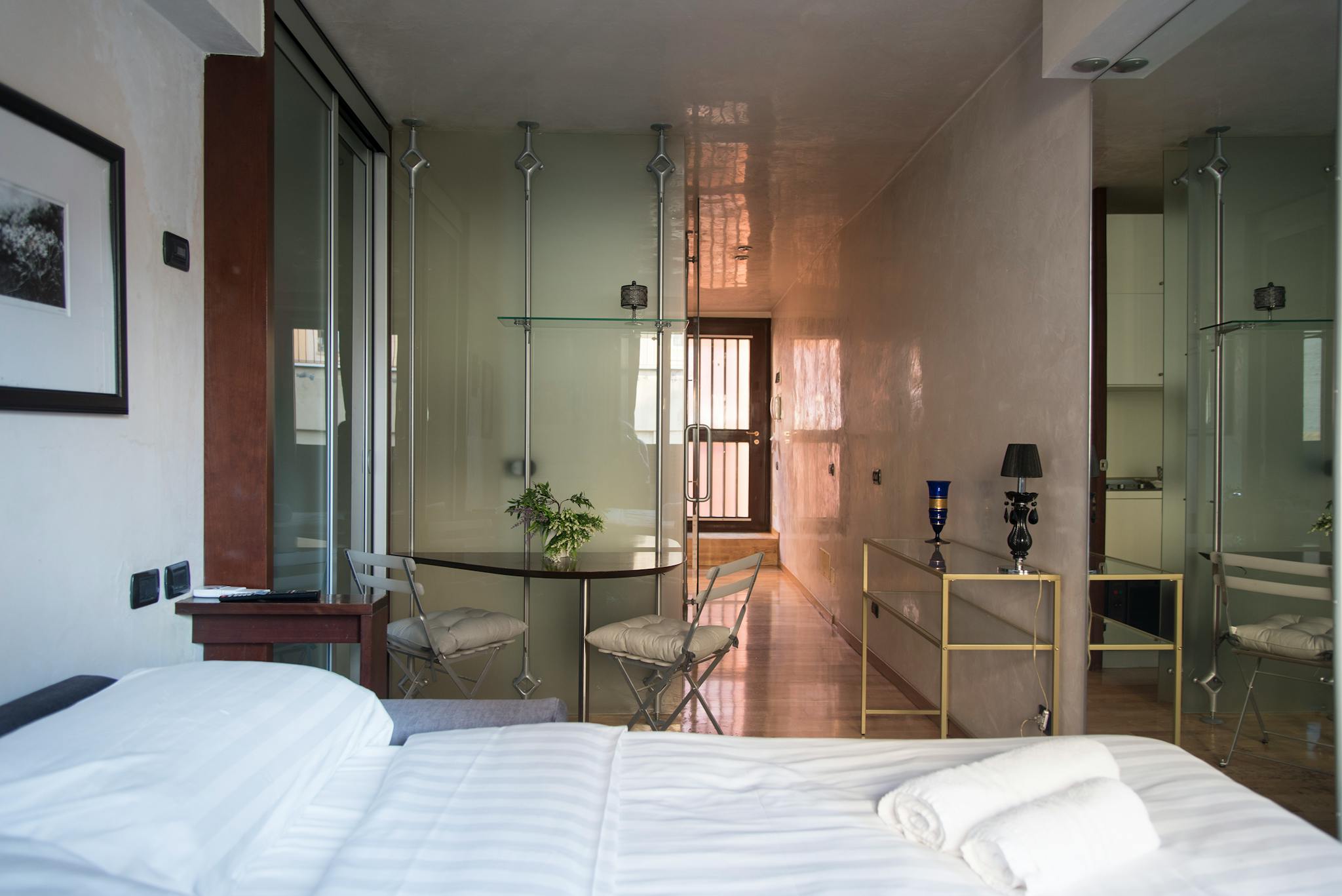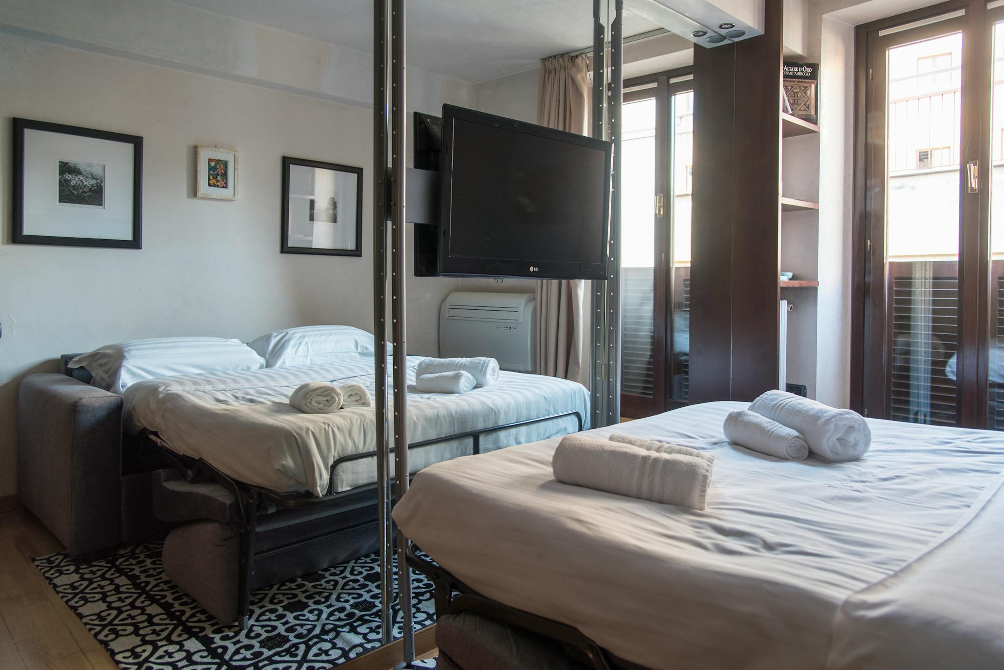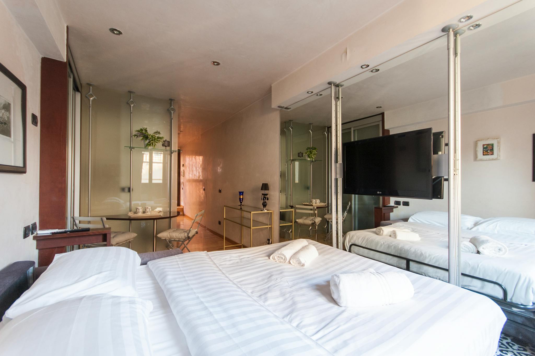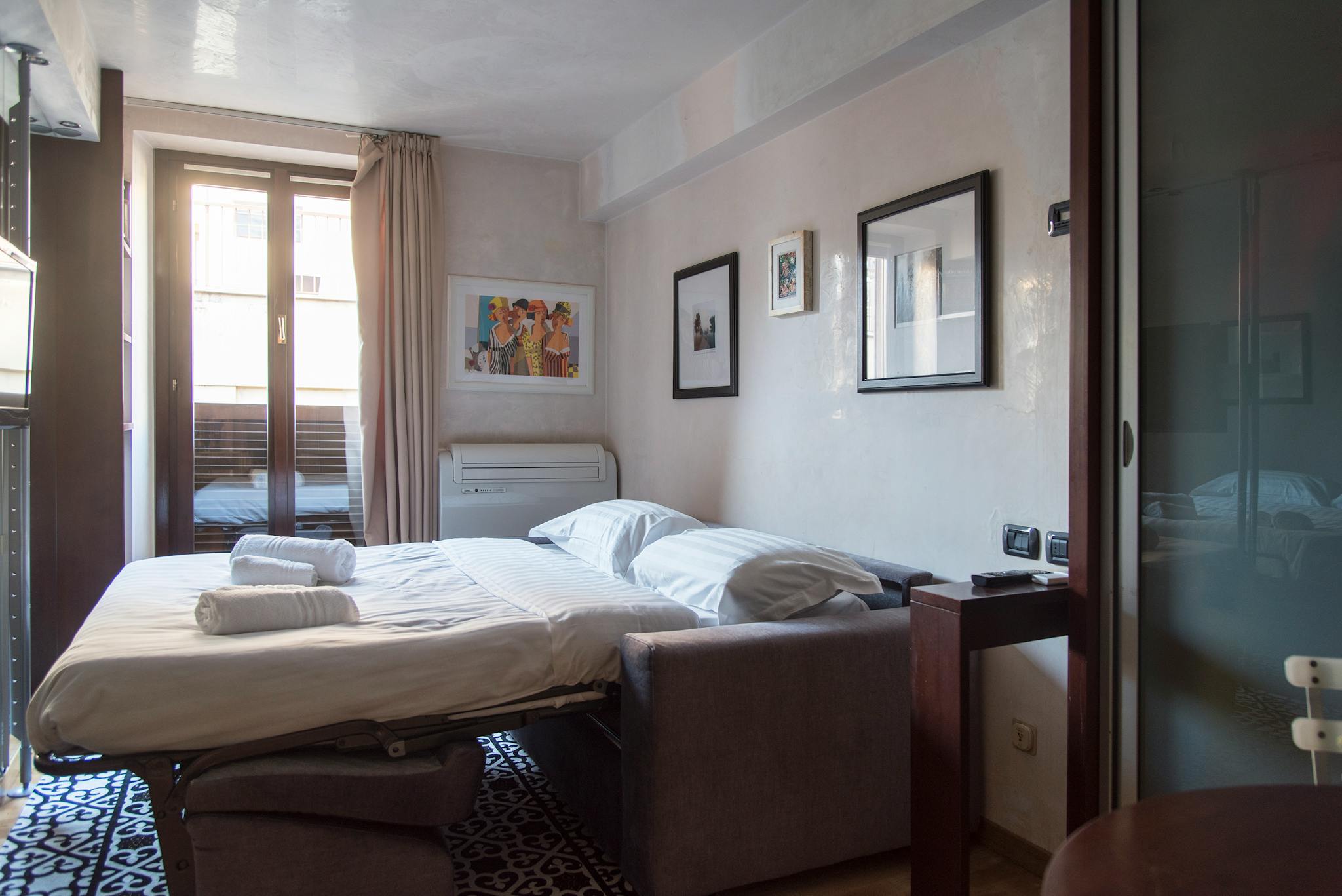 Experience Italy's Vibrant Culture from Your Cozy Room in Milano! Studio Apartment in City Center is a fully equipped studio apartment with a living room with a double sofa, a separate kitchenette and a bathroom with a shower. The strategic and c...