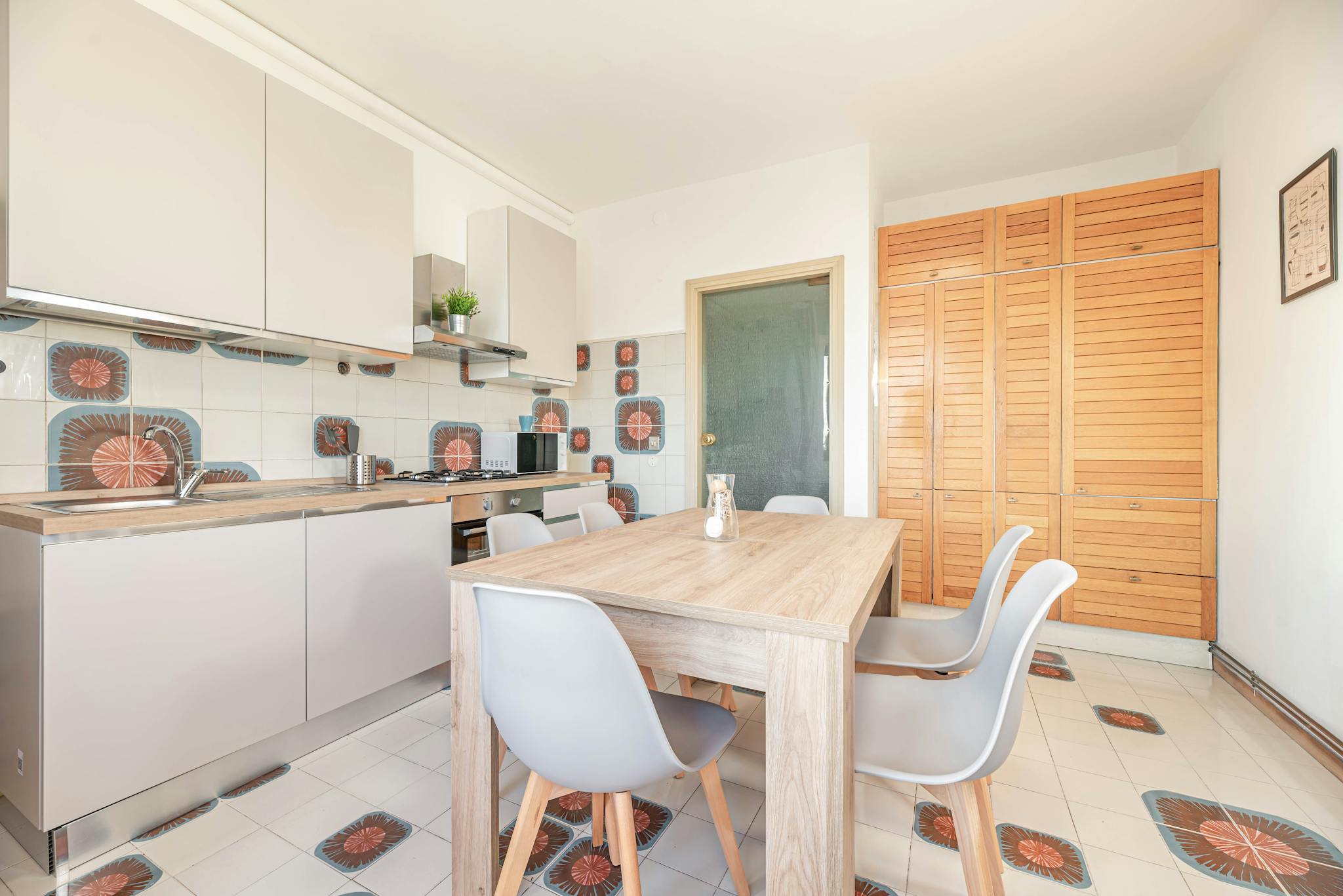 A newly renovated apartment located on the fourth floor, consisting of 5 bright rooms: three with double beds and two with three-quarter beds. It features a spacious, fully renovated kitchen and two modern bathrooms. The apartment is in a strategi...
