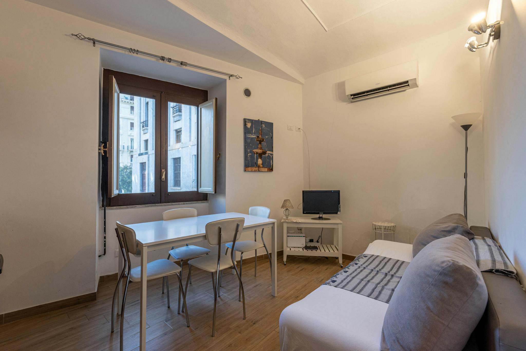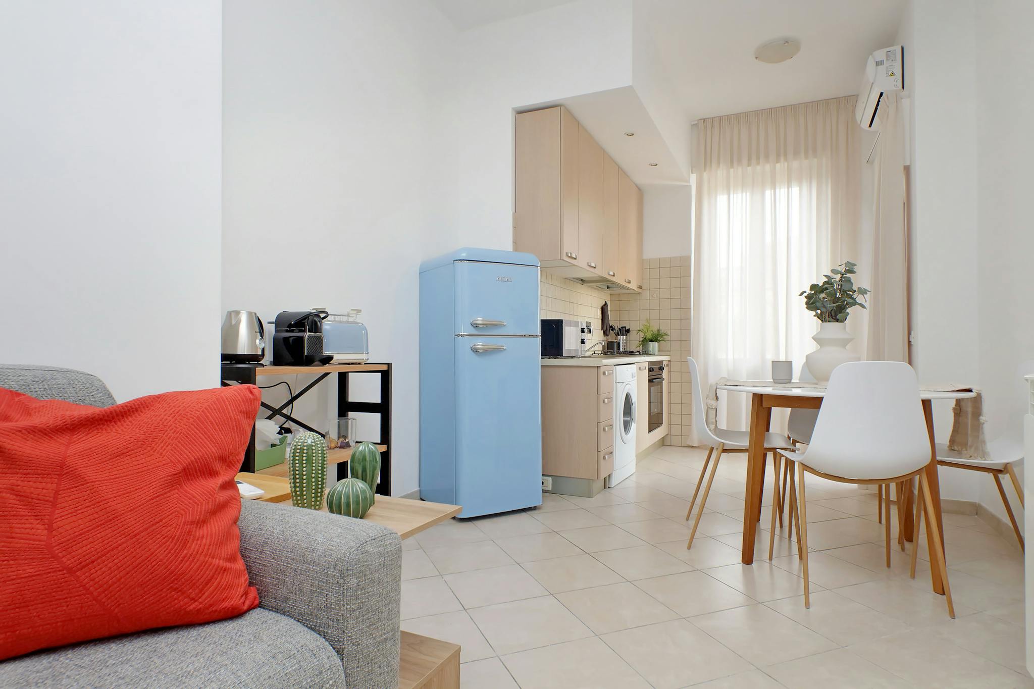 Bright two-room apartment in the heart of Fiumicino, ideal for 4 guests. It has a large lounge with a comfortable sofa bed, equipped kitchen, double bedroom, modern bathroom and, furnished terrace. Located in a central area, it is surrounded by ...