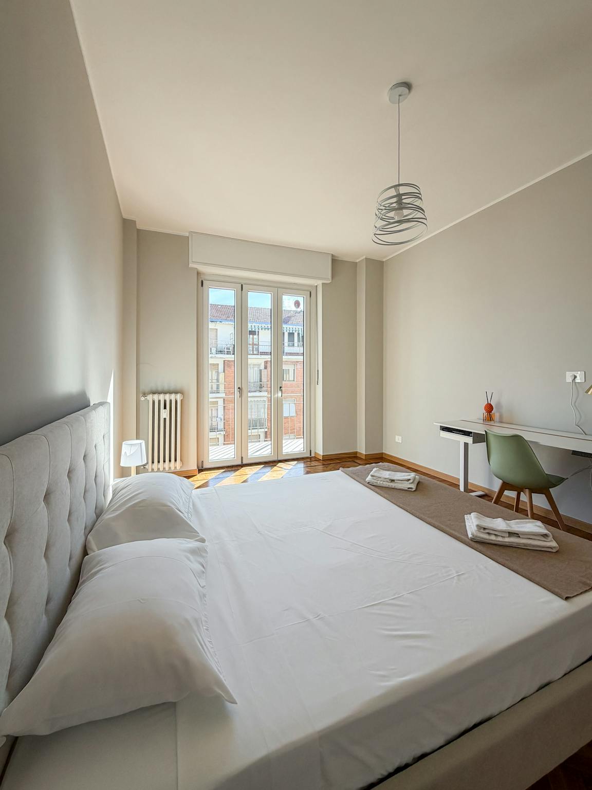Private room in a renovated shared apartment located in San Donato area, complete with beds, desk, chairs, lights and closet. Shared kitchen equipped with pots, dishes, glasses, cutlery, oven, induction cooktop. Shared bathroom with shower and was...