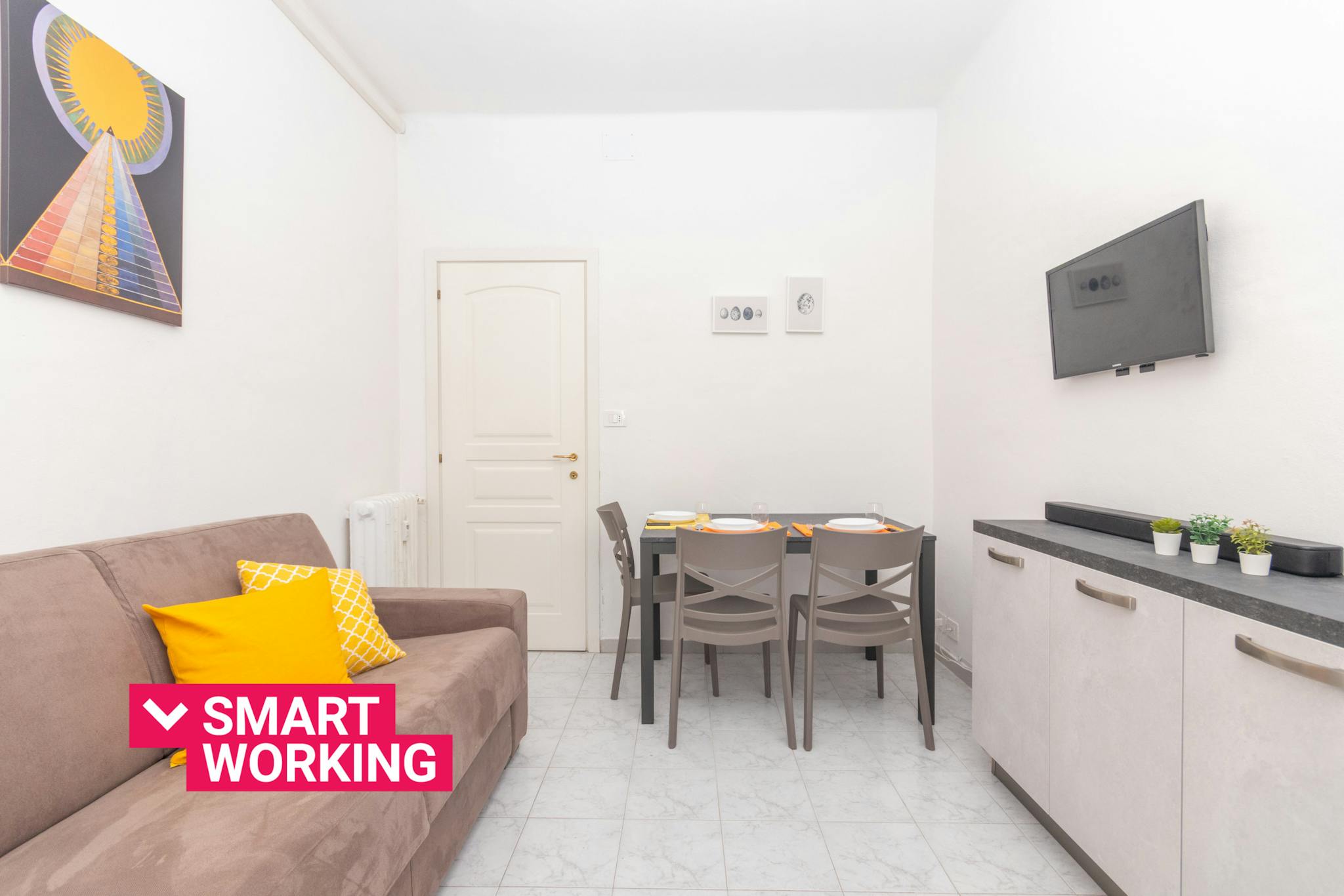 Casa Delia by (hidden) Modern and bright one-room apartment in an area of Turin served by commercial activities and subway.. . Located on the first floor of a building without an elevator, the apartment consists of a bright living room with a do...