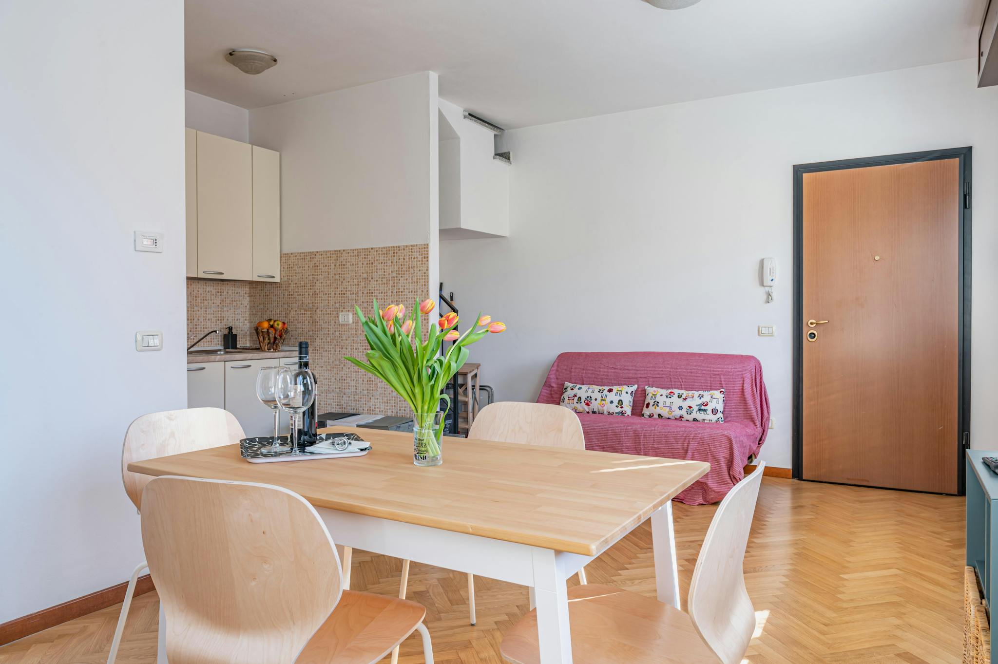 Charming one-bedroom apartment located on the 3rd floor of a quiet residential building with elevator access. The apartment features a bright and welcoming living room with a beautifully designed, high-end Veneta Cucine kitchen, fully equipped wit...