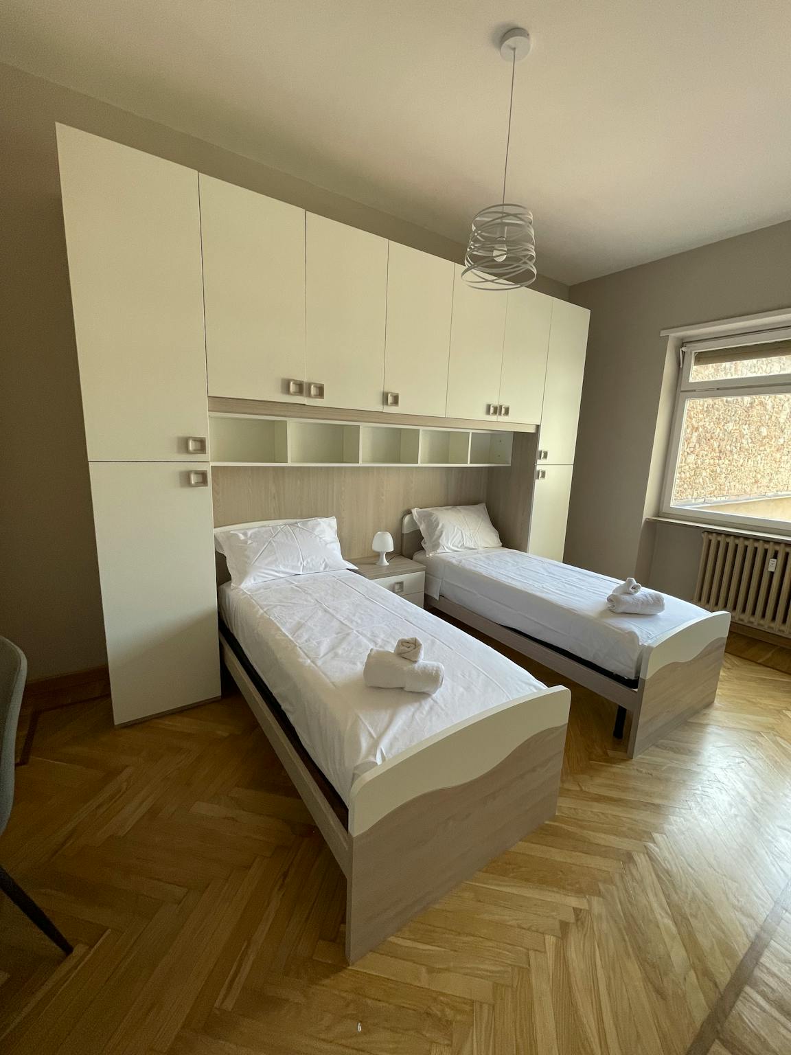 1 single bed available for a student in a wide double room in a luxury apartment for maximum six students with 3 baths, a shared kitchen and a TV room. The double room has brand new furniture, beds and matress, a very large desk. It Is in a fan...