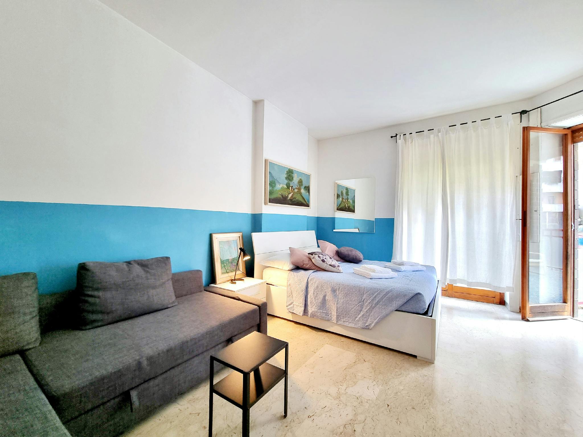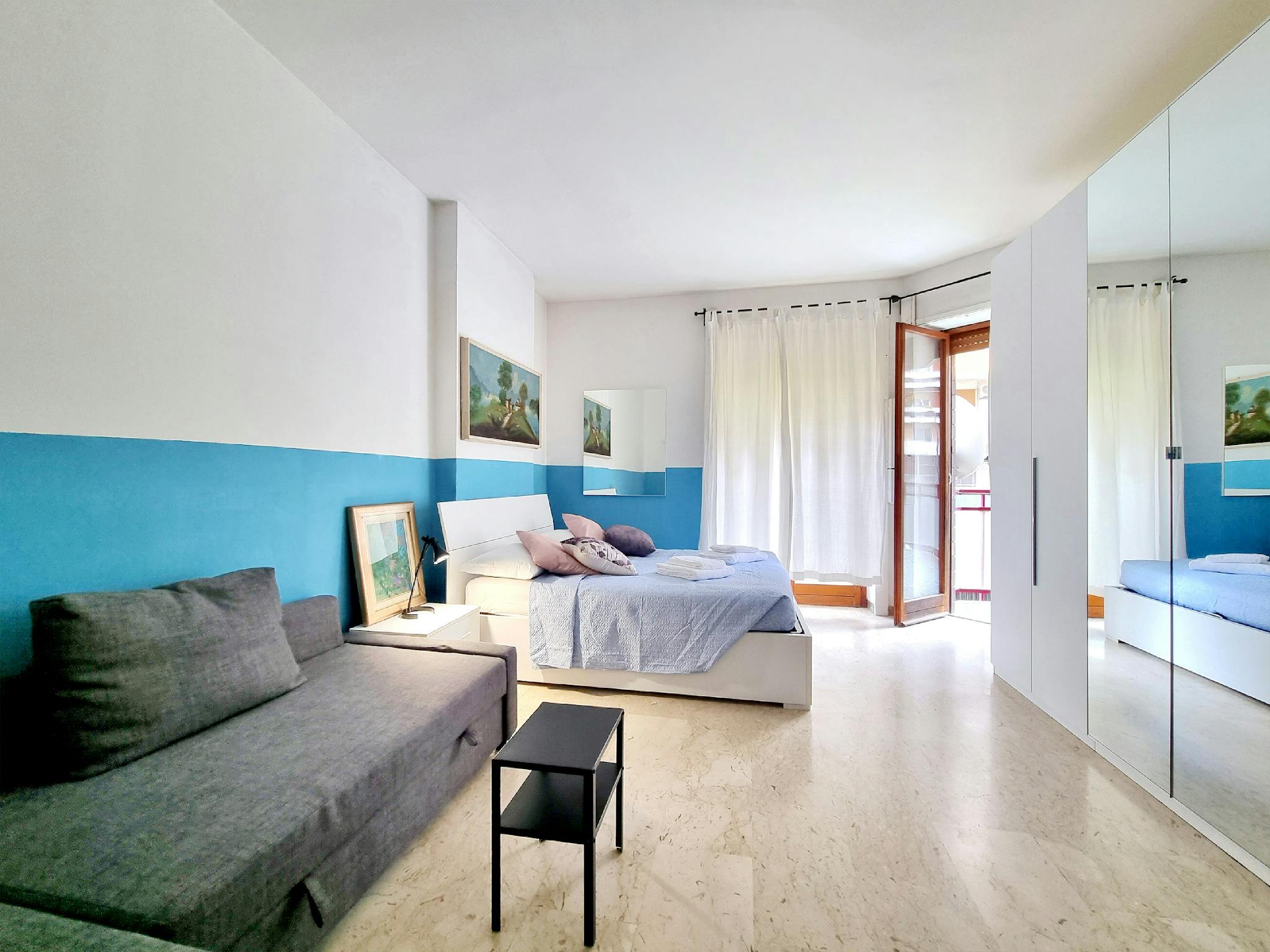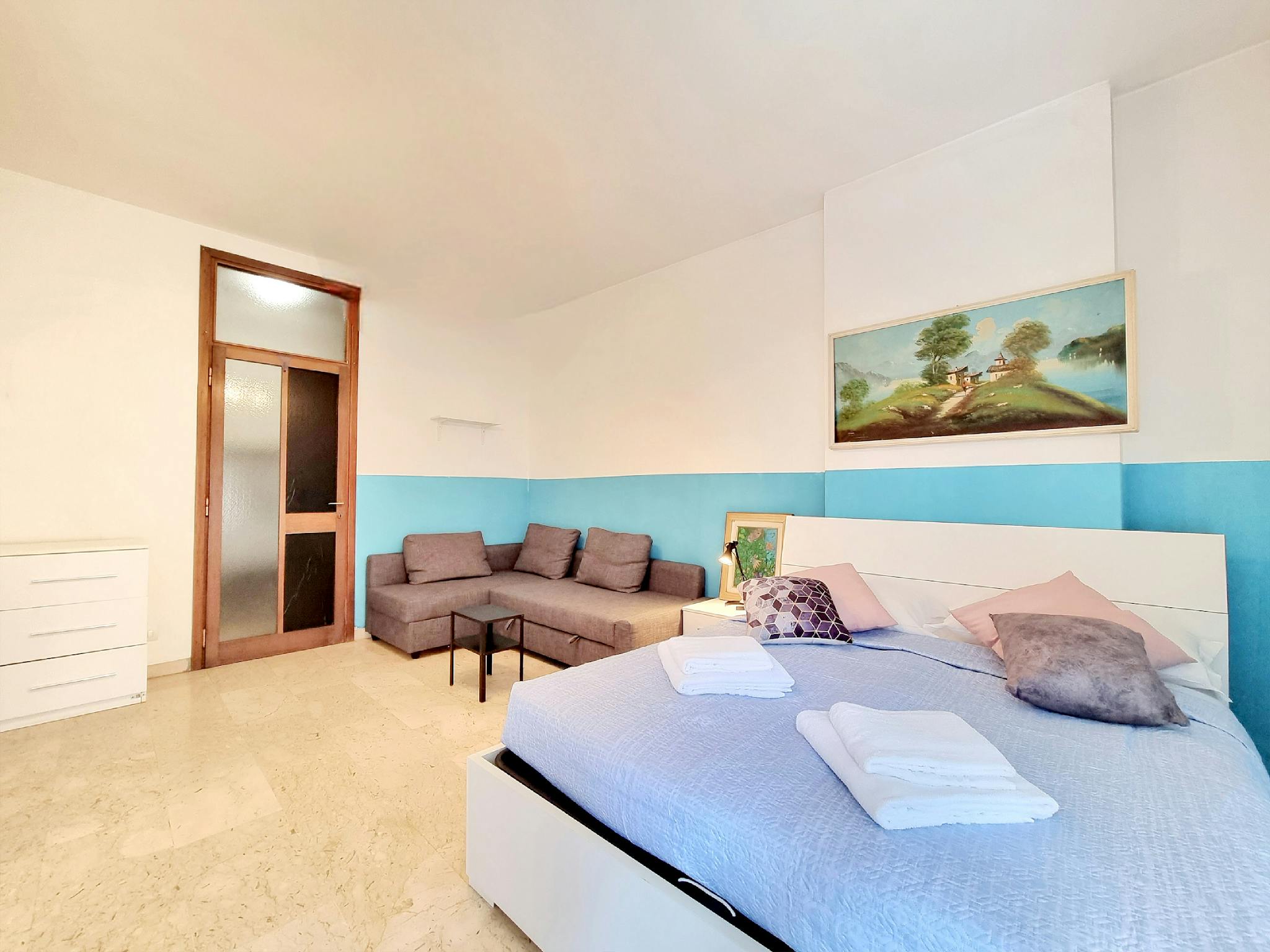 Our spacious and bright three-room apartment with marble floors and contemporary furniture has a true feeling of trendy Milan. Trendy accessories. Quiet despite the central location. Arrangement of the beds: The apartment has a capacity of 6 peop...