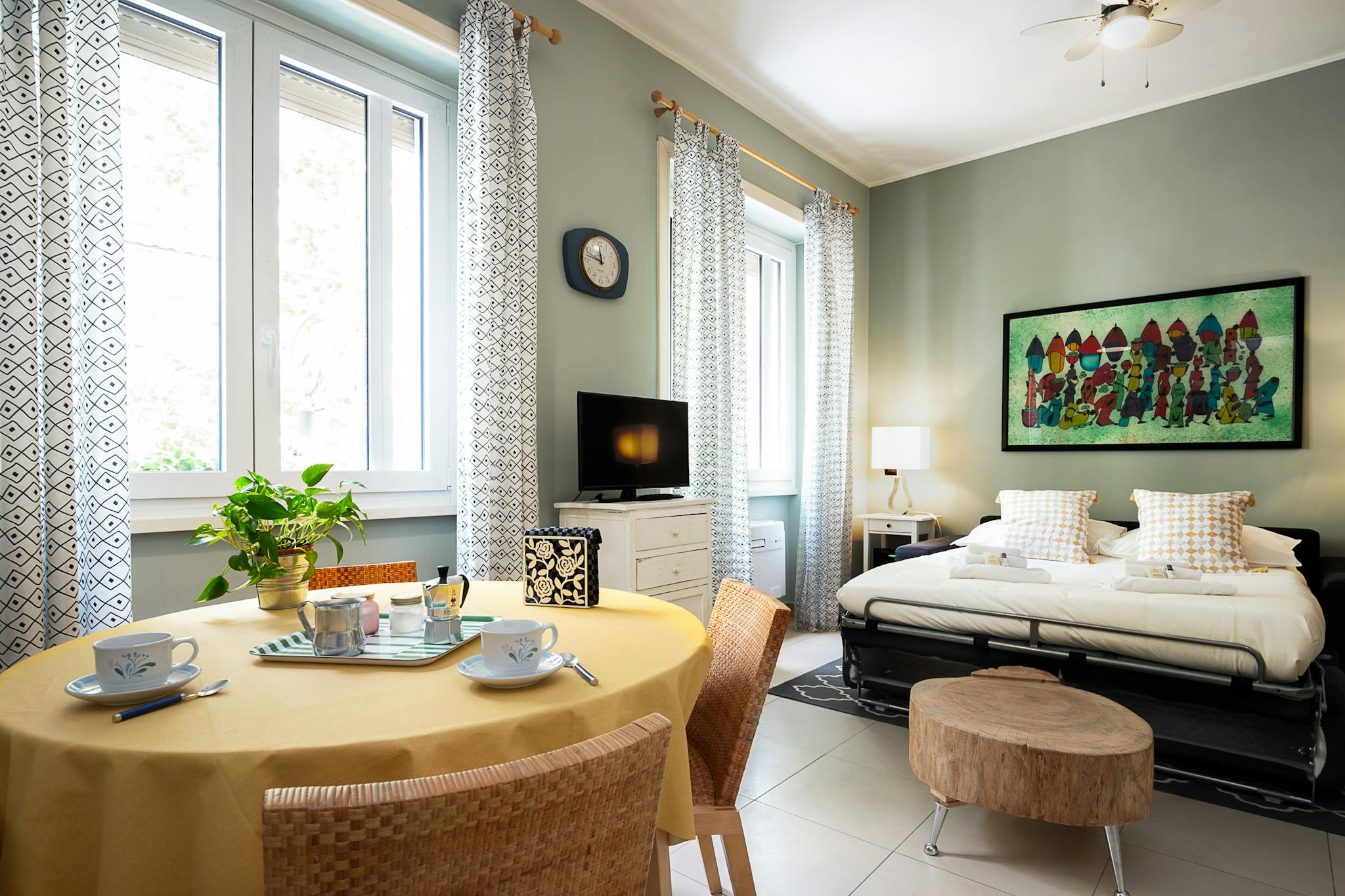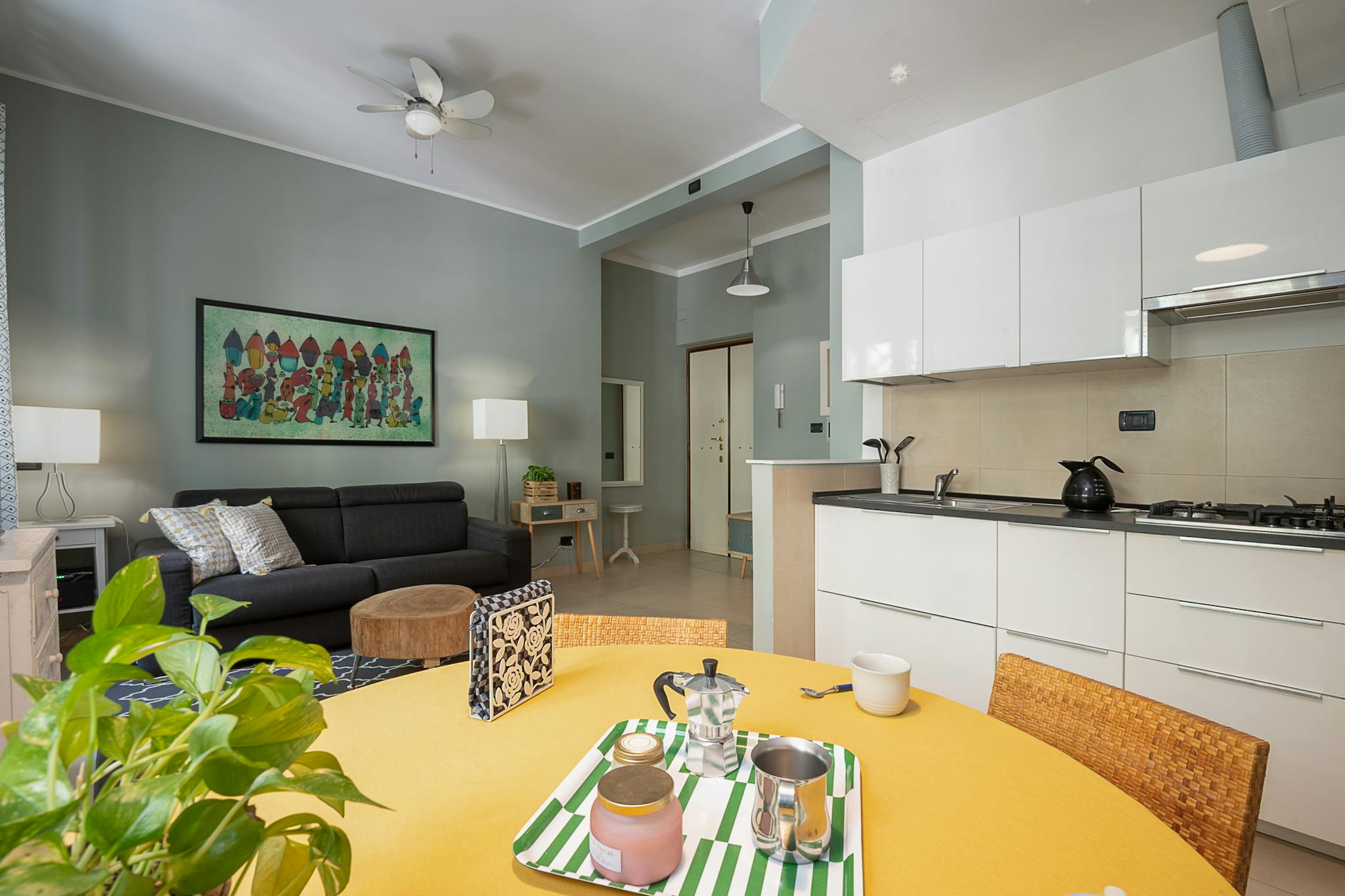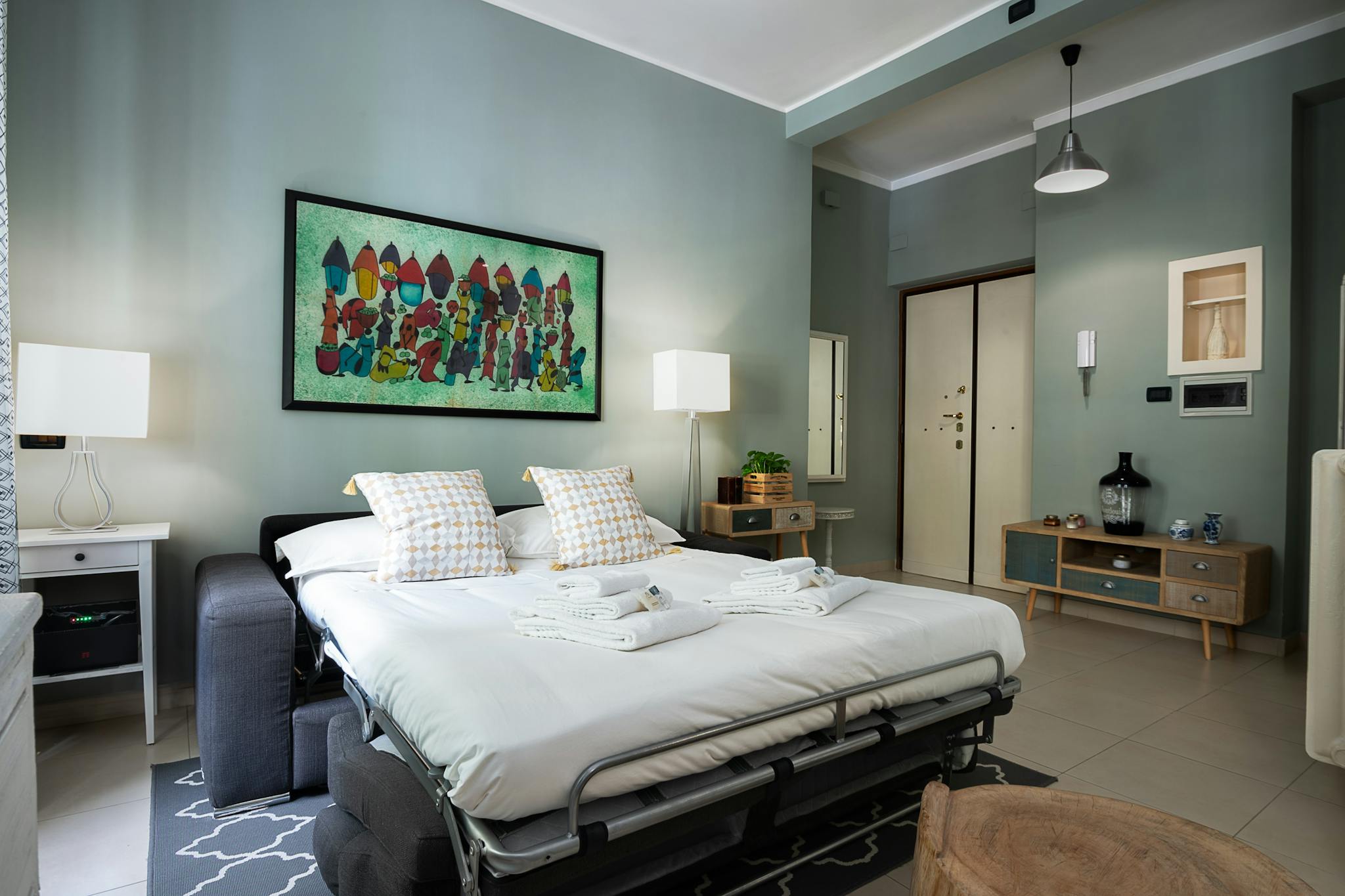 Our spacious and bright three-room apartment with marble floors and contemporary furniture has a true feeling of trendy Milan. Trendy accessories. Quiet despite the central location. Arrangement of the beds: The apartment has a capacity of 6 peop...