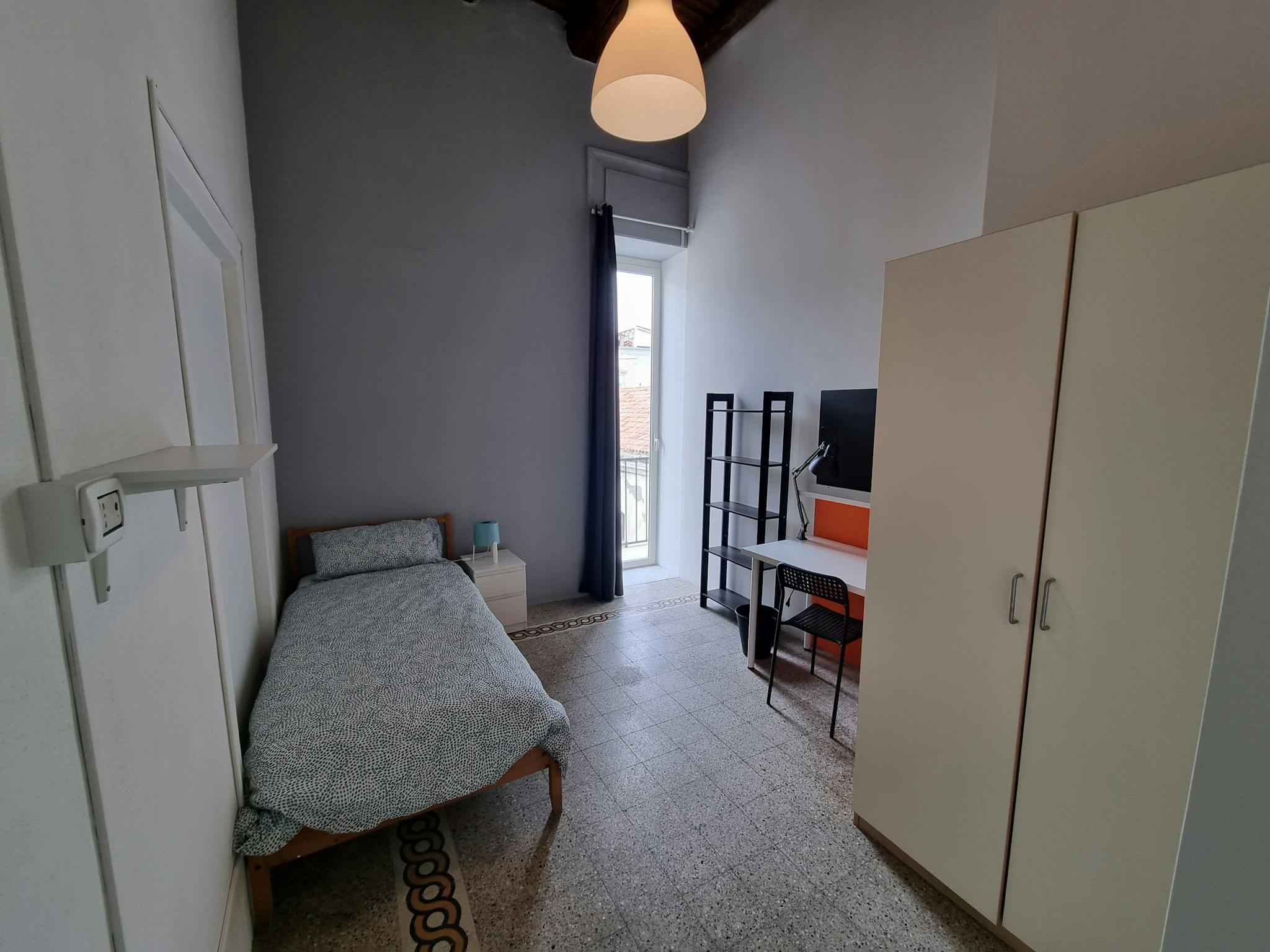 Spacious and modern single room with a balcony in a renovated, modern apartment with six bedrooms, two bathrooms, and a kitchen. The property is located on the fourth floor of a building without an elevator. The approximately 15 square meter room ...