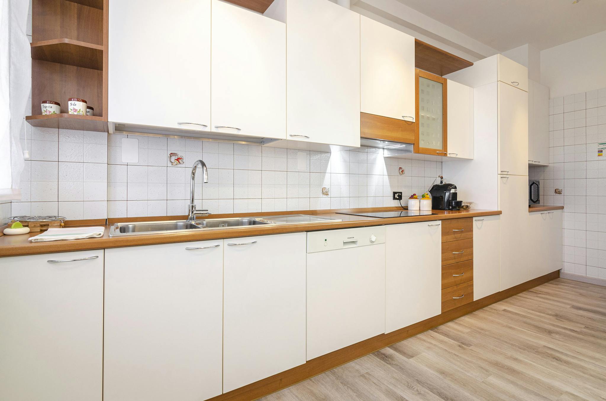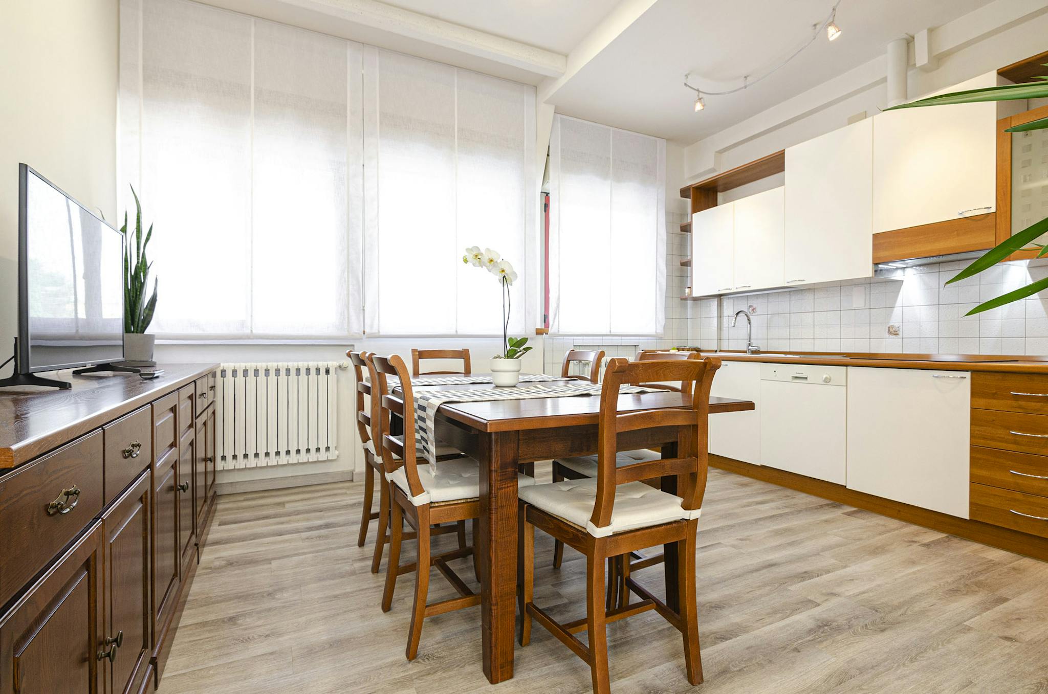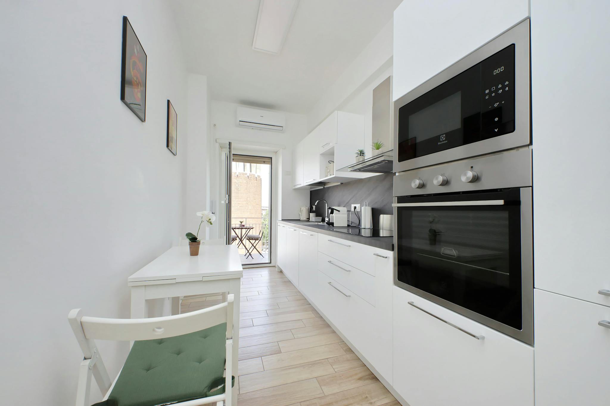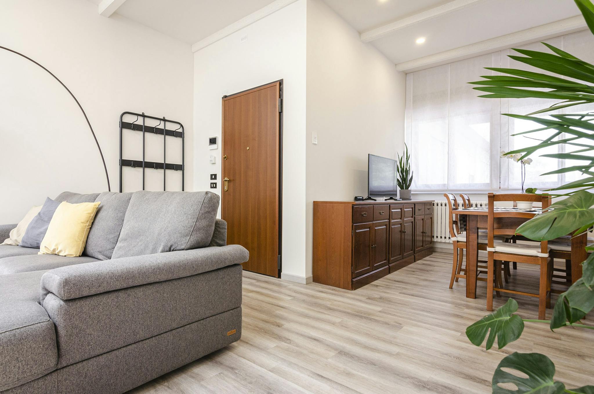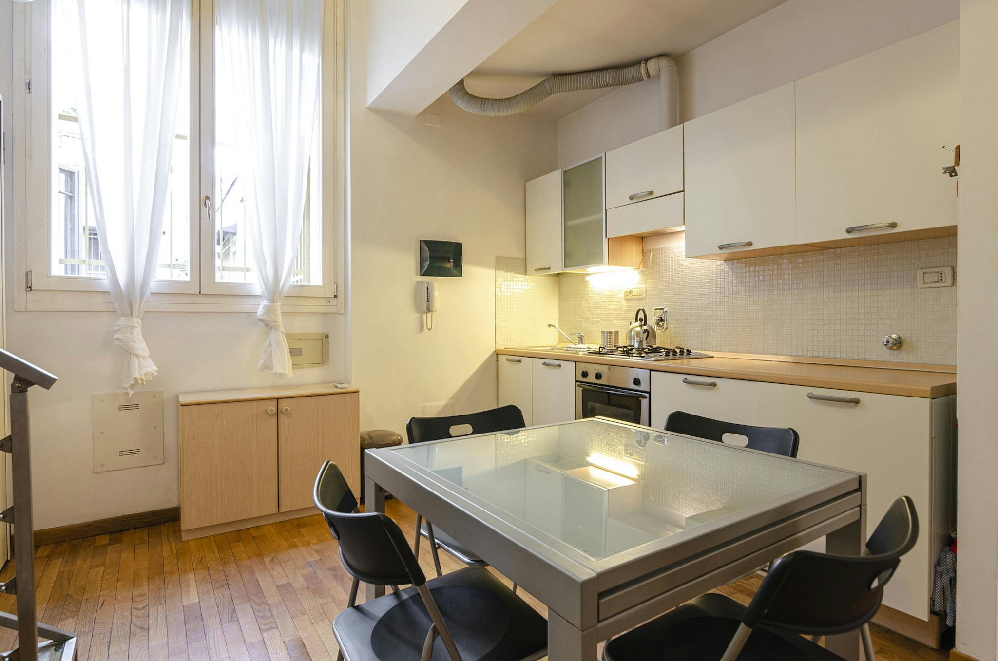 Elegante appartamento frutto di recente ristrutturazione e posto al primo piano di uno stabile situato in zona molto tranquilla e fornito di parcheggio privato. Composto da ingresso su zona giorno con divano letto matrimoniale di fronte ad ampia T...