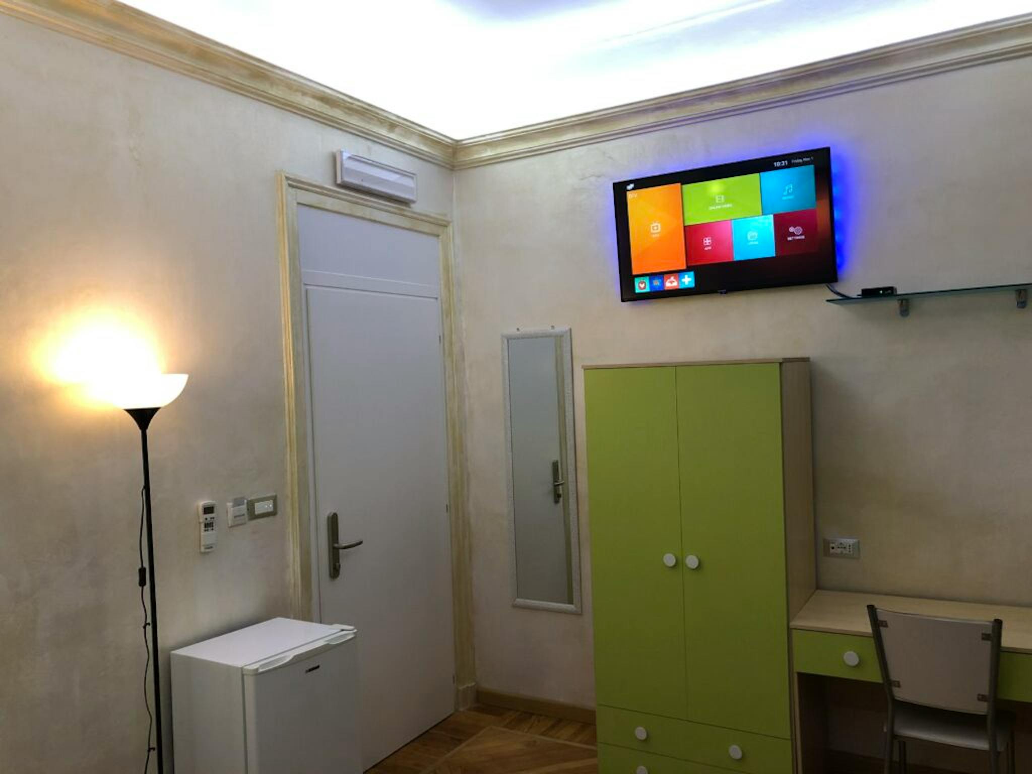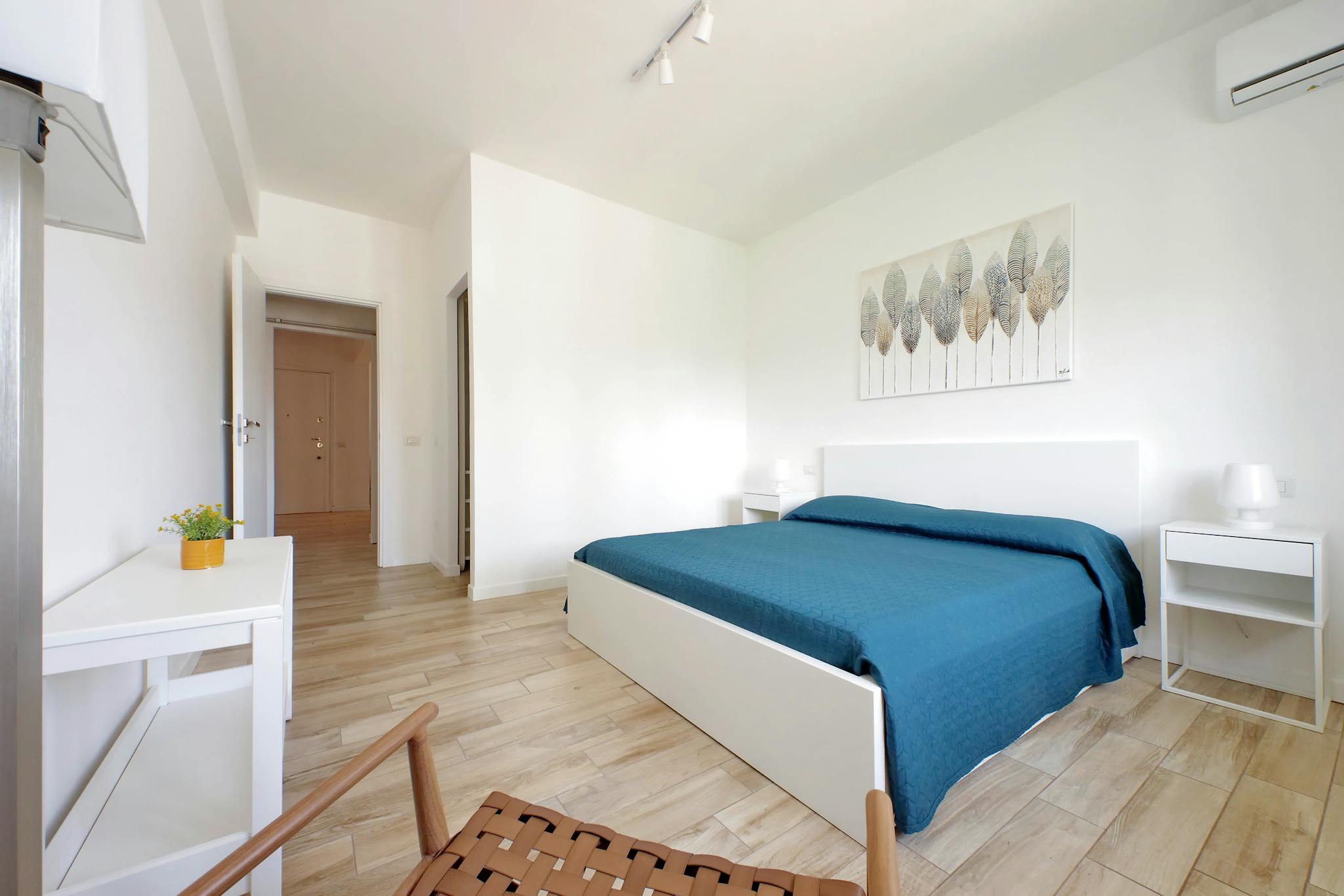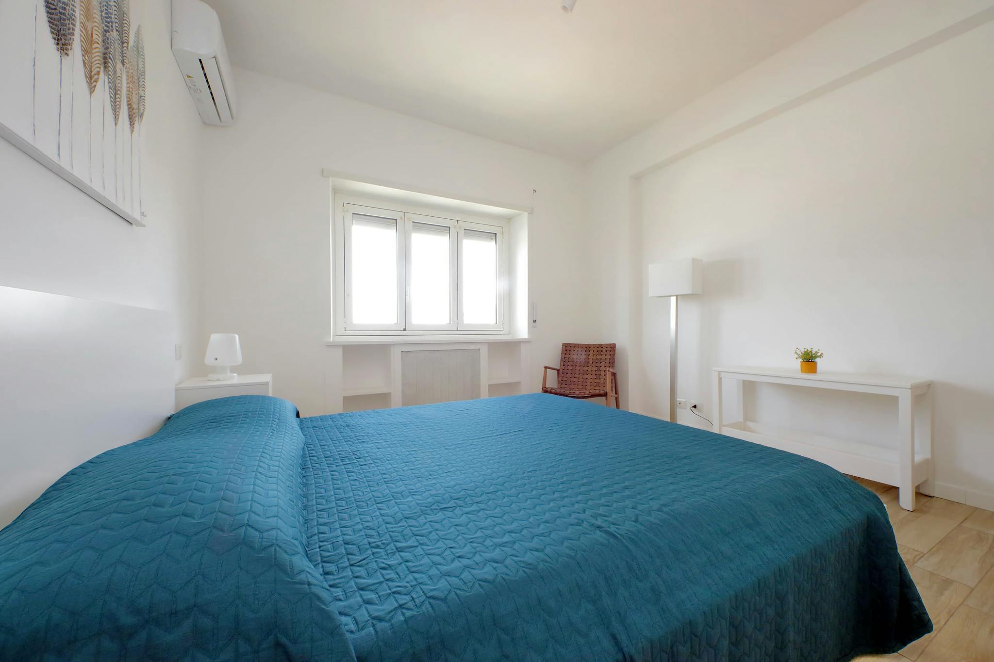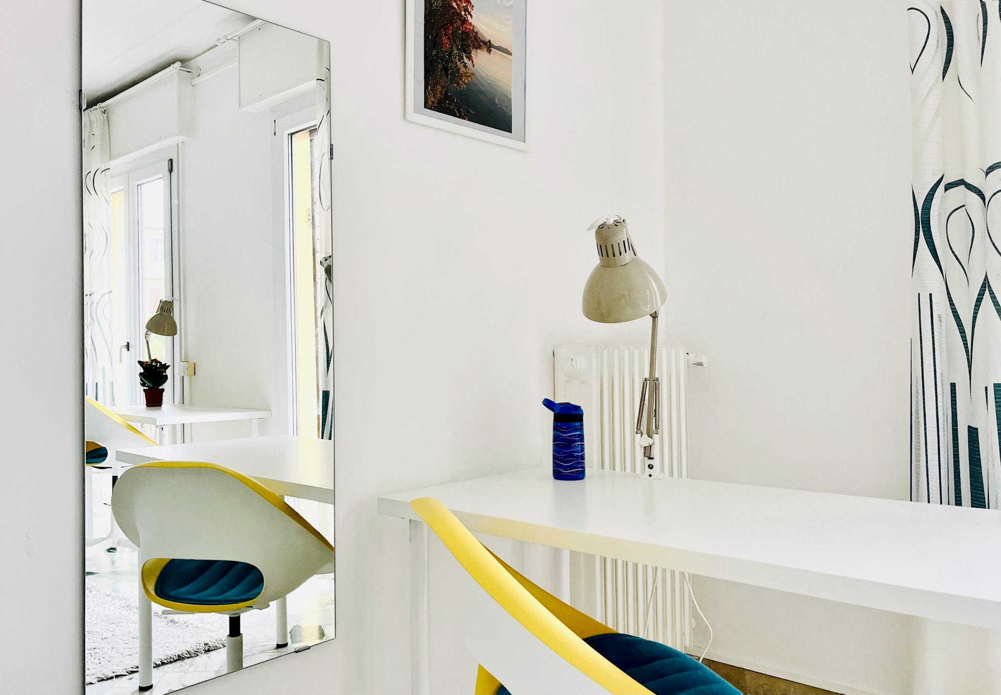 Bright and comfortable room, composed of a bed, a wardrobe, a desk, and a chair. The room is situated in an apartment on the second floor with 2 single bedrooms, one bathroom, and a totally equipped kitchen. The bills for water, gas, electricity...