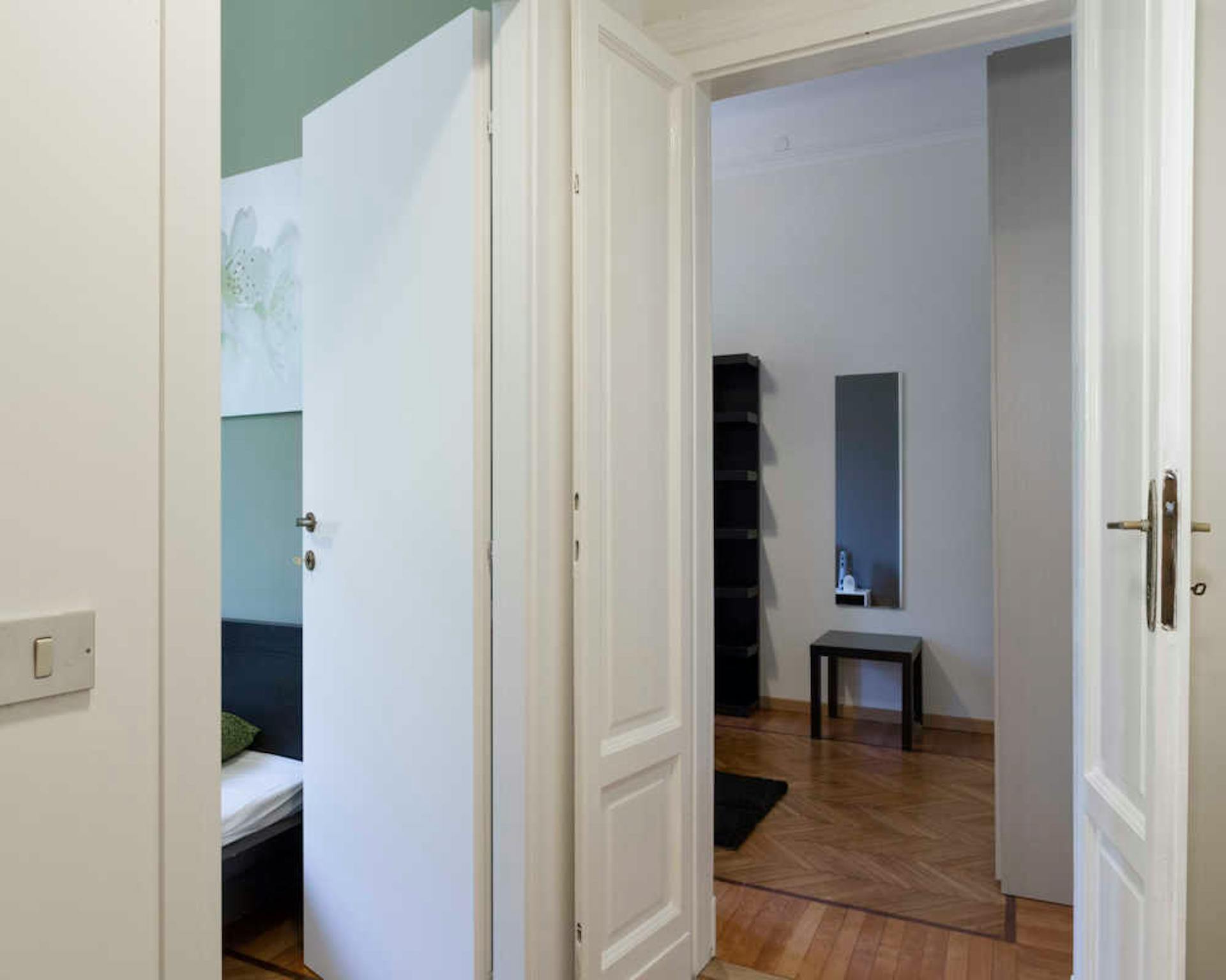 Available from 1 March: large room with double bed for single use (no couples). The flat is shared with two flatmates and consists of an entrance hall, kitchen, two bathrooms and is located in a building with a lift, concierge service and the poss...
