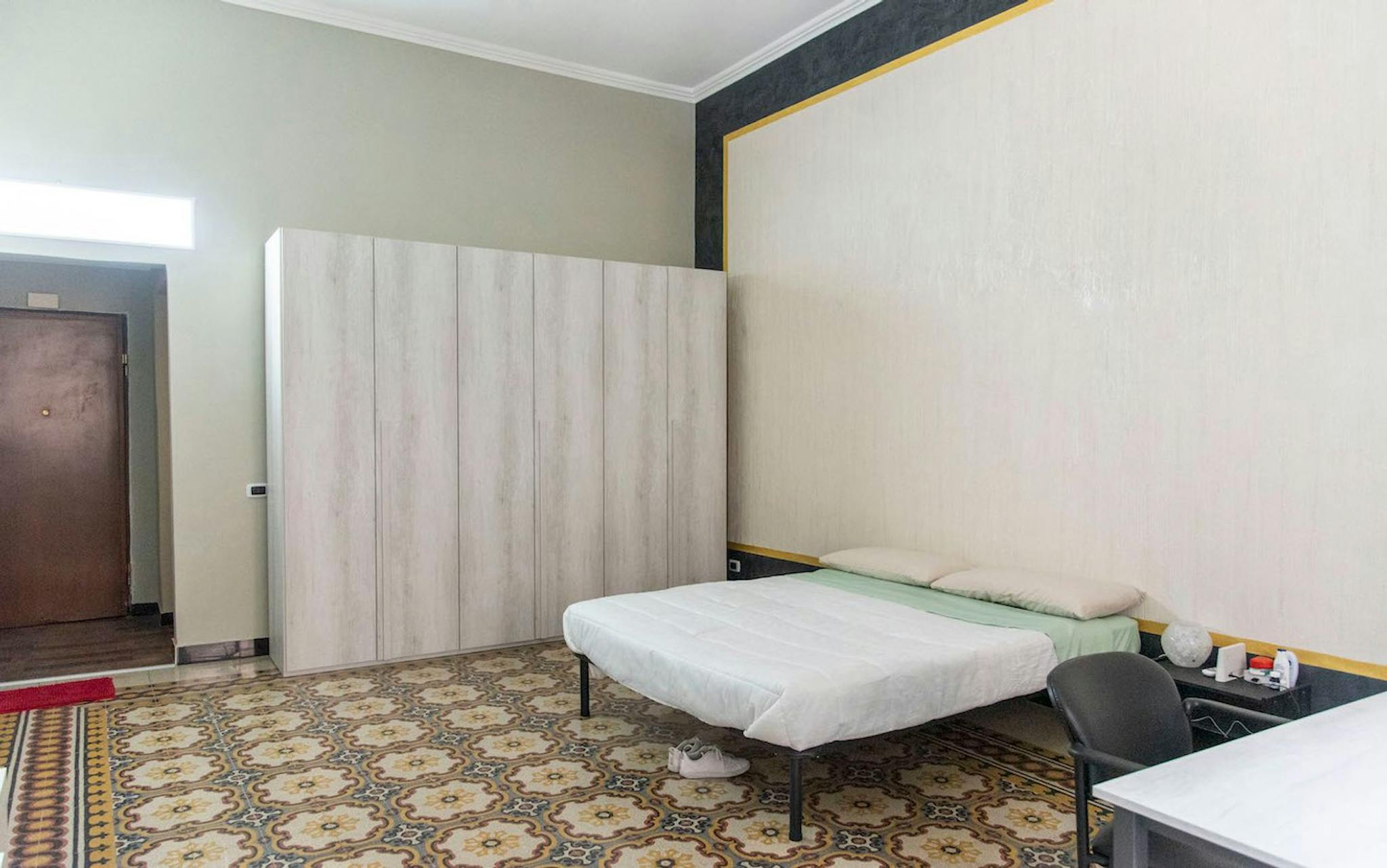 Studio (for single use or for couple) with private bathroom and private kitchen for rent next to La Sapienza University. The apartment is on the 1st floor with lift, it is 5 minutes walking far from Termini, Vittorio Emanuele and Cavour metro stat...