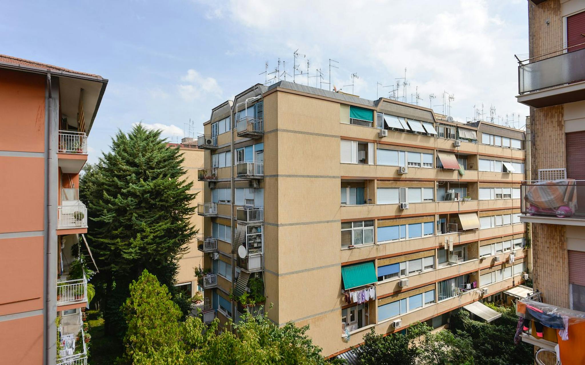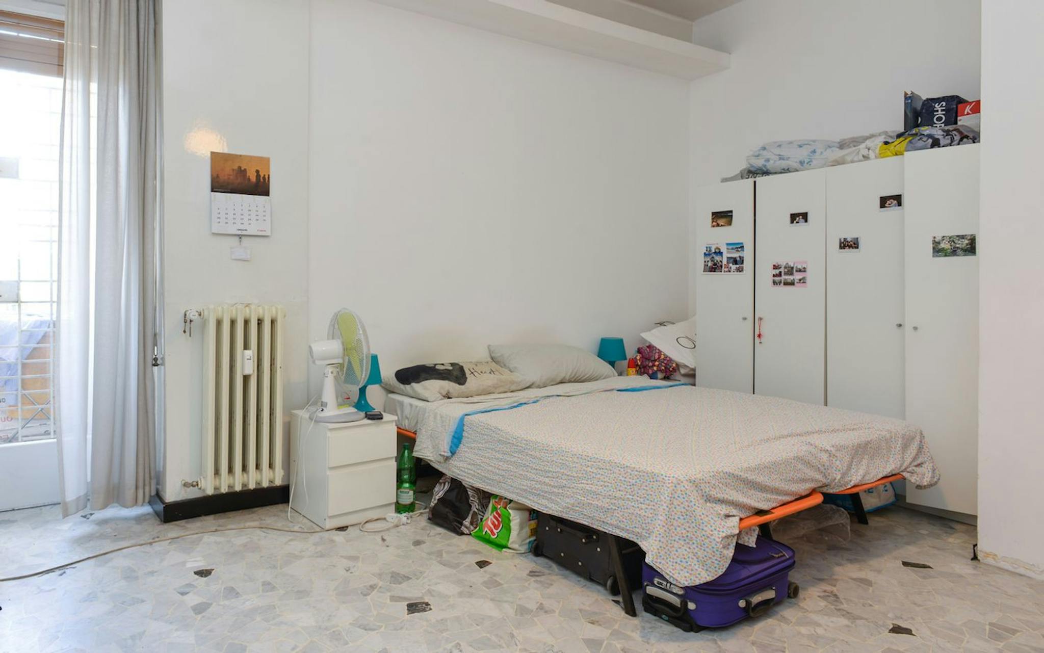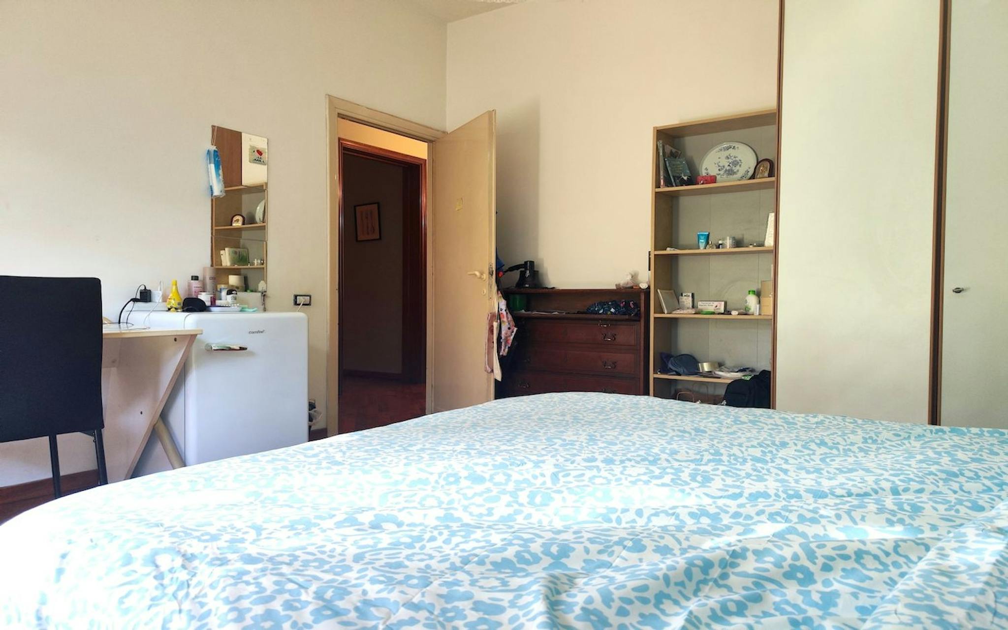Large room with double bed size and private balcony for rent in a 5 (hidden)/young workers apartment with 2 bathrooms in Piazza Bologna, near La Sapienza University. The apartment is on the 2nd floor with lift, it is 4 minutes walking far from Pia...