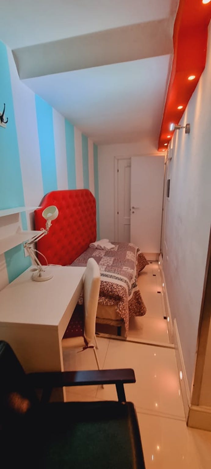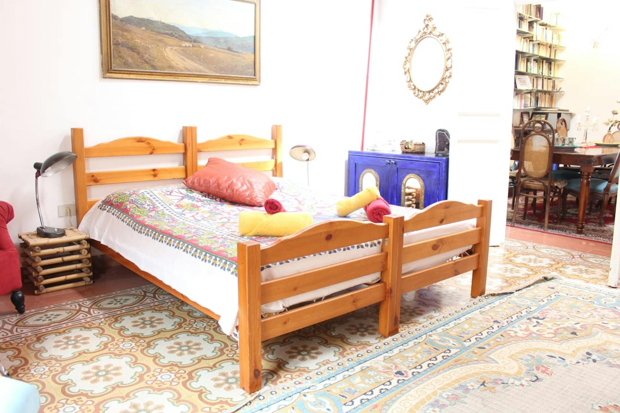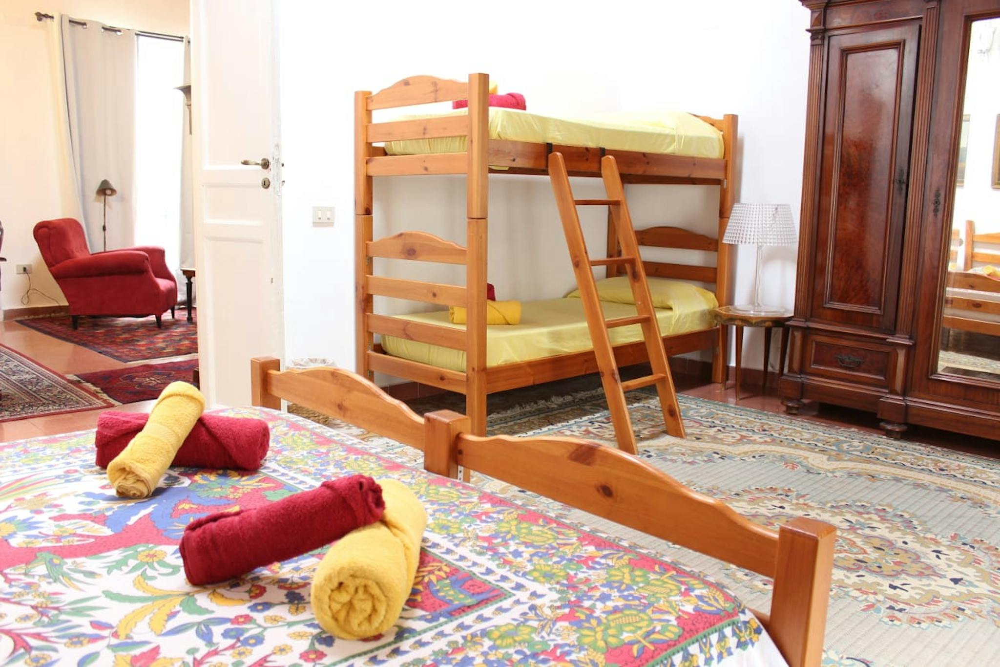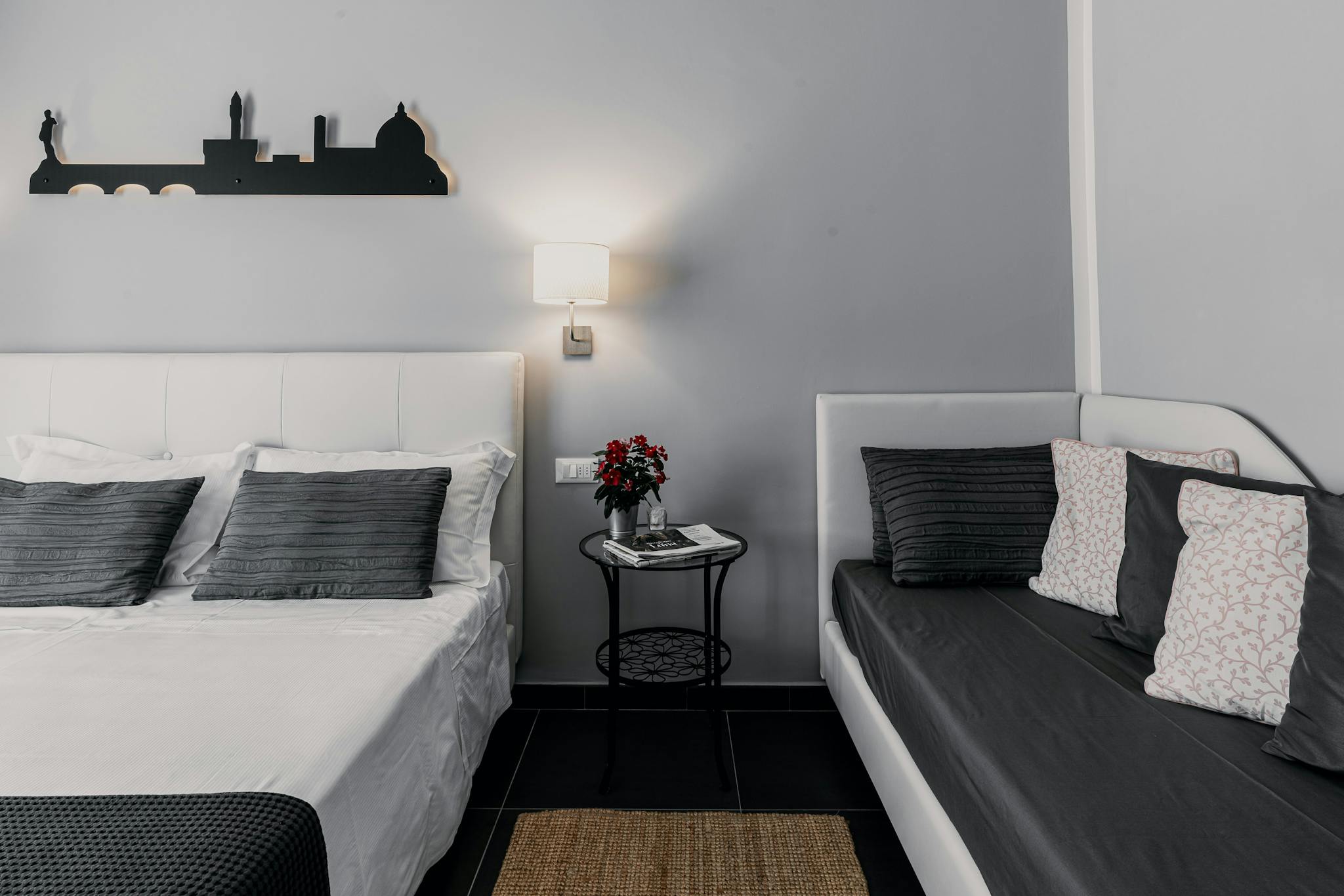 Hello there, I am renting a room in Florence! It has a double bed (or two singles), plus a single bed, bedside tables, open wardrobe, desk, flat screen satellite TV, mini bar, safe, electric kettle with coffee and tea, suitcase rest, air conditio...