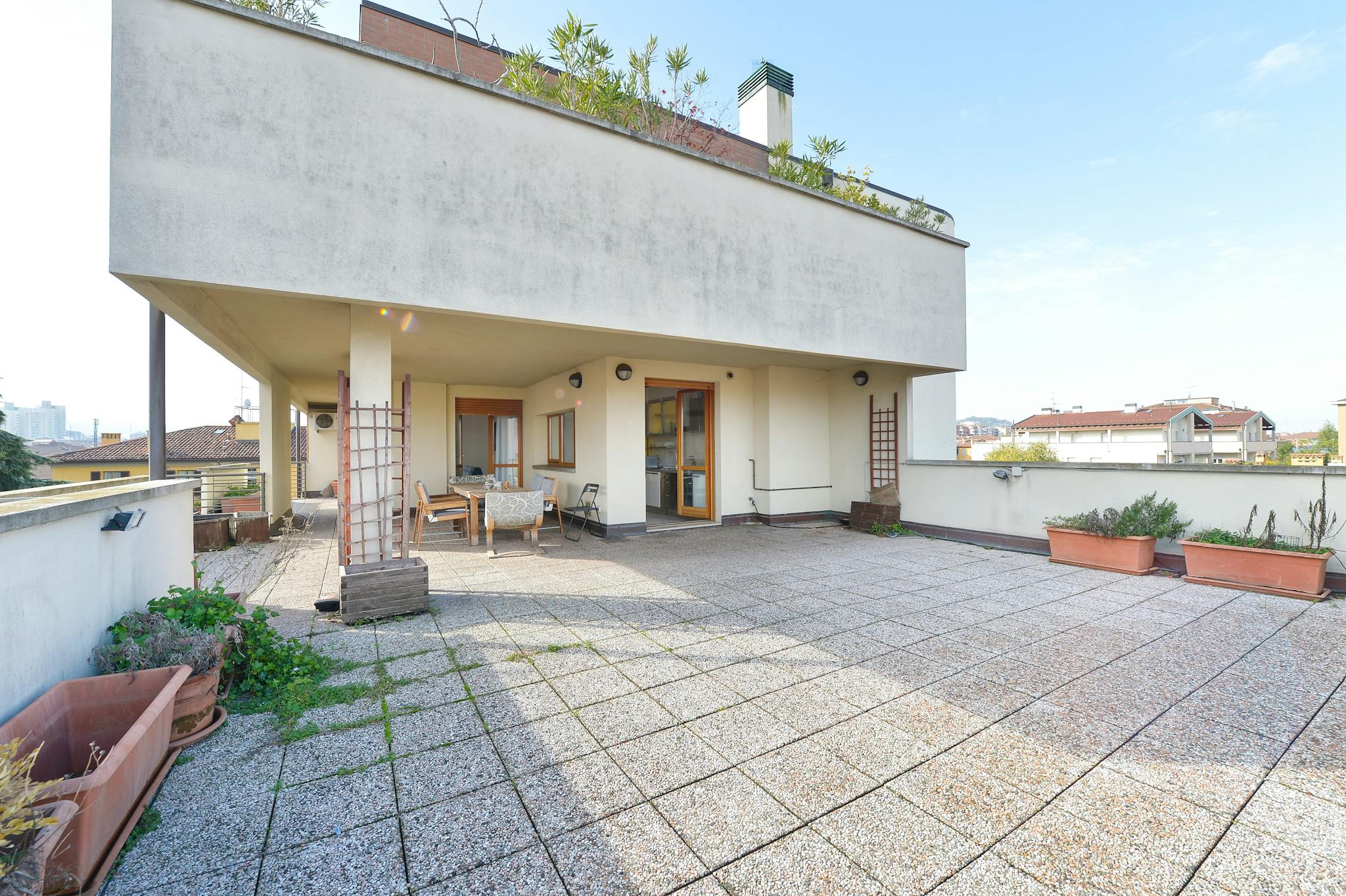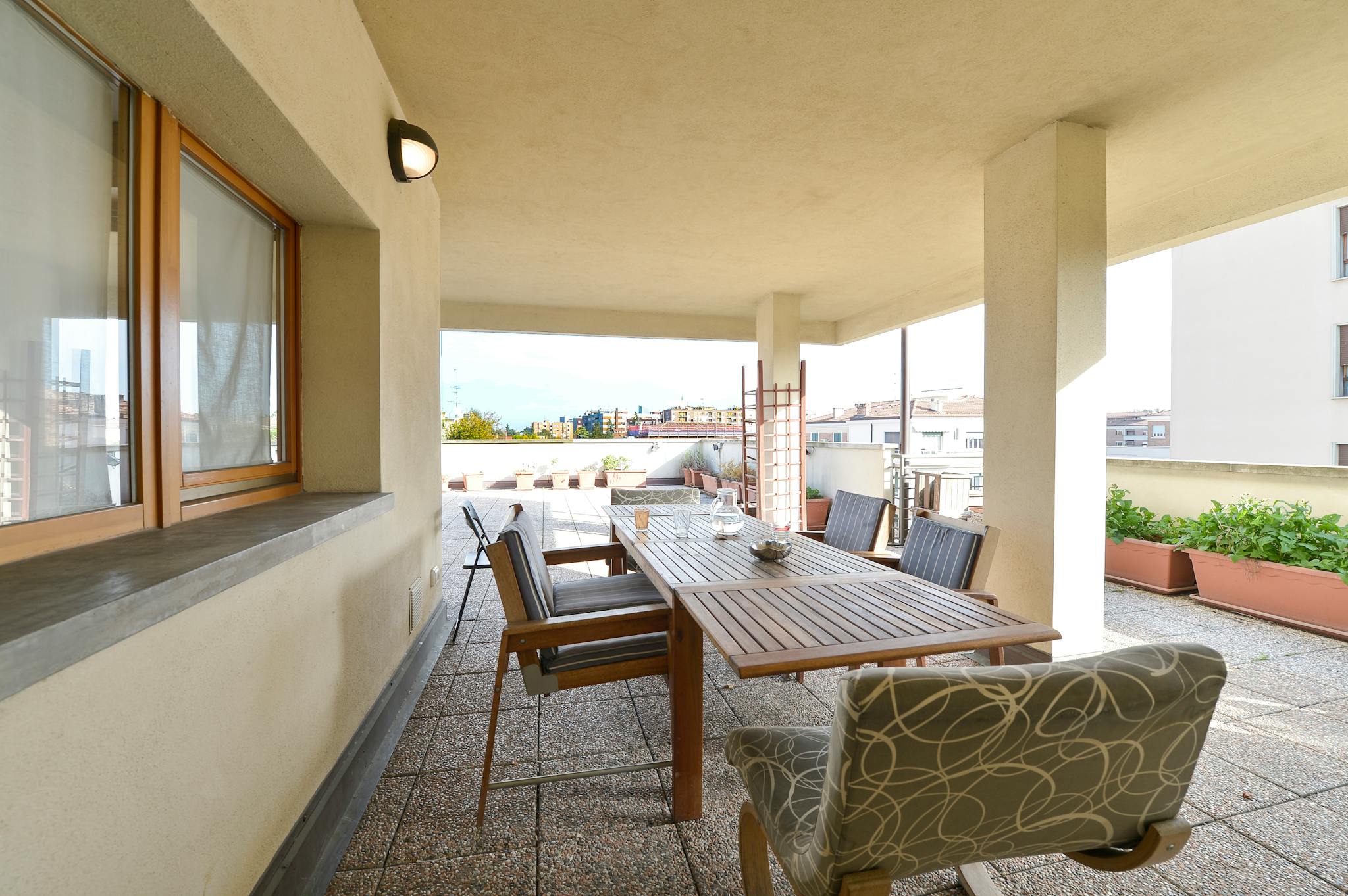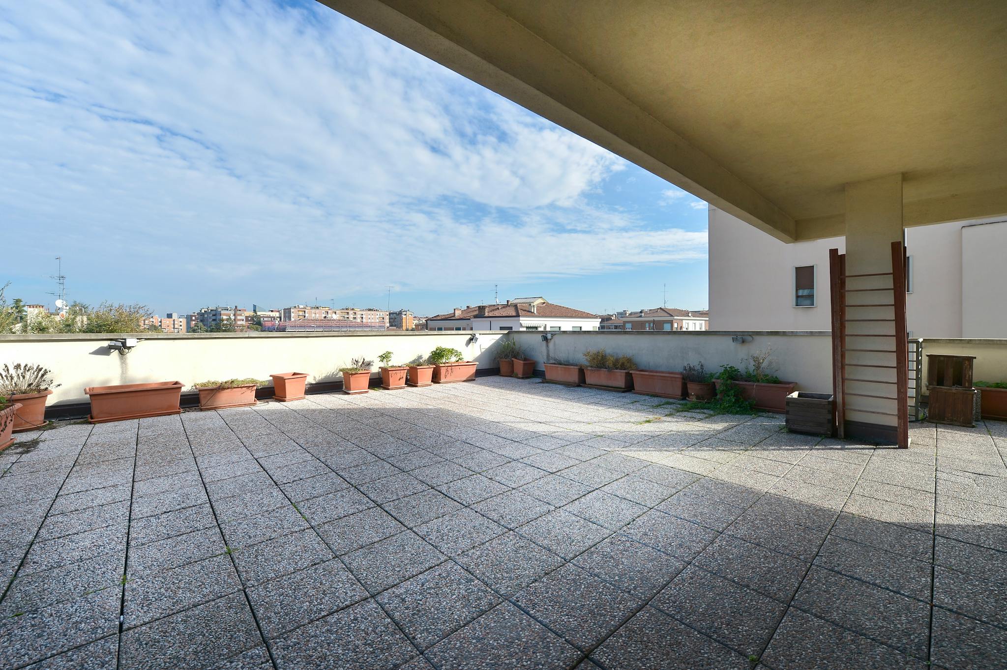 Spacious and bright two bedroom two bathroom flat in Bologna with a 110 sqm terrace (with BBQ area), located on the fourth floor of a modern stately building (with elevator), close to Sant'Orsola Hospital and Giardini Margherita. Guests have ac...