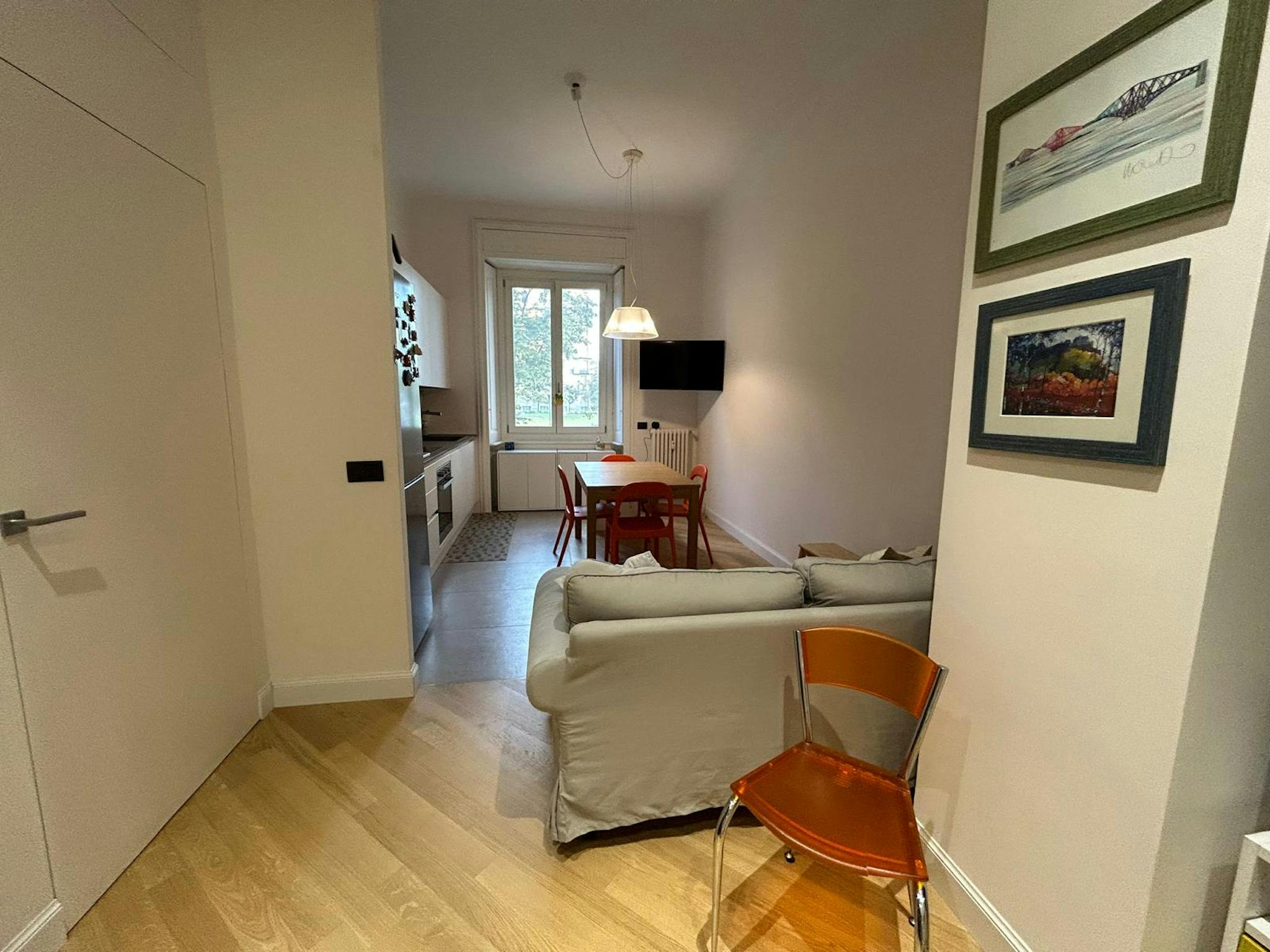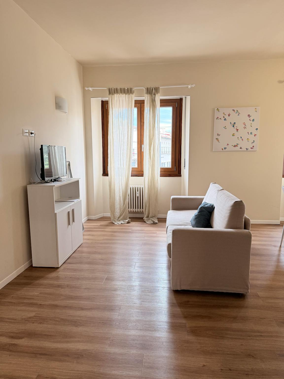 New brand apartment located in oltrarno on the first floor. There is one double bedroom and a single bed room. One bathroom and a living area with tv and a small terrace. The kitchen is fully equipped . AC, wifi,washing machine and smart TV . Perf...