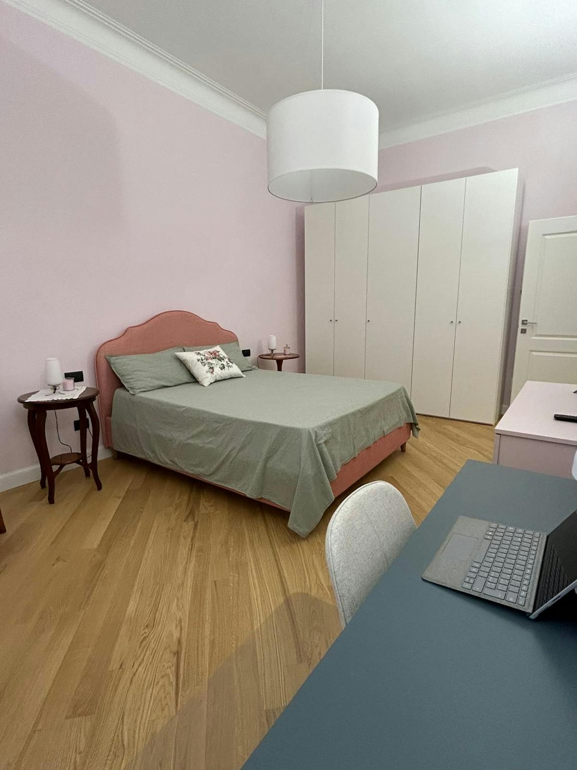 Spacious rooms with private bathrooms for rent in a newly renovated apartment, furnished with a large wardrobe, chest of drawers, a desk with a wheelchair, a toilet, and a double bed, TV, and WiFi. This renovated shared apartment offers all the co...