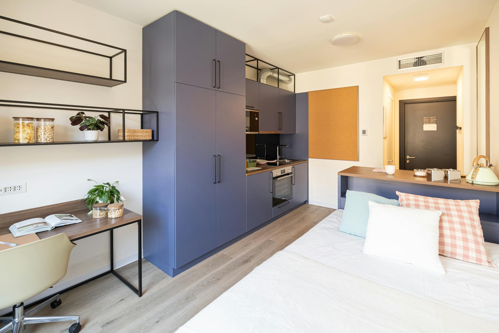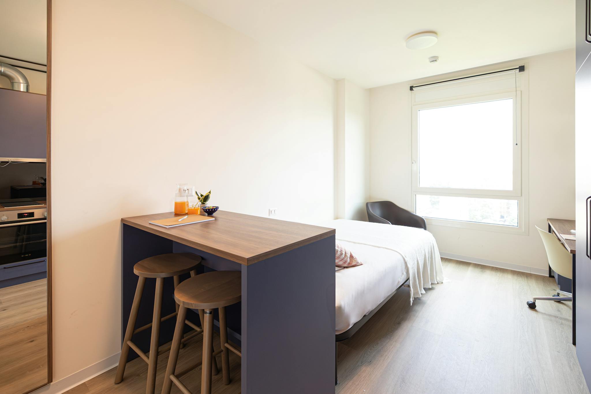 Smart Studio is an apartment unit of approximately 19 square metres in total, with a private bathroom and kitchen. Features: - The ideal solution for your study years - Floor: 0°-3° What will you find in the room? - 120x200 cm bed - Desk with st...
