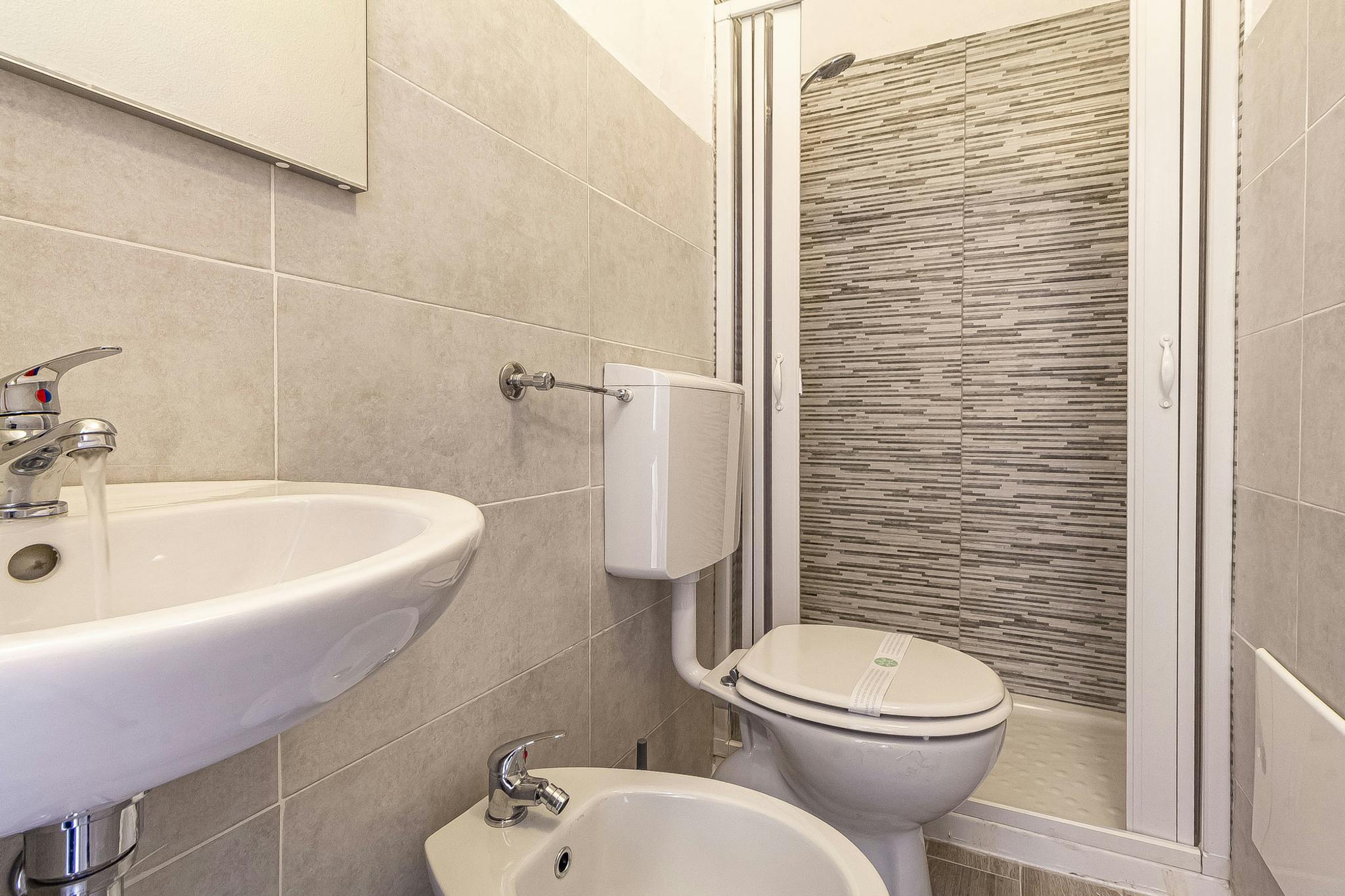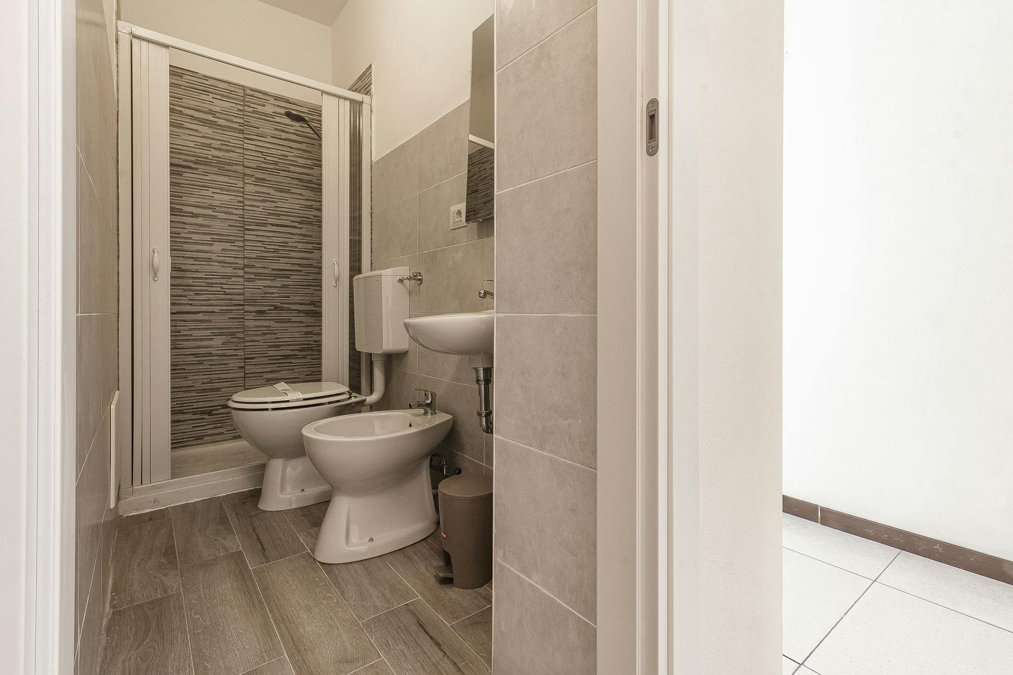 Grazioso appartamento situato al primo piano (no ascensore) e composto da ingresso su corridoio al quale si accede a bagno con doccia e lavatrice, cucina completamente attrezzata (forno elettrico, forno microonde, frigorifero, freezer, etc.), ampi...