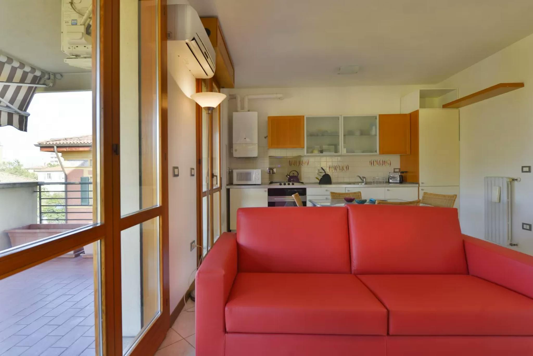 ????Apartment - Via Emilia Levante - Bologna???? A wonderful, 45 m2 open layout property in the immediate outskirts of Bologna, with a large 30 m2 terrace, housed on the third floor of a stately building serviced by elevator, and located in the p...