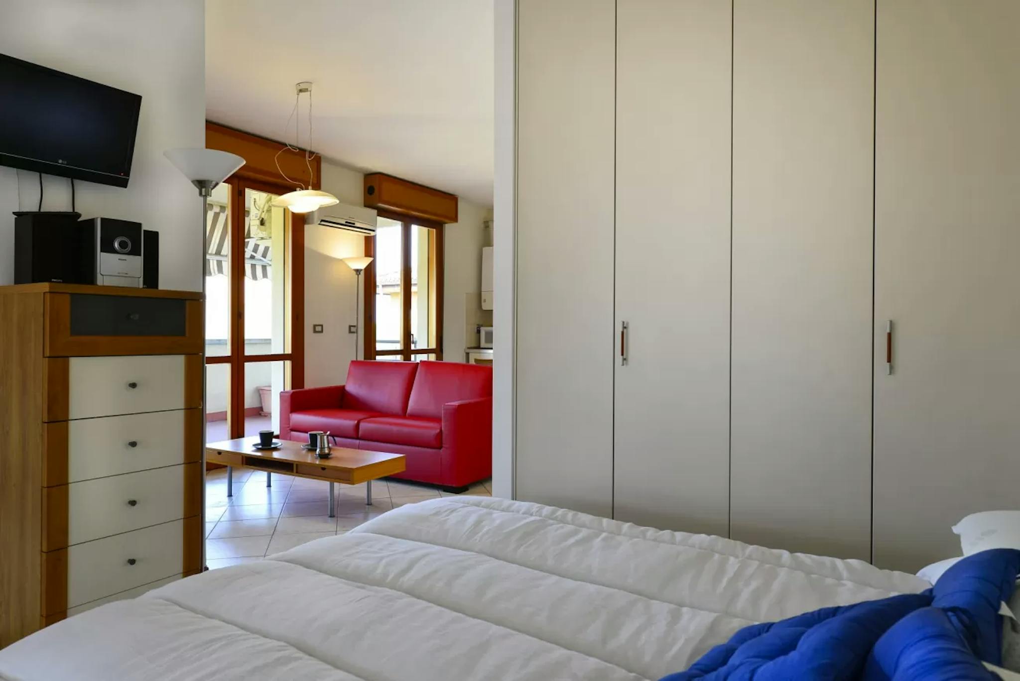 ????Apartment - Via Saffi - Bologna???? Silent and very sunny 90 sqm 2 bedrooms 2 bathrooms apartment, with a lovely balcony overlooking the old Bologna, located on the 5th floor (with elevator) of a modern and newly constructed building nestled ...