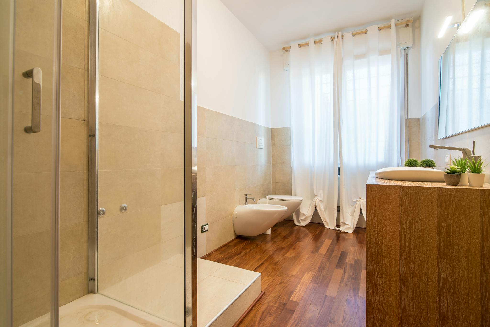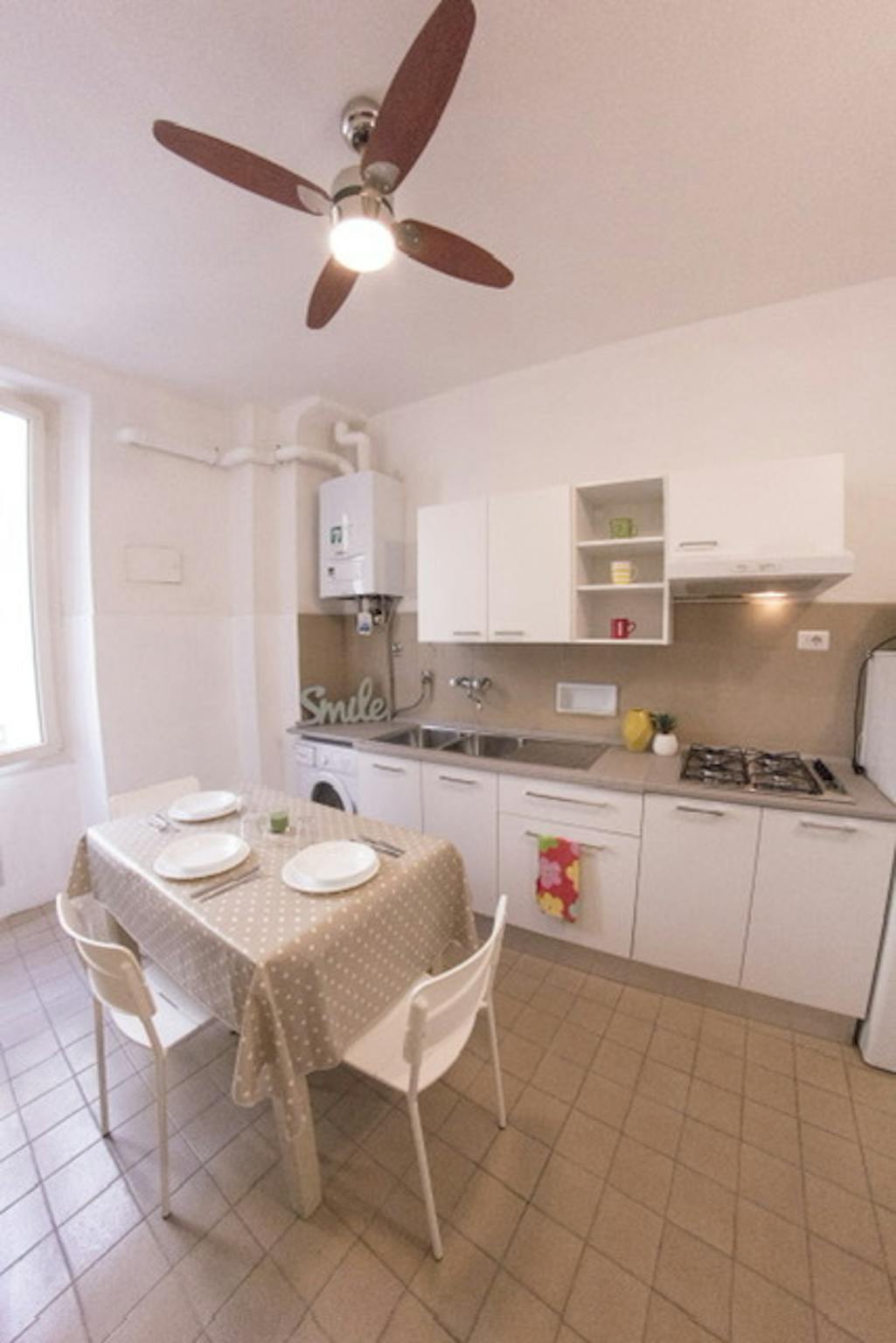The apartment has just been renovated and consists of 7 comfortable Single Rooms, 2 Bathrooms with Shower and a very large fully equipped Kitchen/Living Room Open space. The furnishings are in a Modern Minimal style and every room is studied in de...