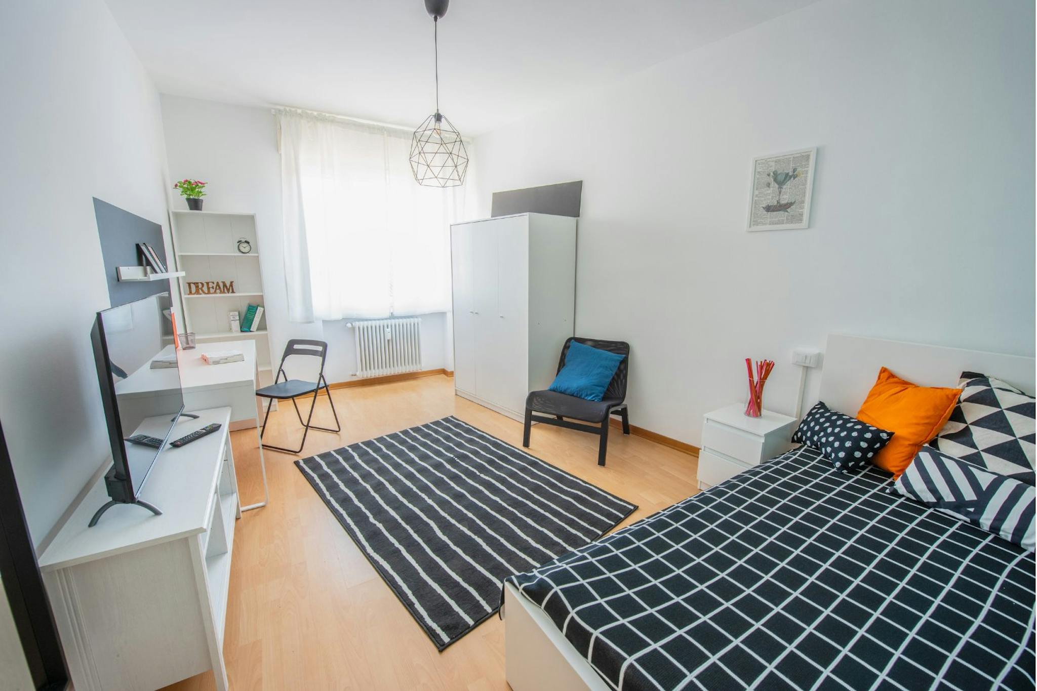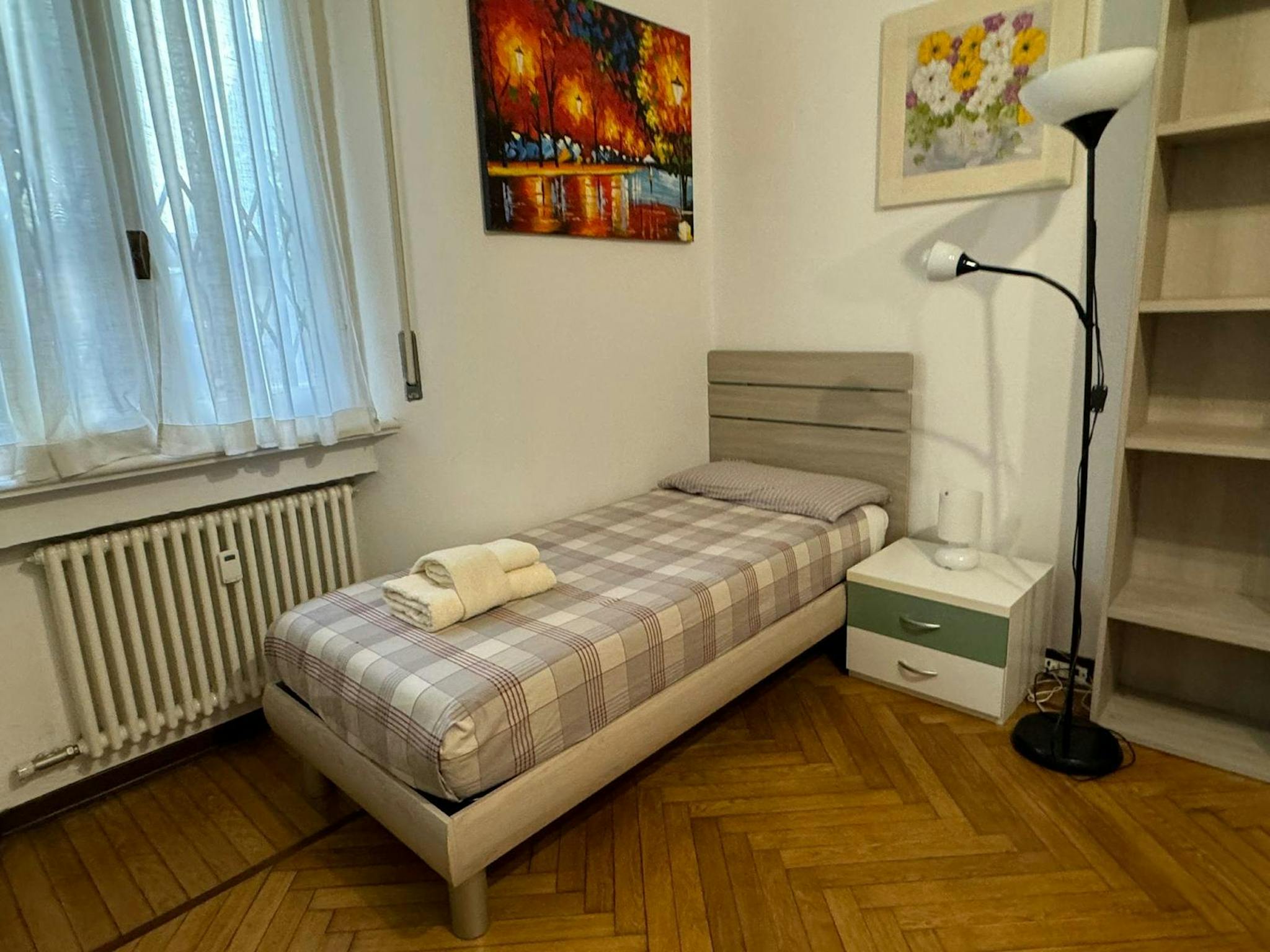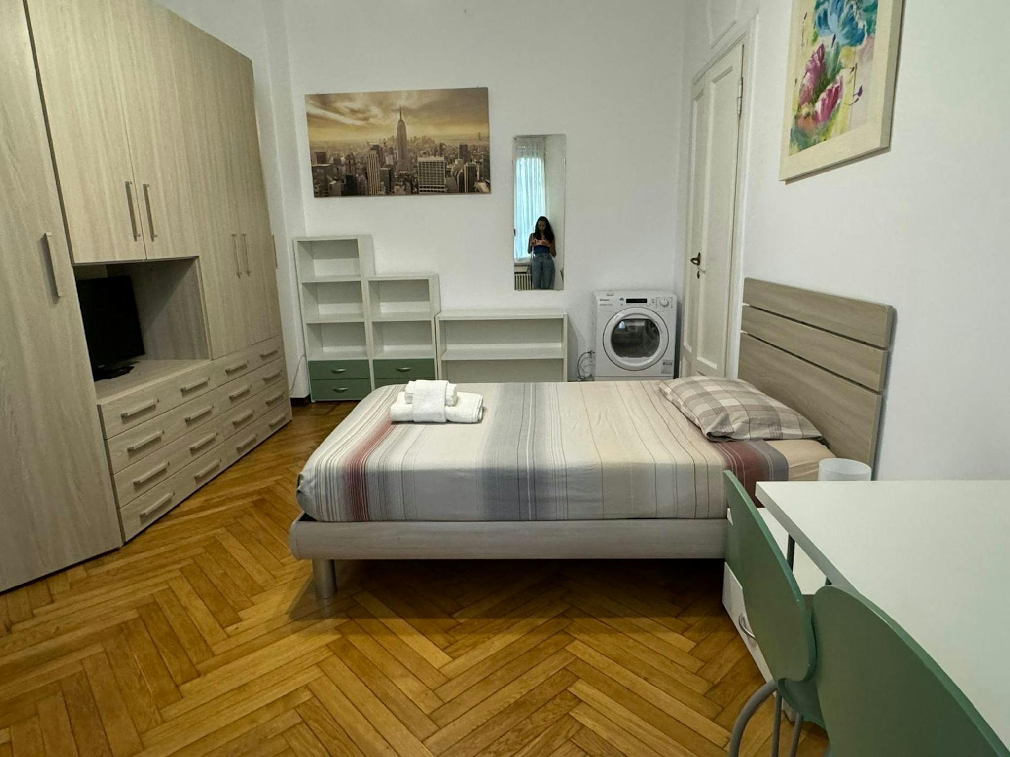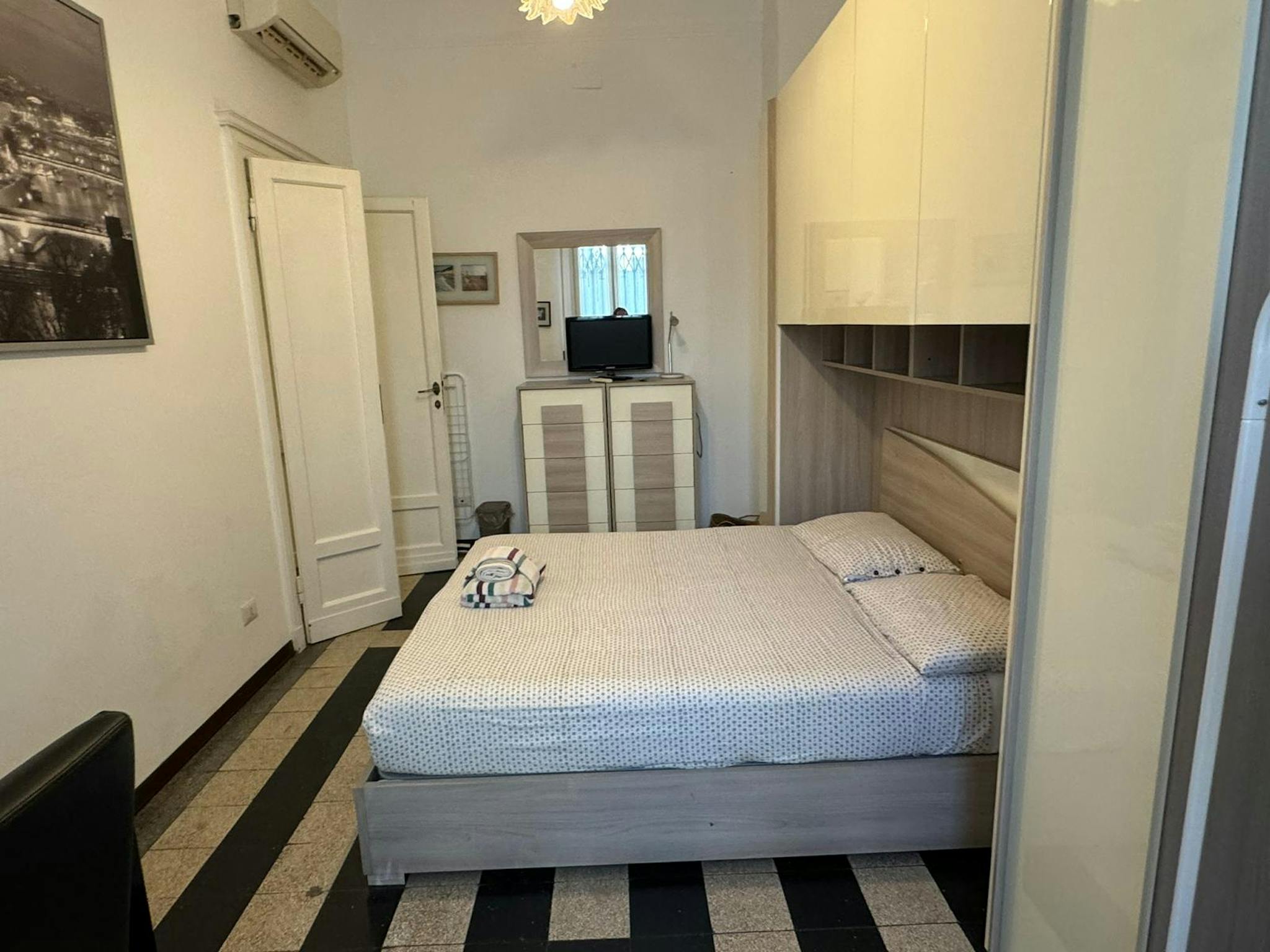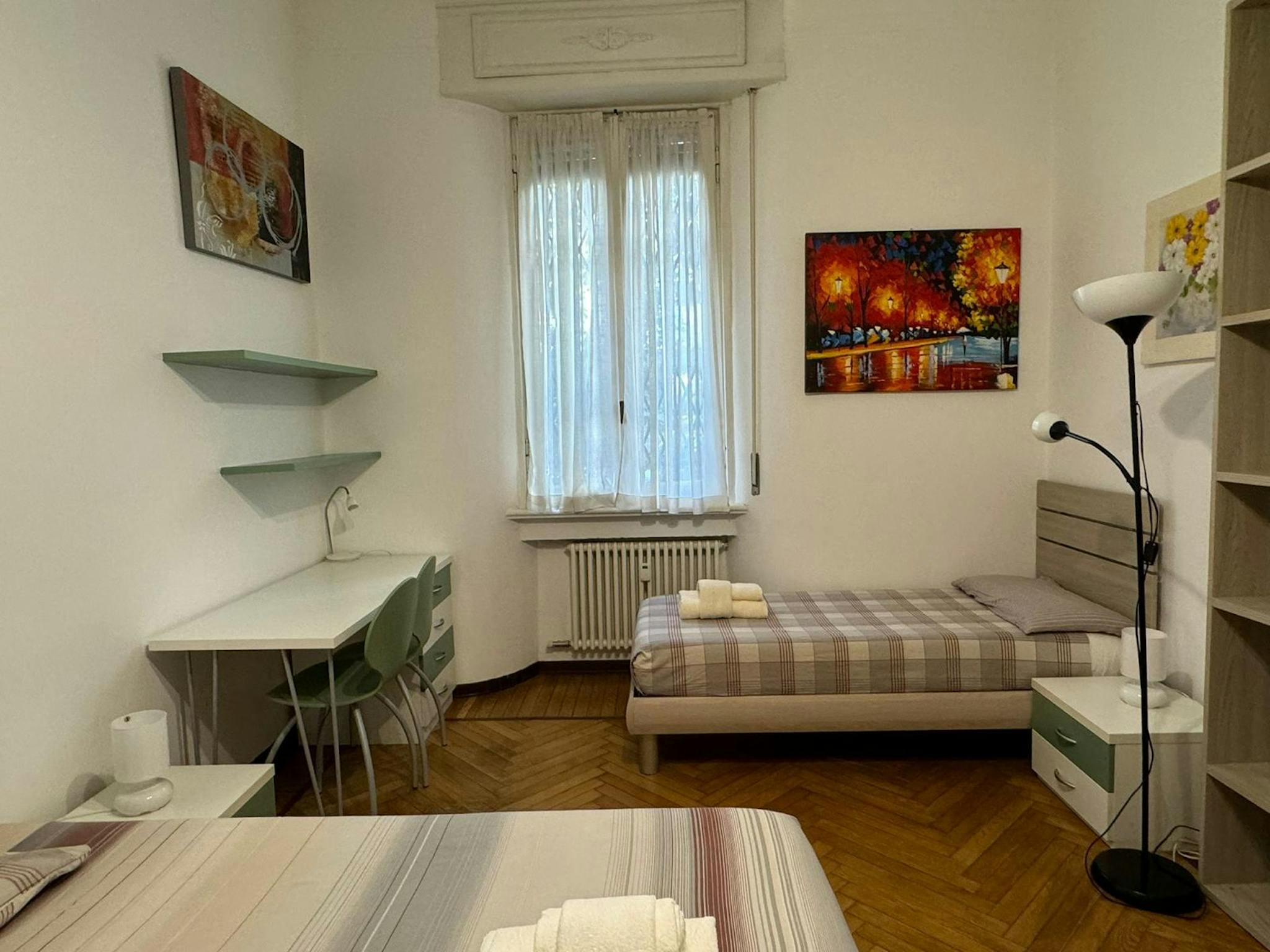Apartment Description Apartment Milan with 2 bedrooms. Just totally renovated, modern brand-new furniture. From the hall, on the right you have a large bedroom with a single bed and a French bed (cm 140 wide). A desk and a wardrobe. Wooden floor....