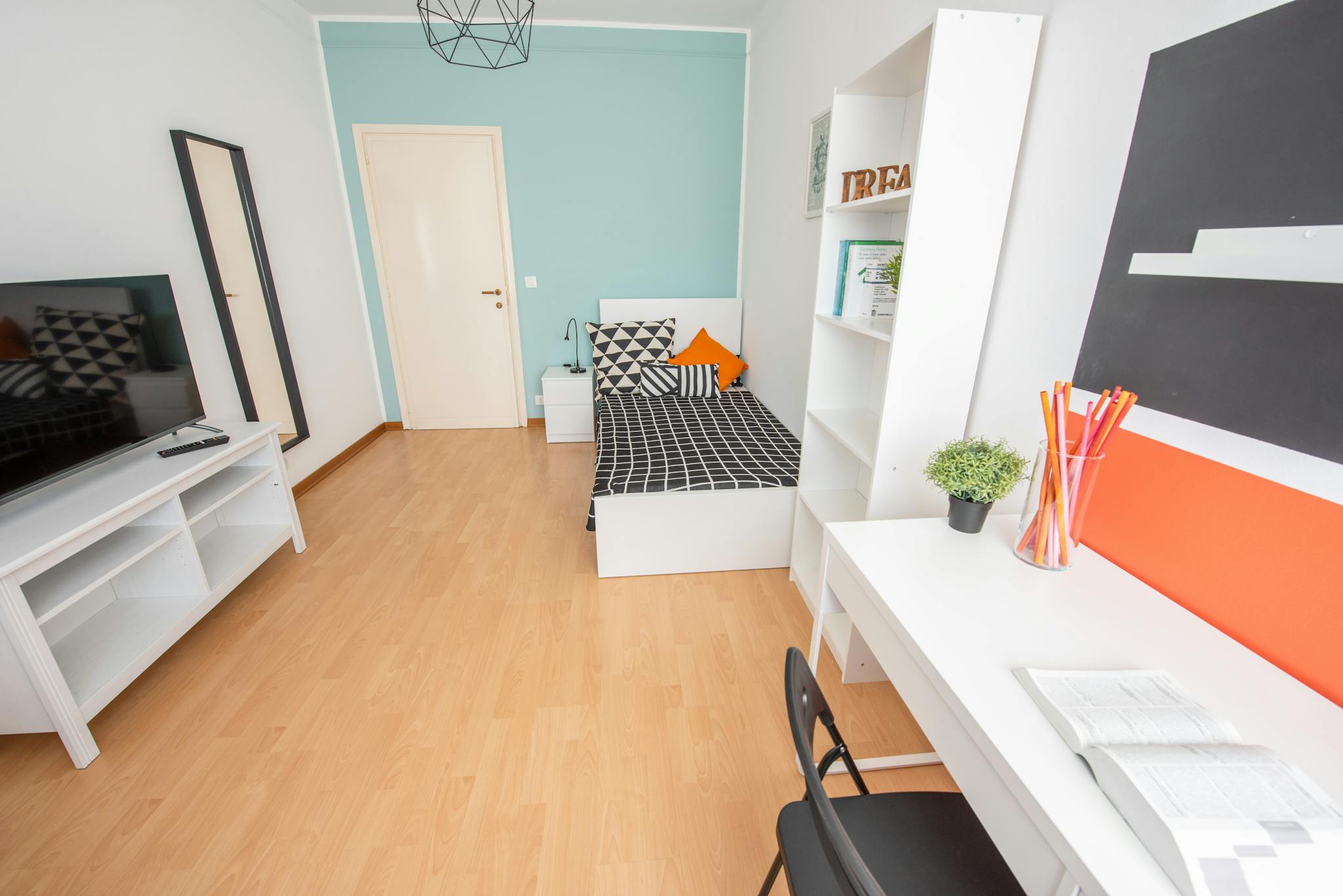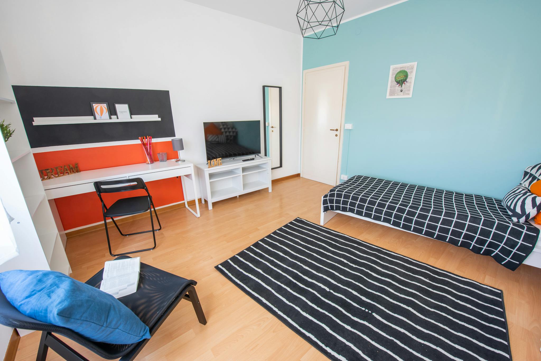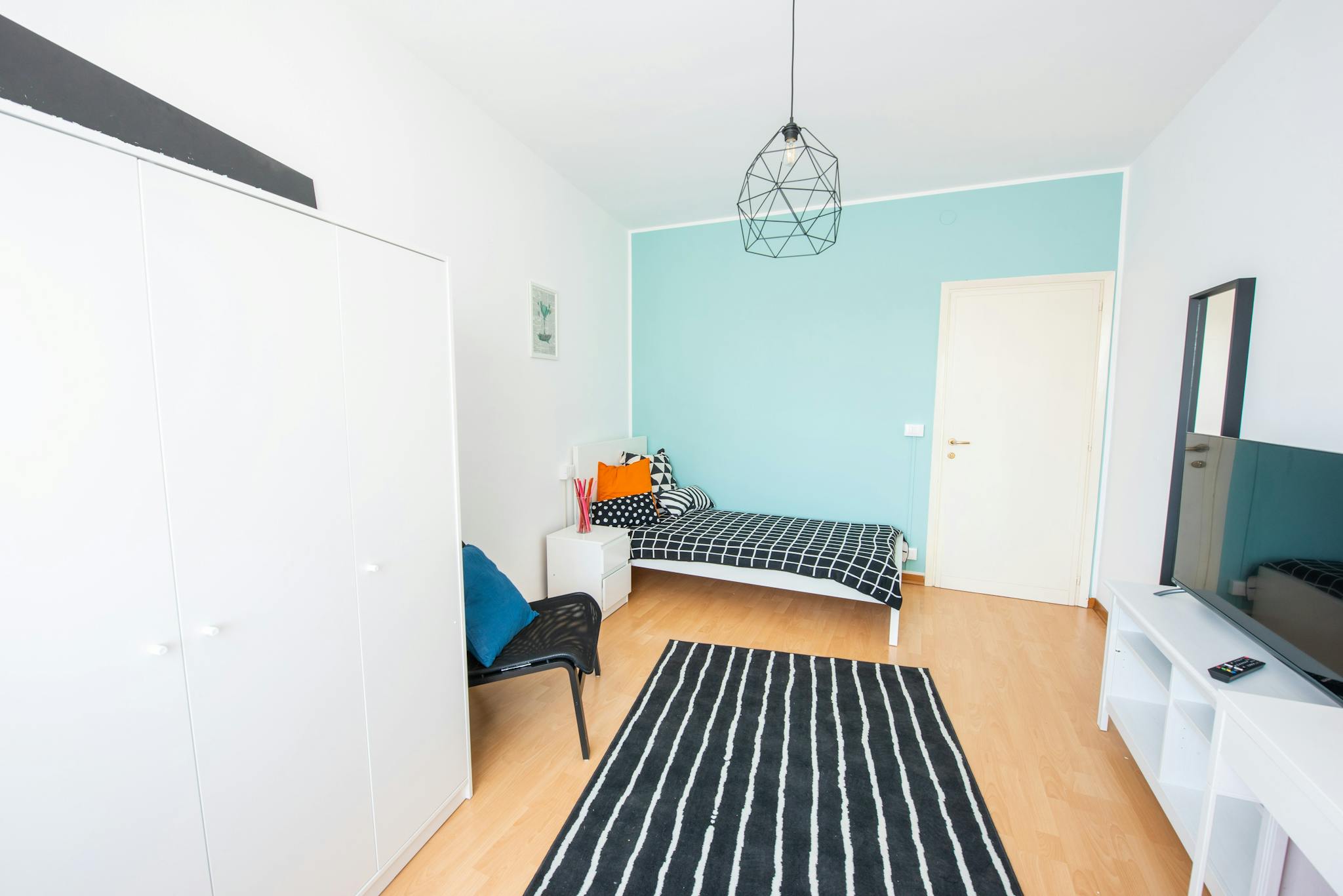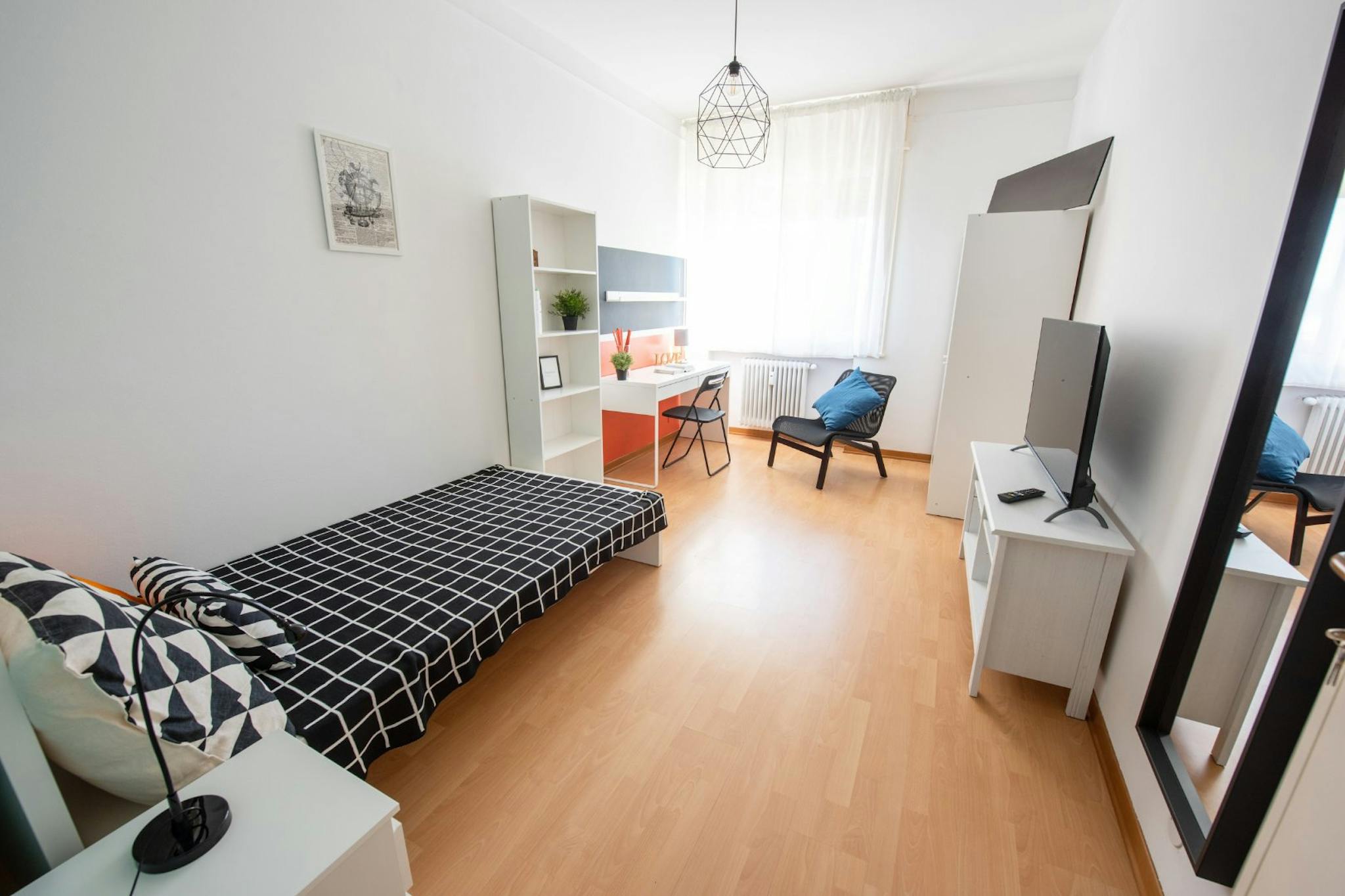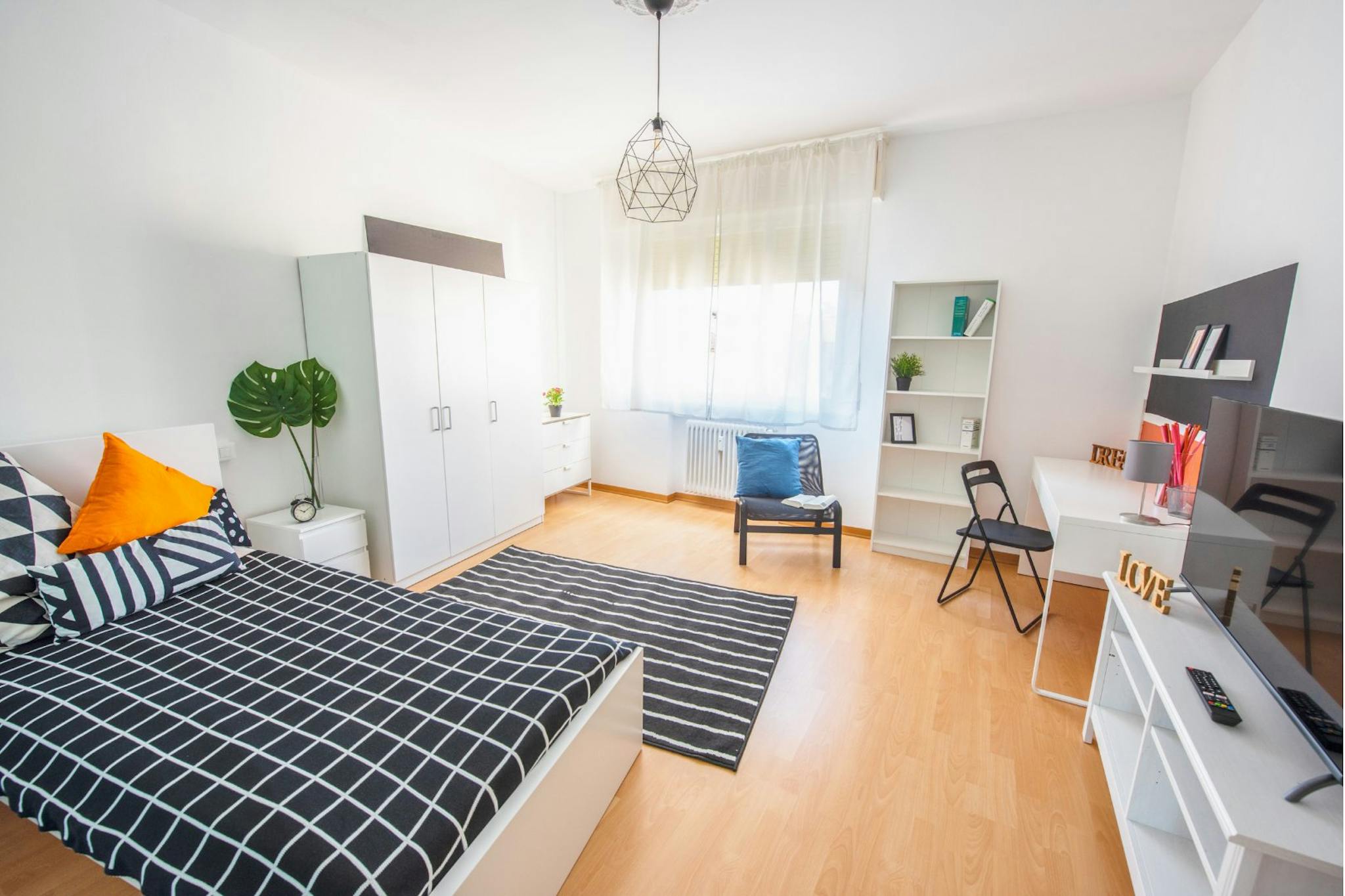 Apartment Description Apartment Milan with 2 bedrooms. Just totally renovated, modern brand-new furniture. From the hall, on the right you have a large bedroom with a single bed and a French bed (cm 140 wide). A desk and a wardrobe. Wooden floor....