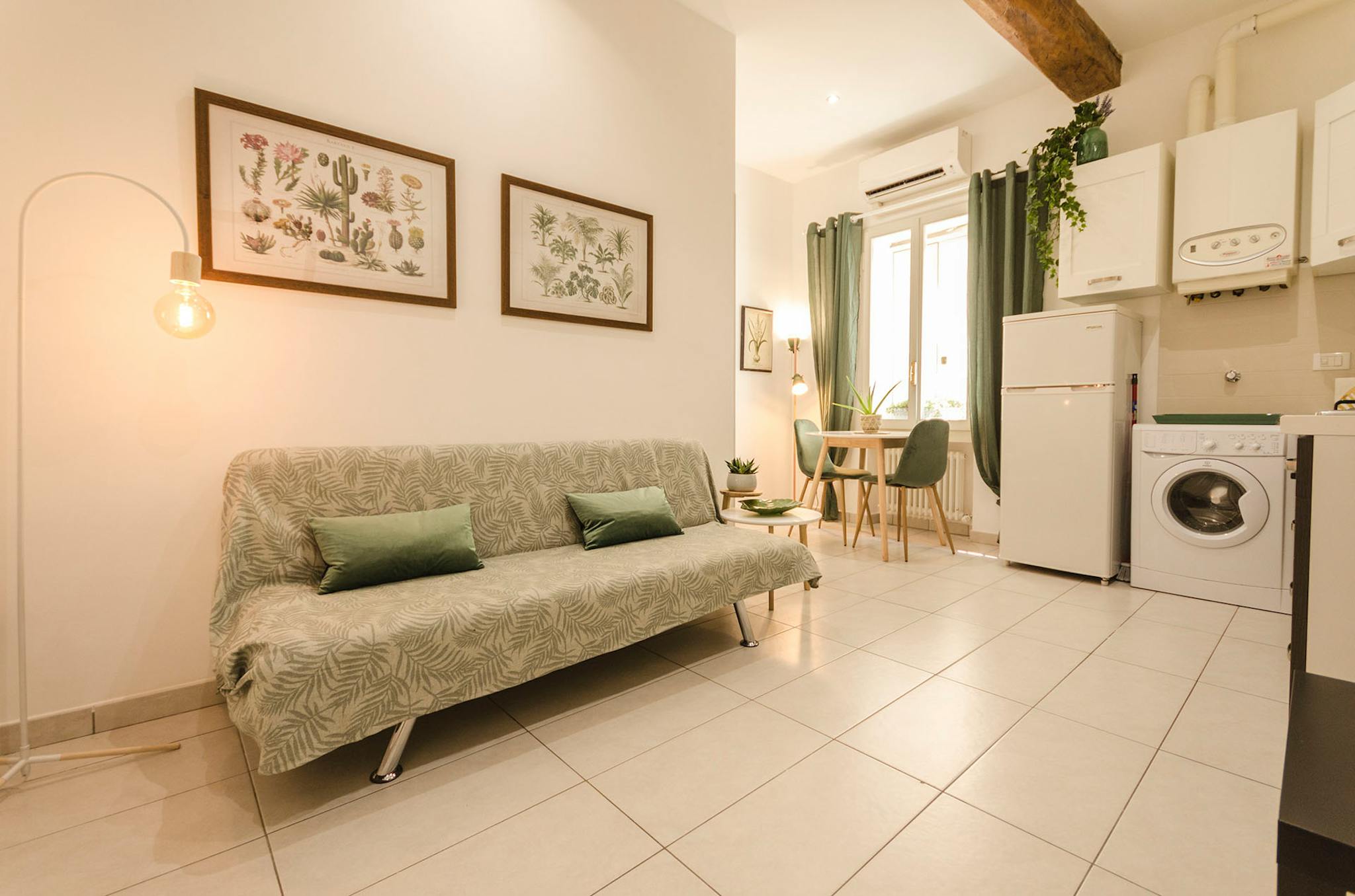 Nice newly renovated apartment located in the historic center at a strategic distance from Bologna Central Station. Equipped with an equipped kitchen, 1 bedroom with 2 single beds (perfectly joinable on request) and a double sofa bed in the lounge...