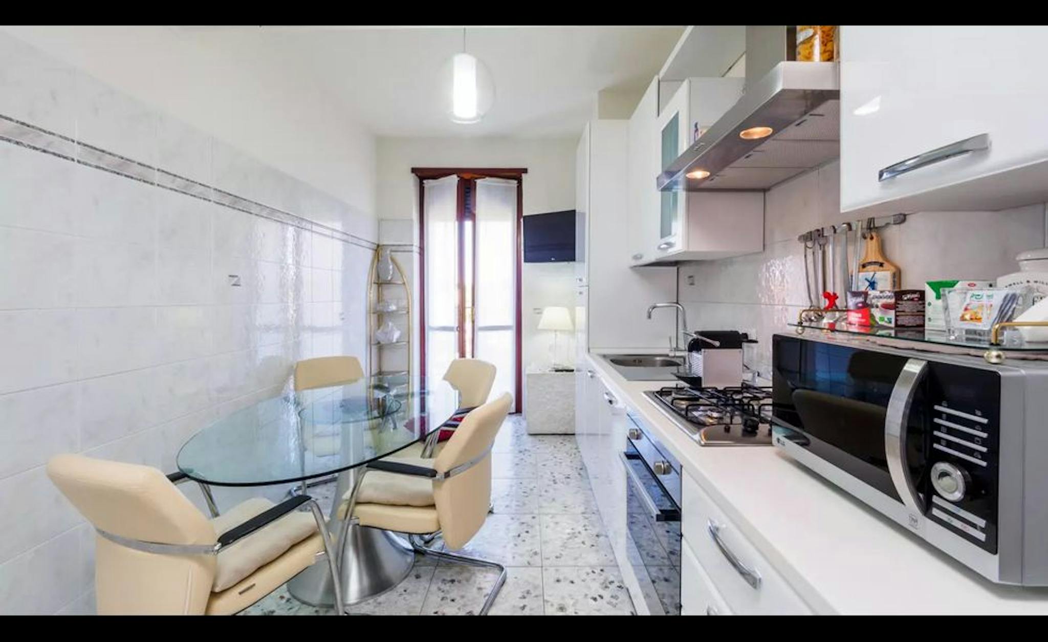 Panoramica Rooms are available to rent in this very spacious, modern 5-bedroom apartment on Via Le Longanesi in the Lodi neighborhood. The apartment is immaculately decorated, with a mixture of the modern and the traditional, with its neutral col...