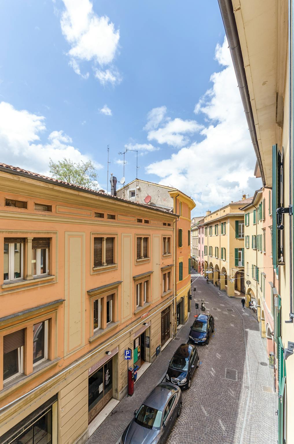 Nice apartment located in one of the most characteristic streets of the historic center of Bologna, within easy reach of the main city attractions. Equipped with entrance to a large living area with TV, double sofa bed, double bedroom, dining room...